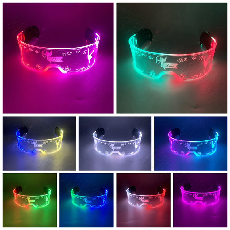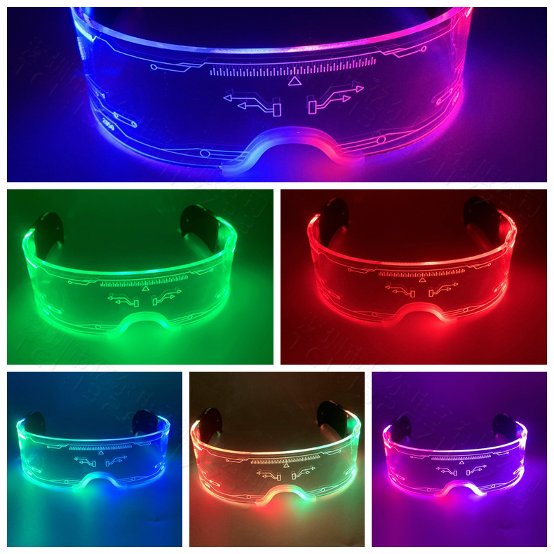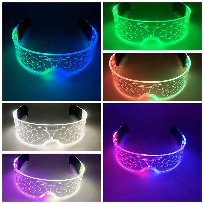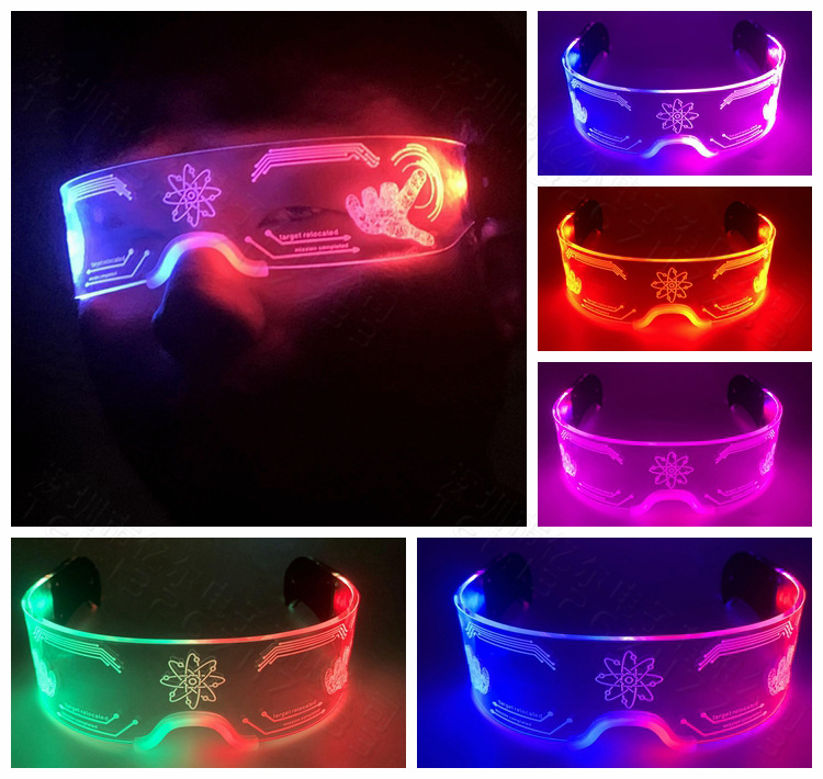 Gafas luminosas cyberpunk estilo futuro siete colores deslumbrante ciencia ficción moda tecnología LED máscara de ojos atmósfera de fiesta Nuevo