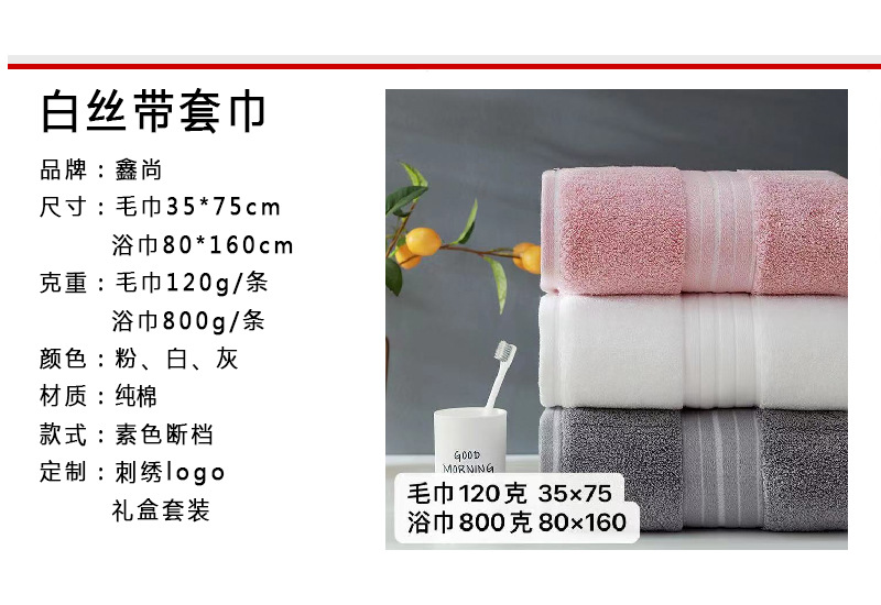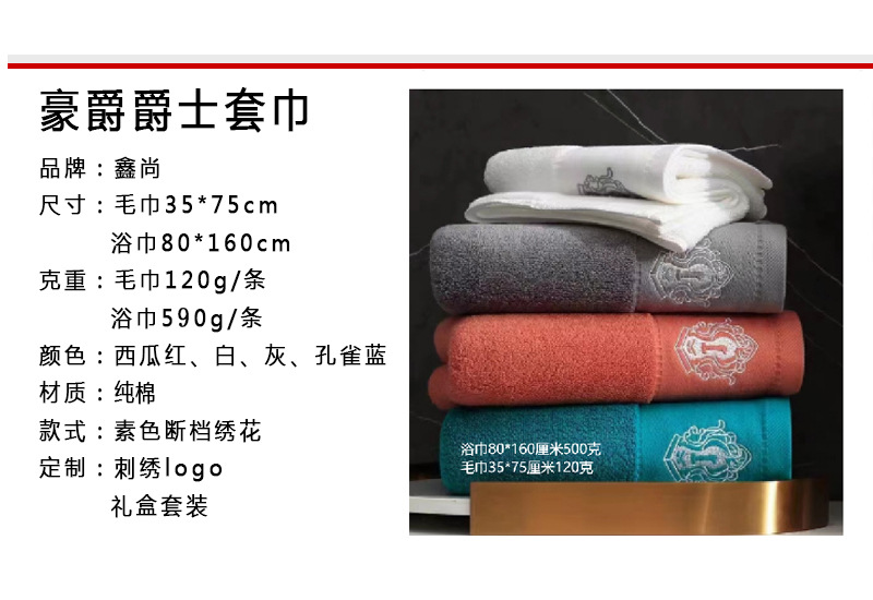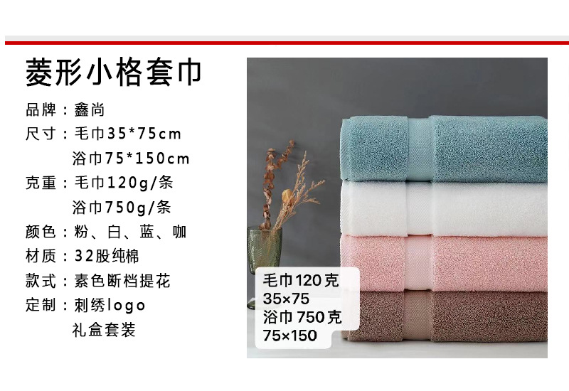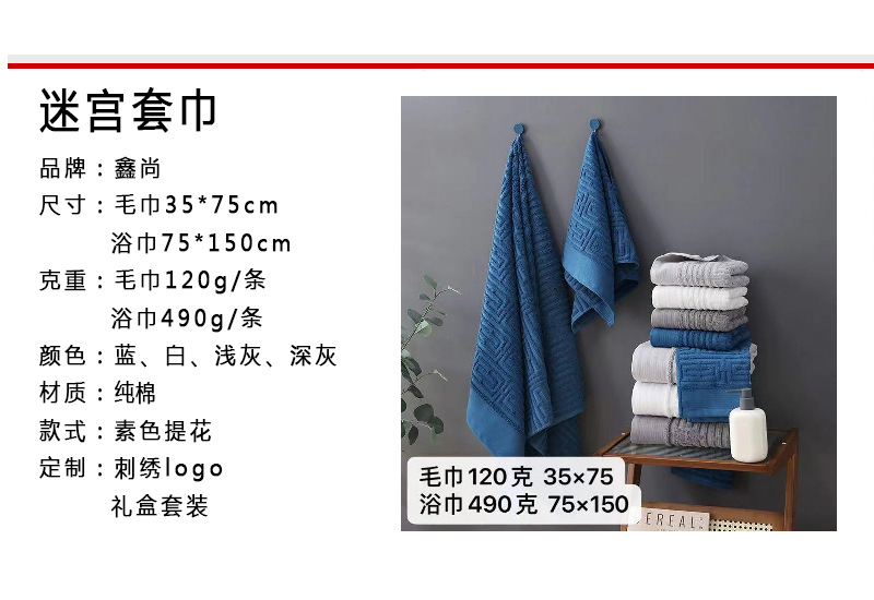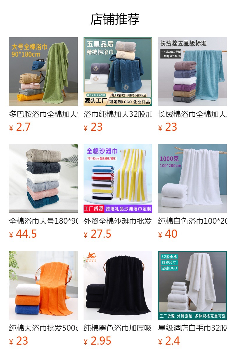 | Colores | Toalla de baño de tres flechas 95*180cm 900g,Toalla de baño Sir Haojue 80*160cm 590g,Toallas de baño de cinta blanca 80*160cm 800g,Toalla de baño laberinto 75*150cm 490g,Toalla de baño de rejilla pequeña en forma de diamante 75*150cm 750g |
