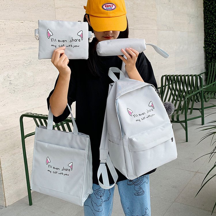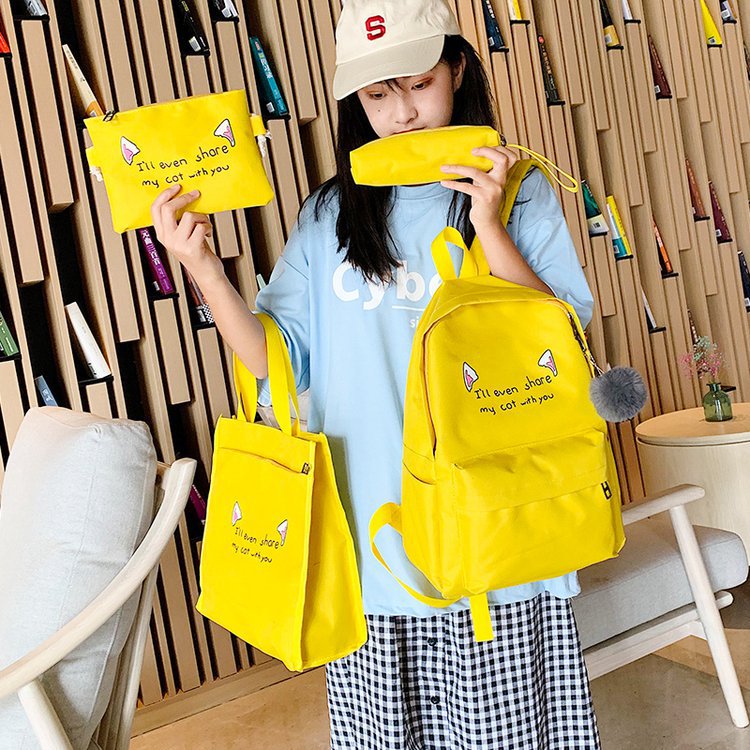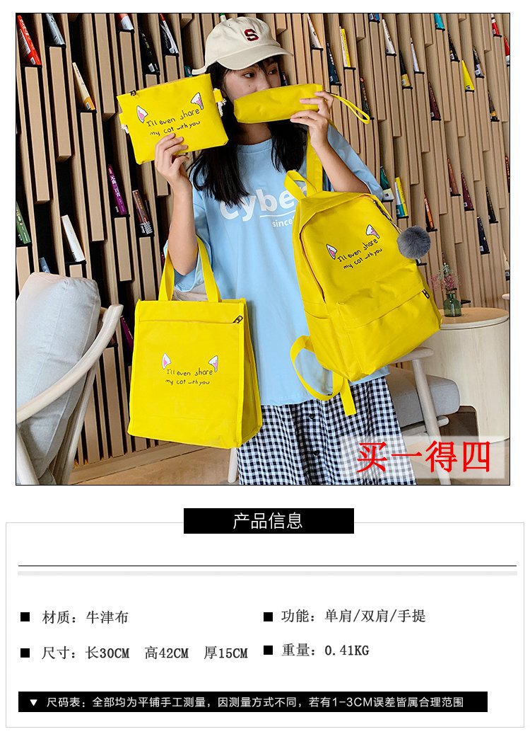 2020 nuevo contraste de color de cuatro piezas de gran capacidad mochila de moda estudiante bolso de mujer bolso de la computadora