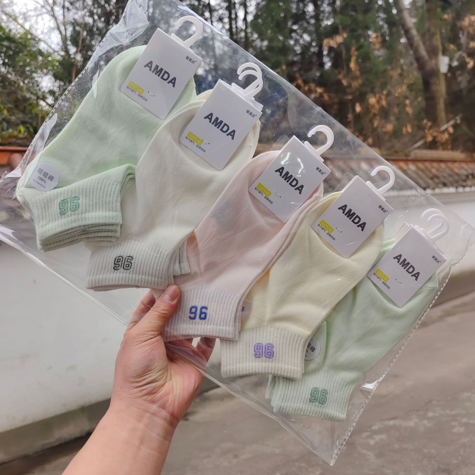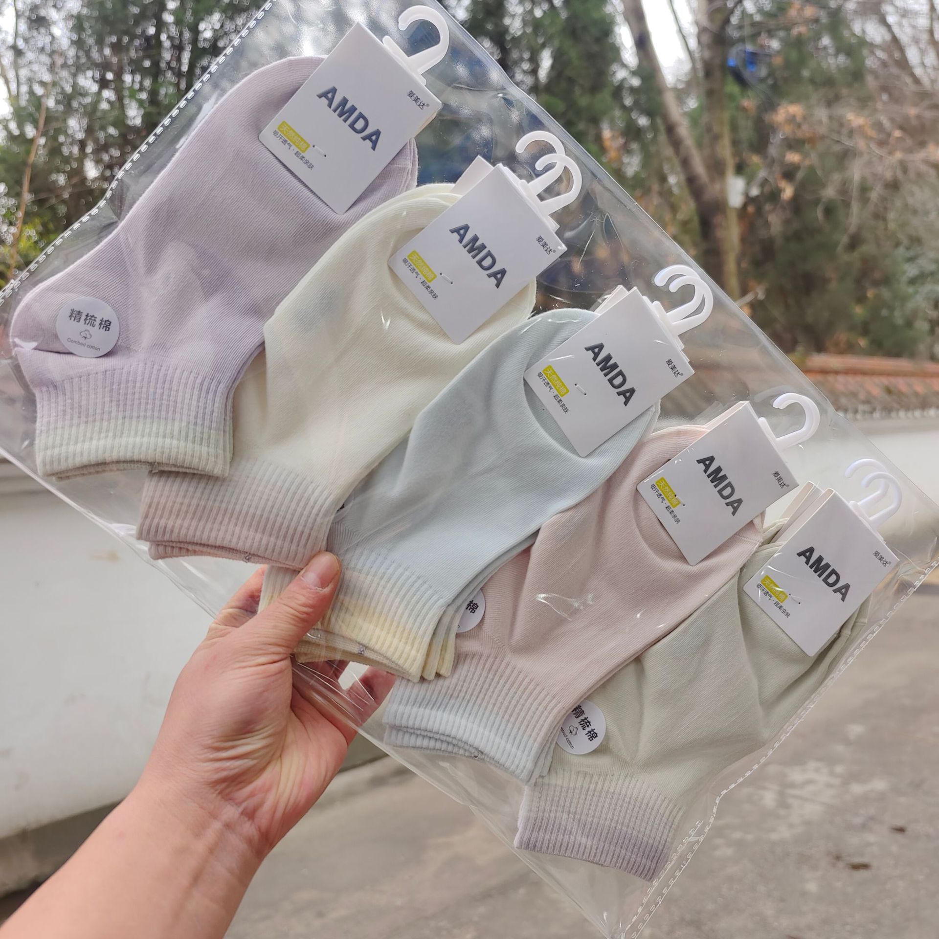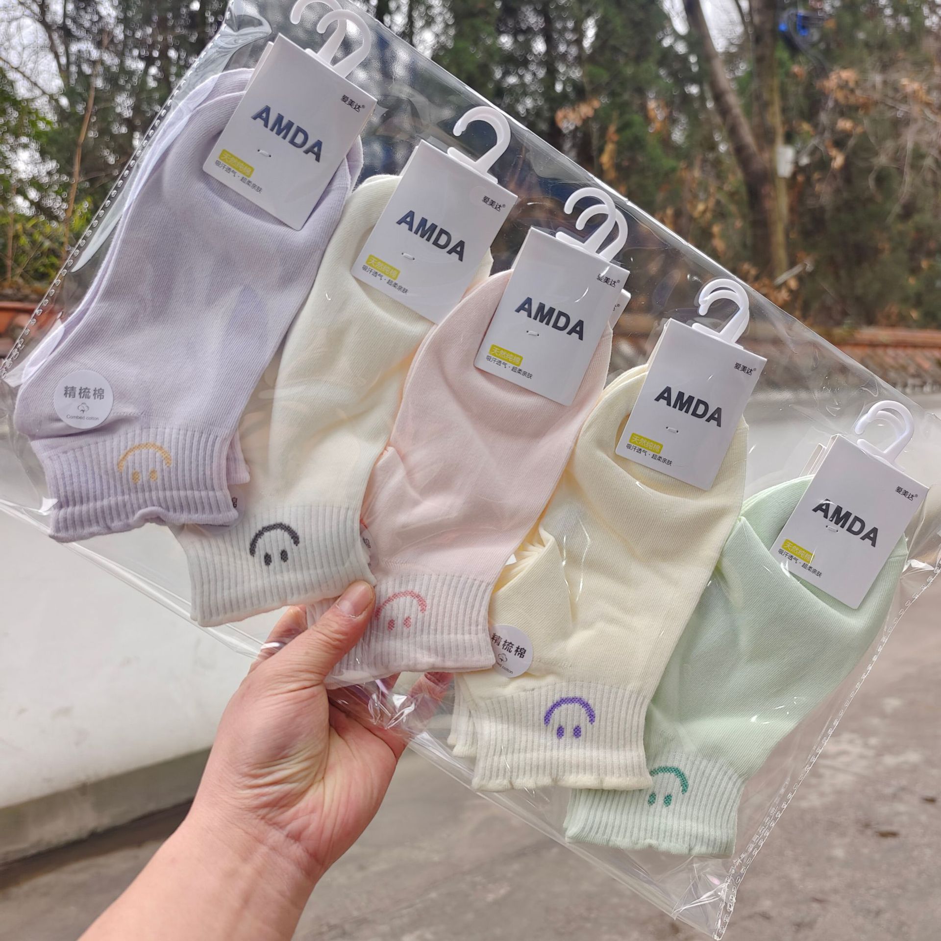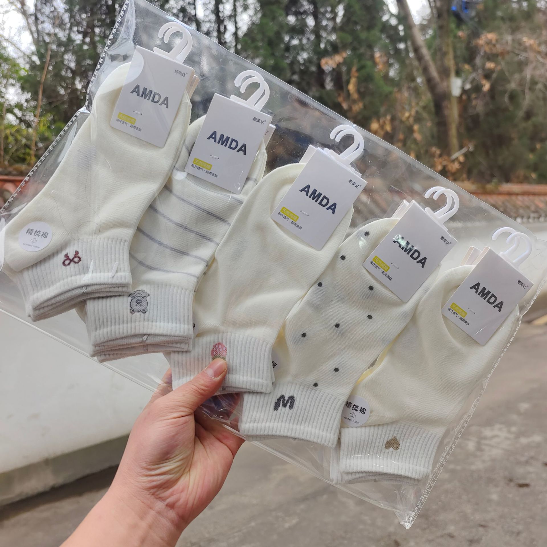 Aimida primavera y verano de las mujeres de algodón fino corto deportes barco Calcetines de moda fresco cómodo sudor-absorbente transpirable rayas finas