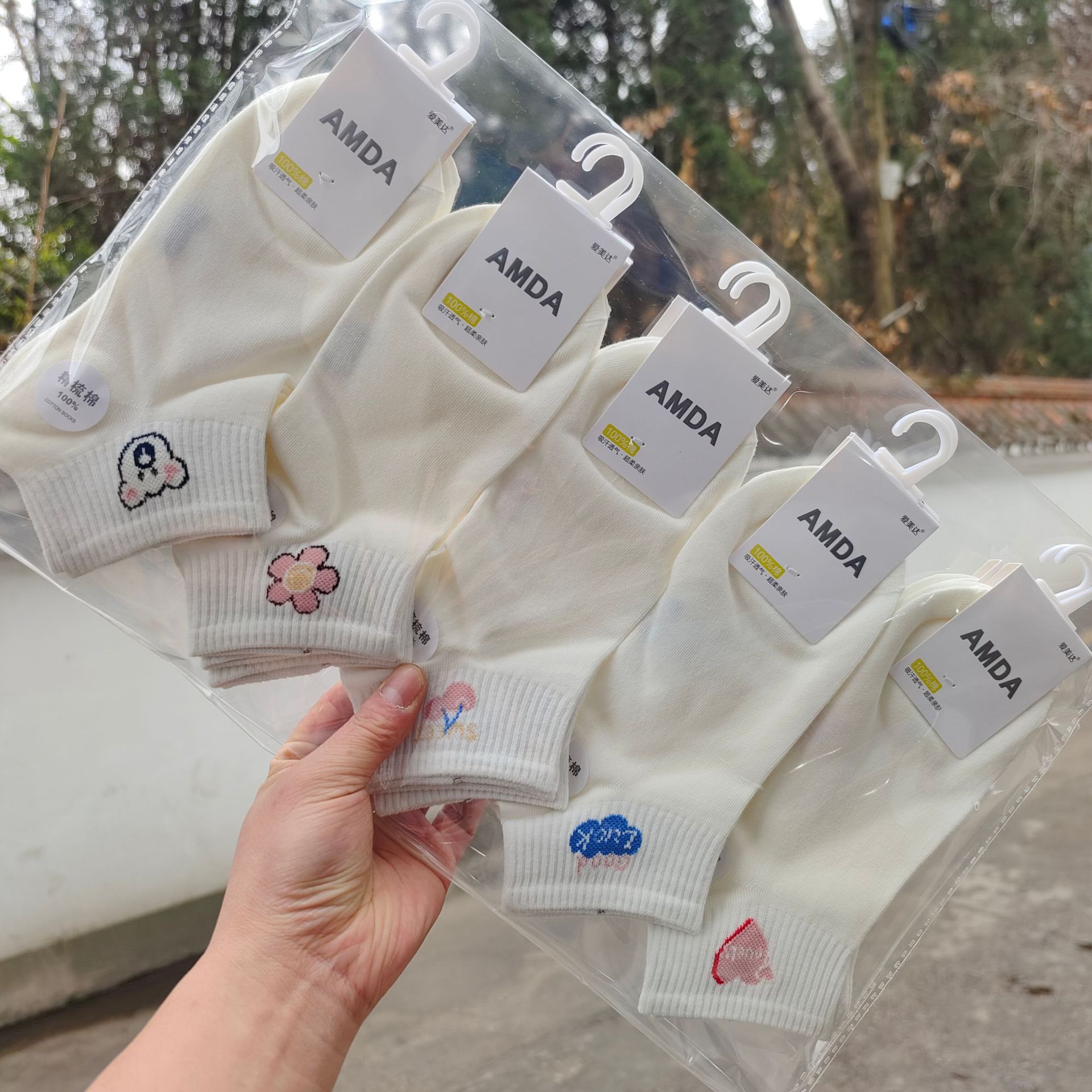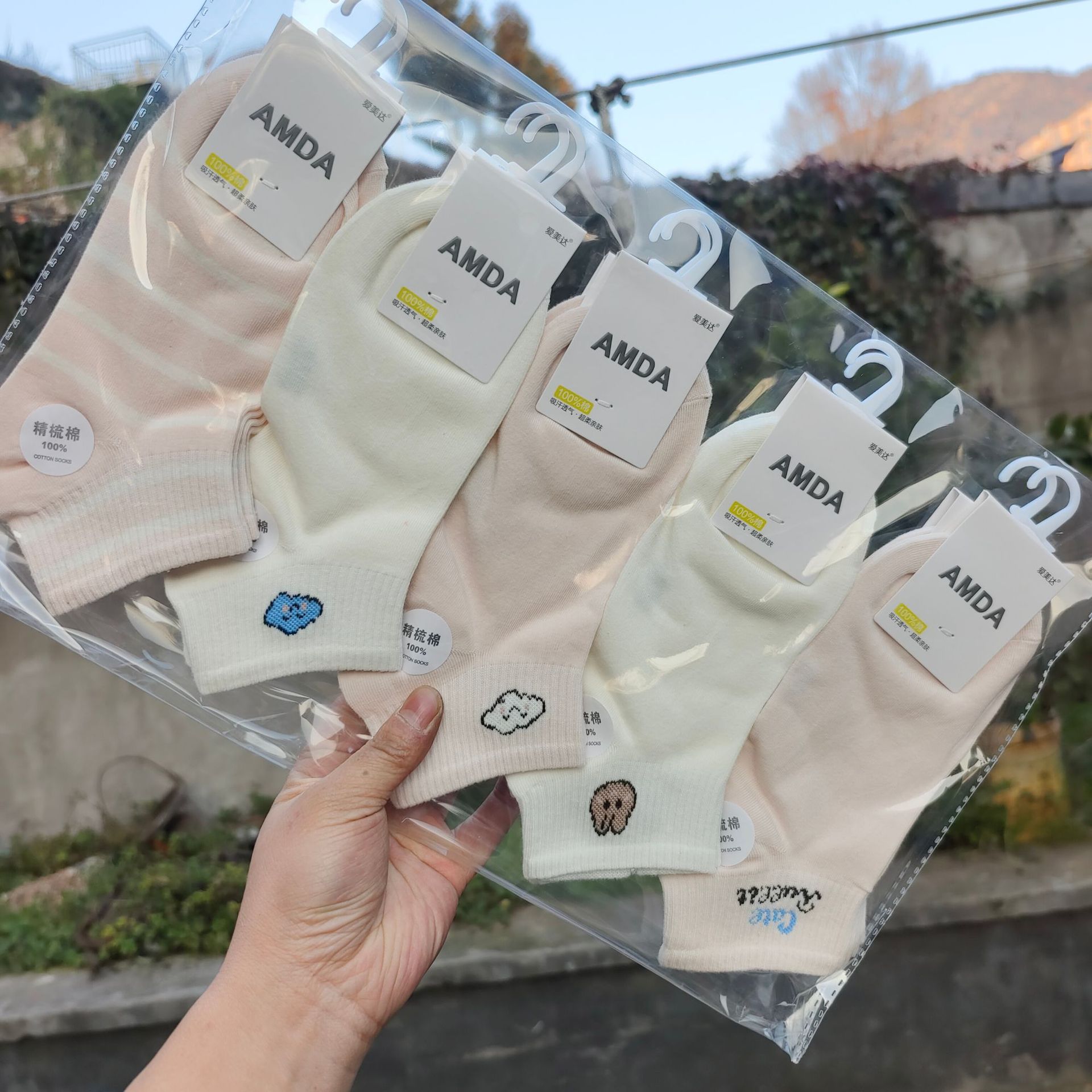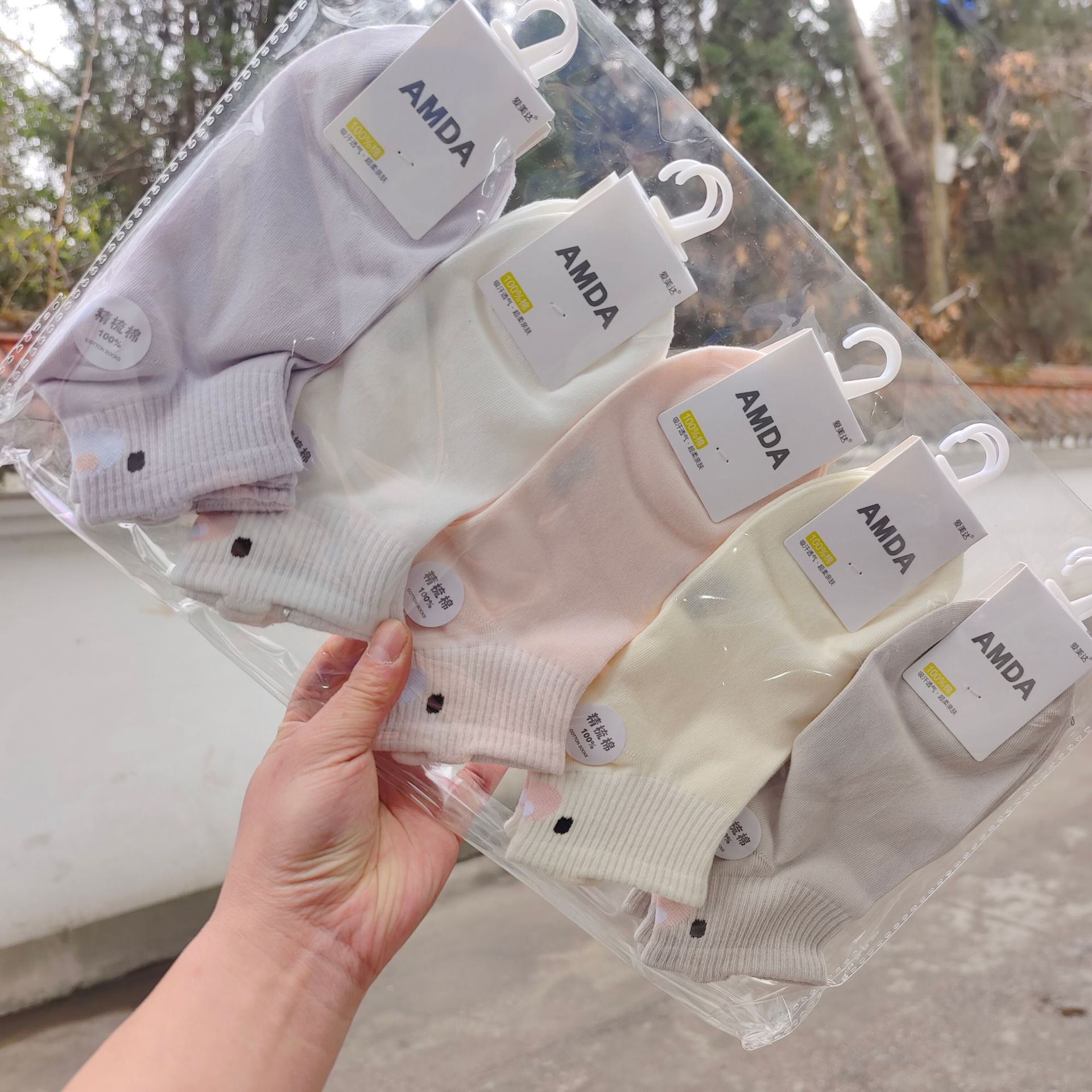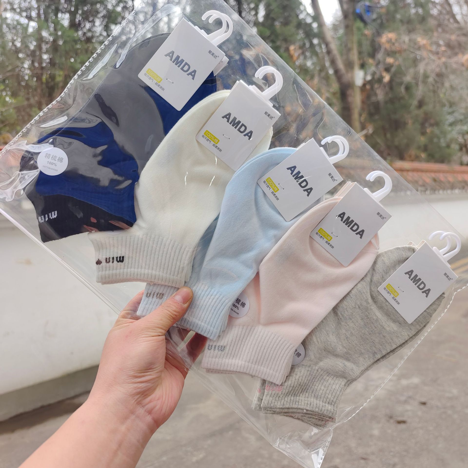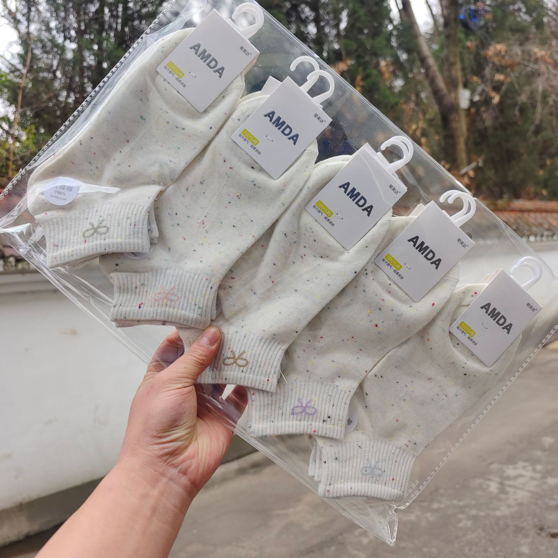 Aimida primavera y verano de las mujeres de algodón fino corto deportes barco Calcetines de moda fresco cómodo sudor-absorbente transpirable rayas finas