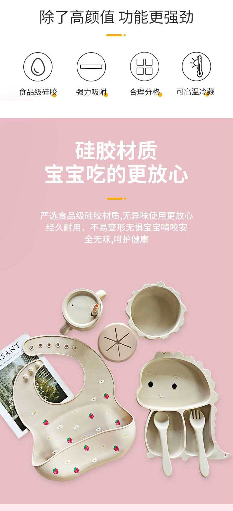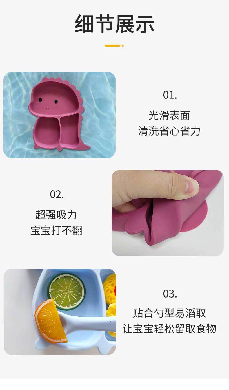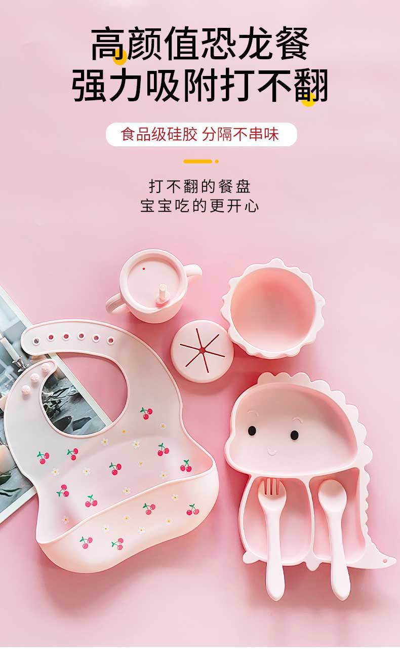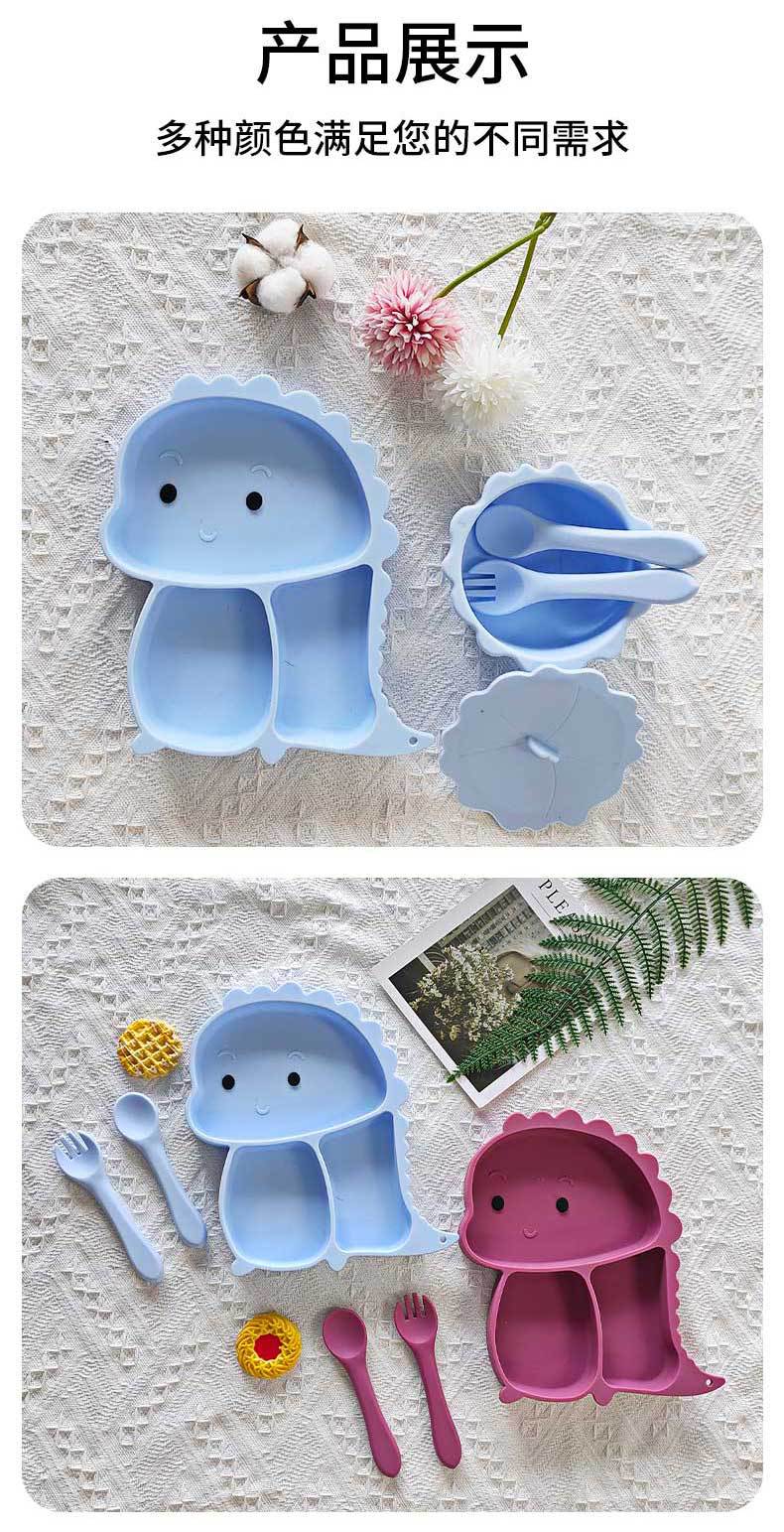 Wintai integrado bebé Placa de silicona traje de suplemento alimenticio para niños tazón cuchara bebé rejilla placa resistente a la caída lechón vajilla
