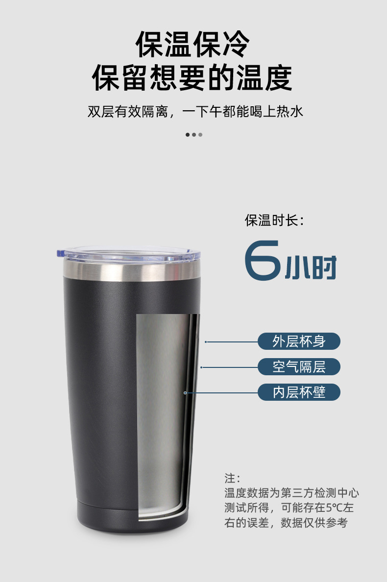 Amazon 20oz coche taza de coche de gran capacidad helado taza de vacío de doble capa de acero inoxidable cerveza paja taza de vacío