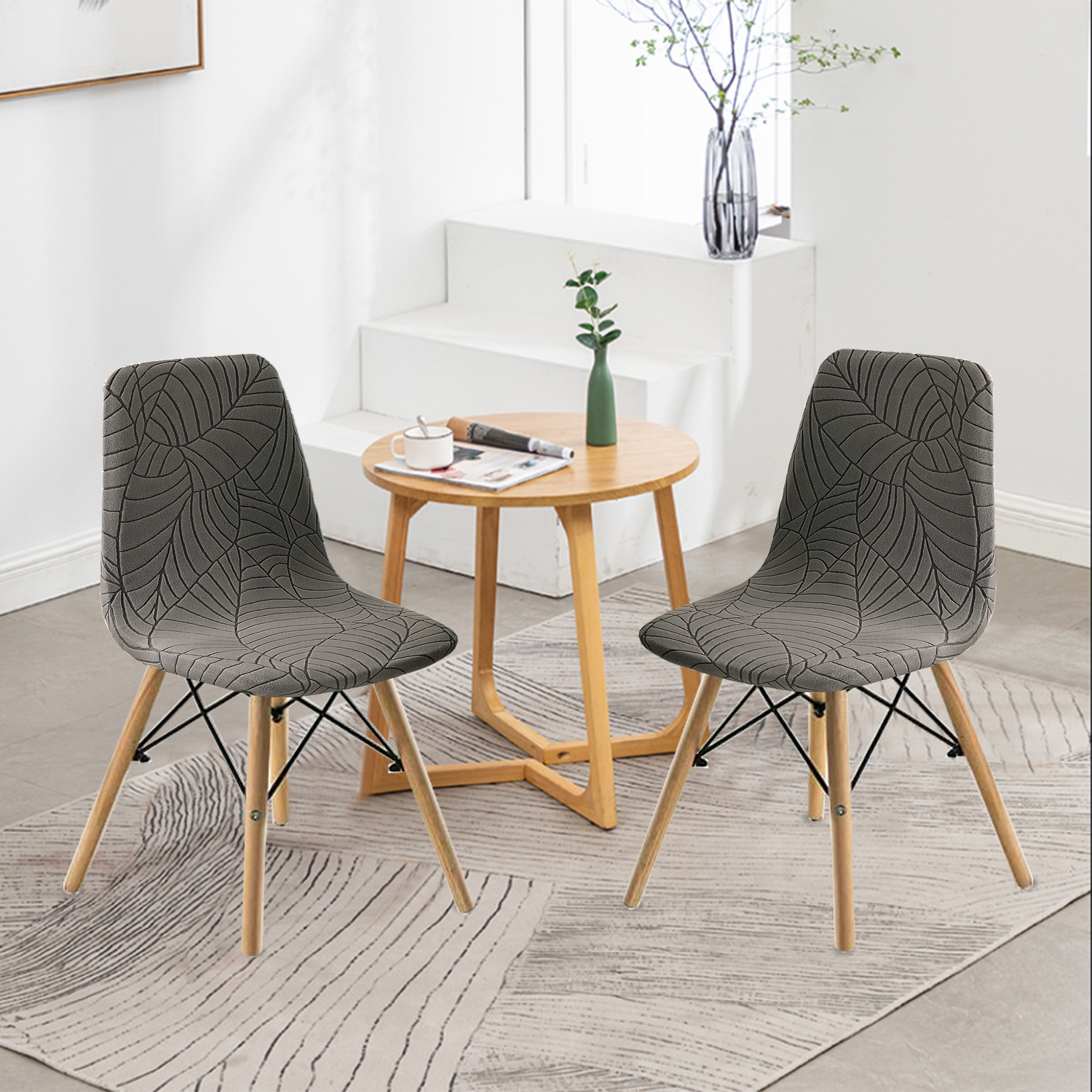 Amazon transfronterizo hoja jacquard Eames silla elástica cubierta nórdica moderna minimalista mesa de comedor silla cubierta