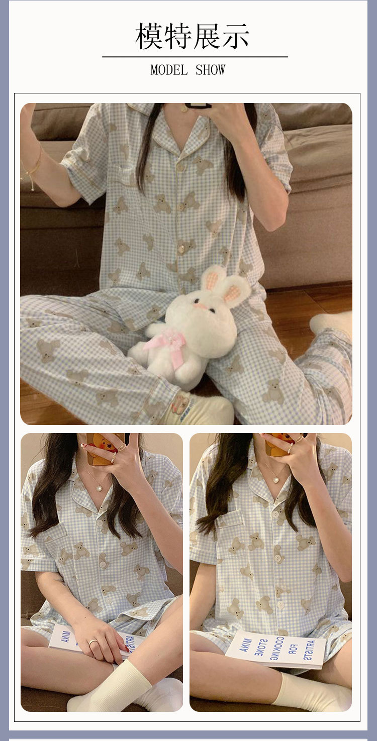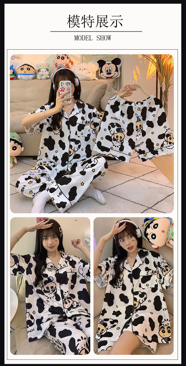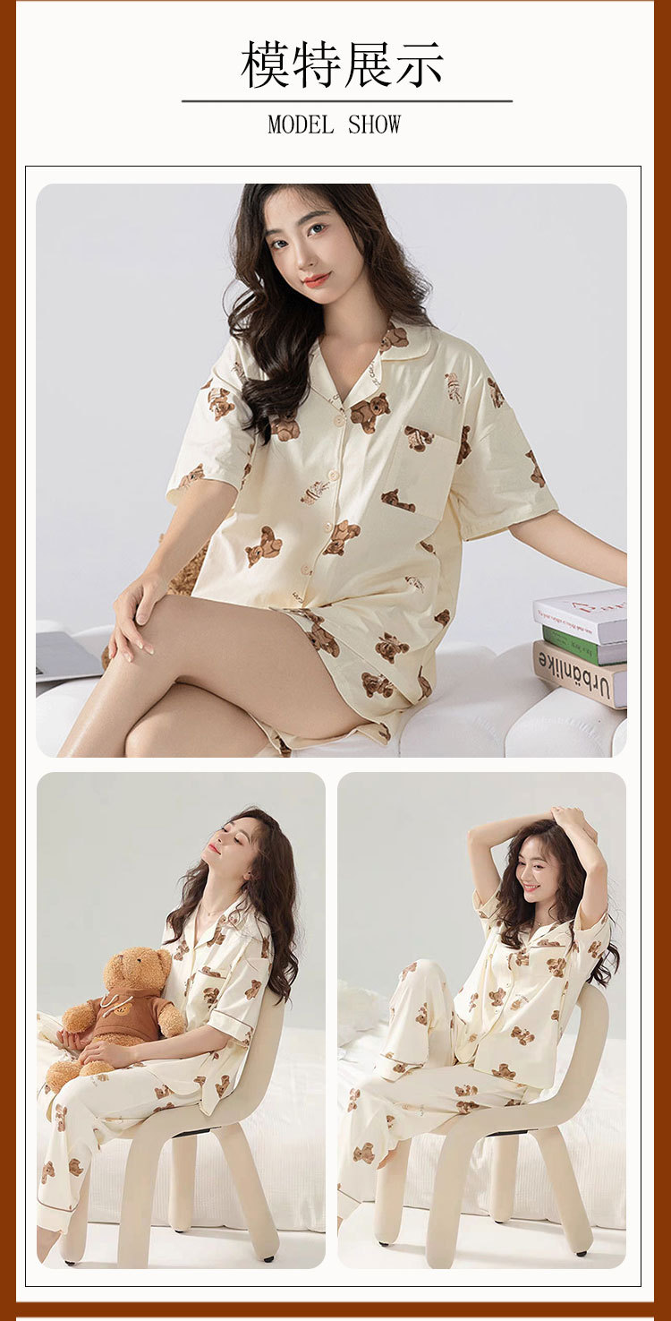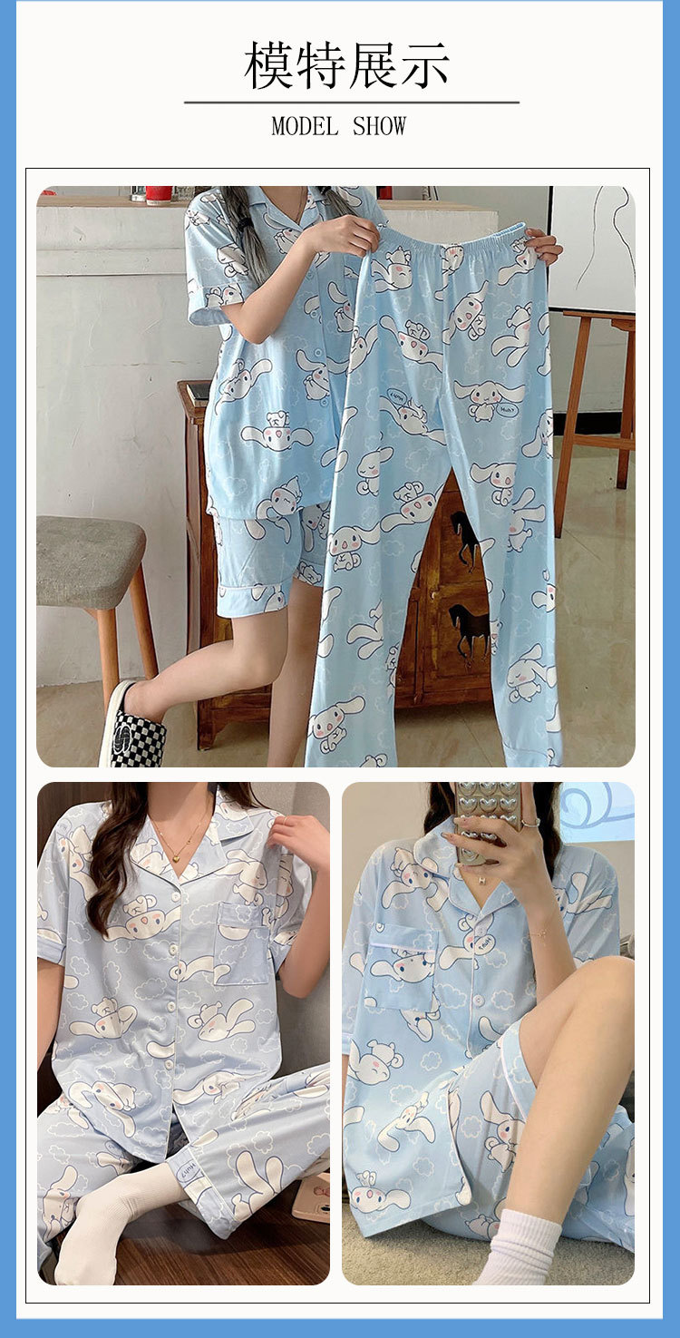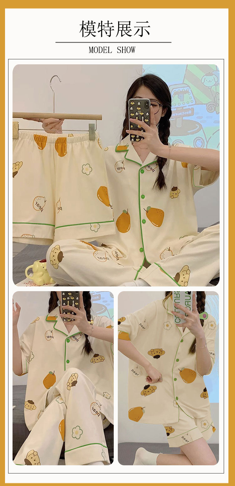 Pijamas de verano japonés, pantalones de manga corta para mujer, algodón de dibujos animados, nuevo traje de tres piezas de servicio a domicilio informal de verano 2025