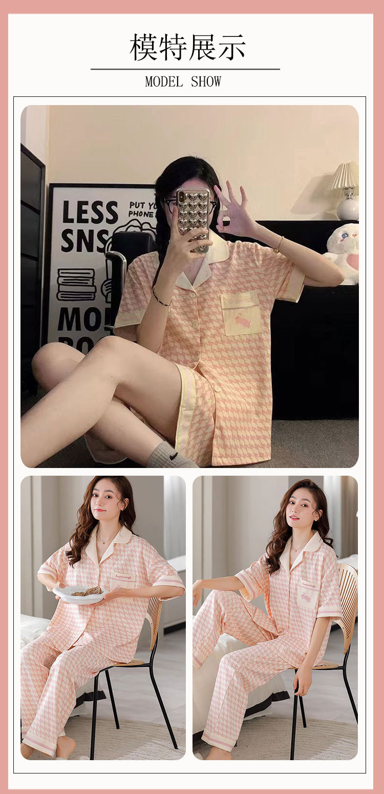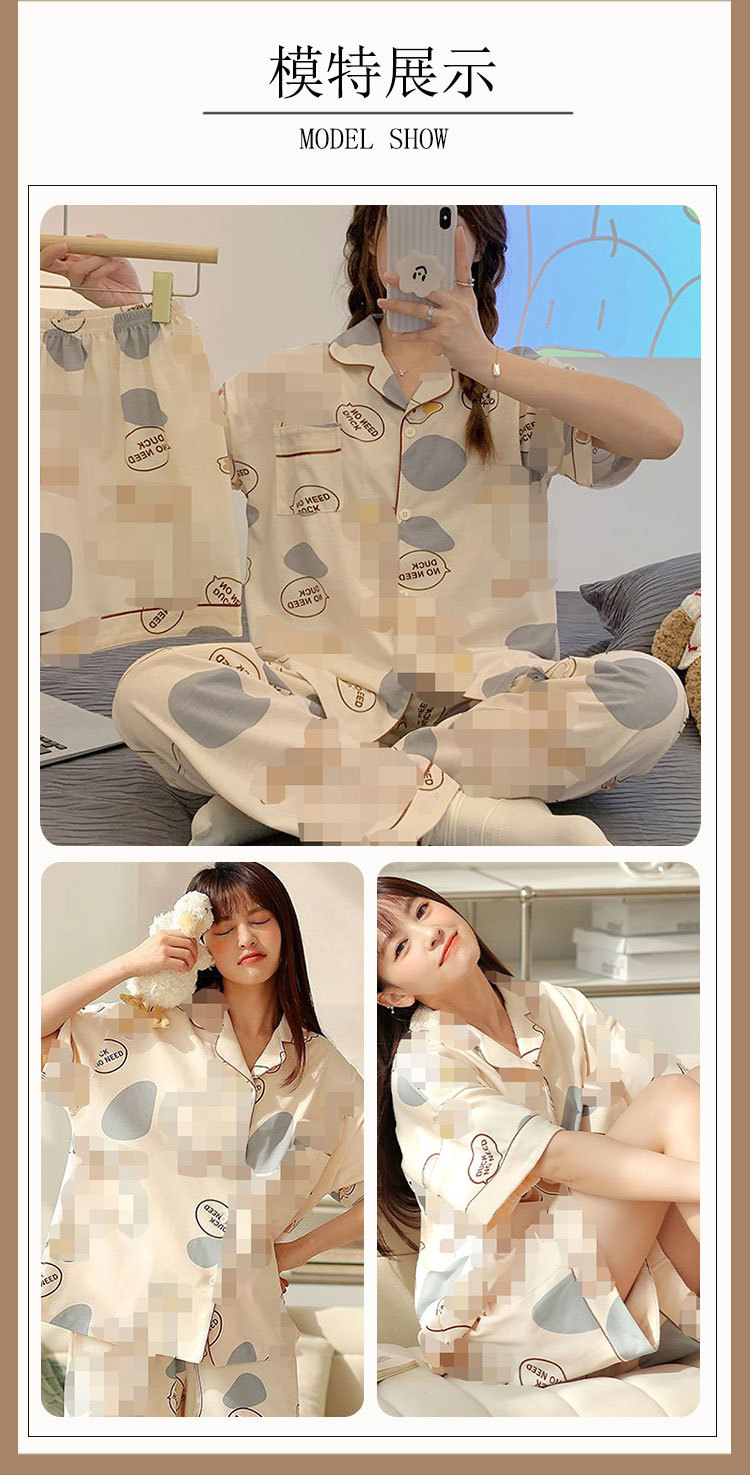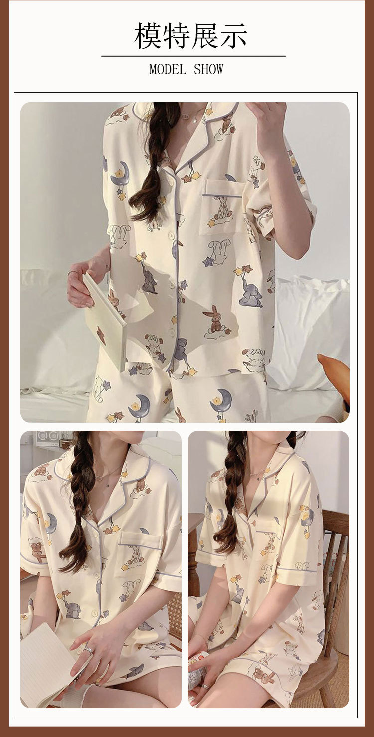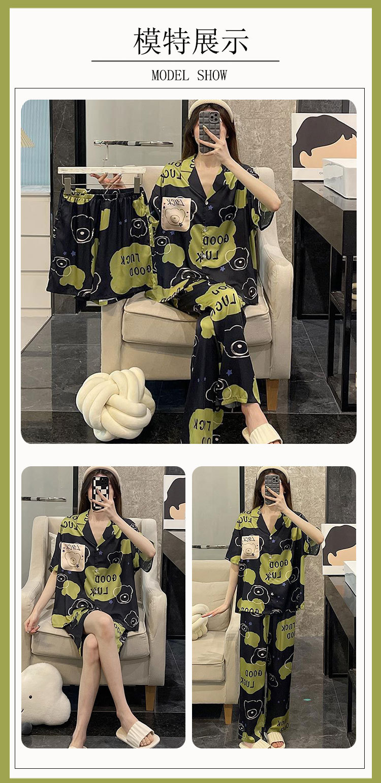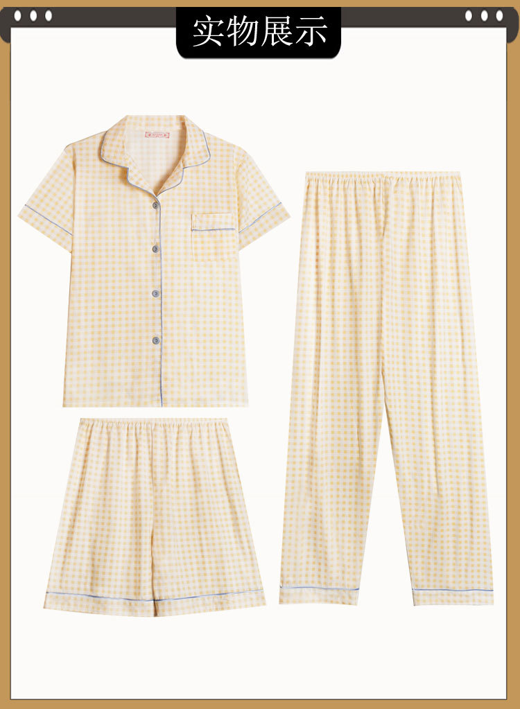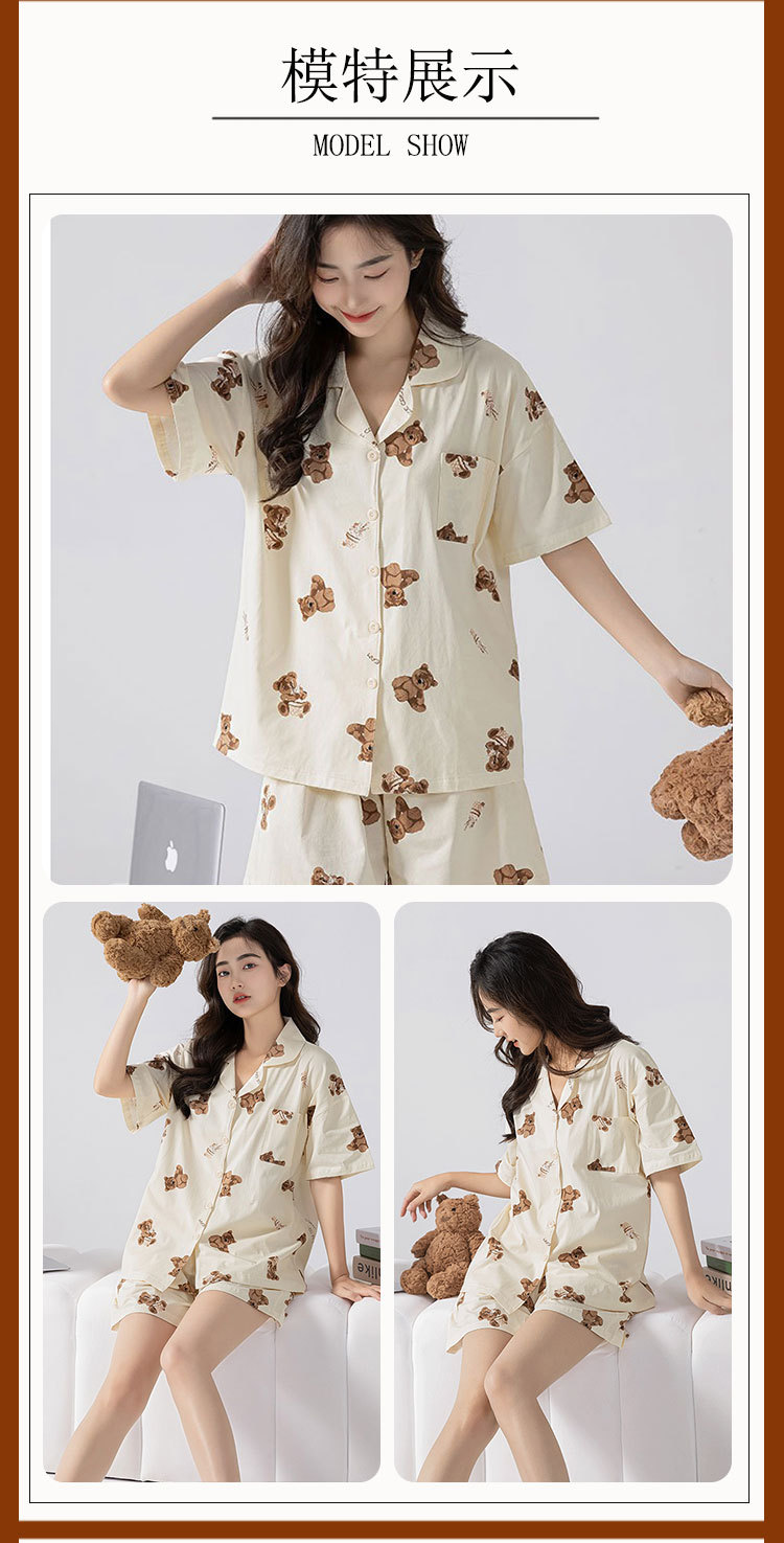 Pijamas de verano japonés, pantalones de manga corta para mujer, algodón de dibujos animados, nuevo traje de tres piezas de servicio a domicilio informal de verano 2025