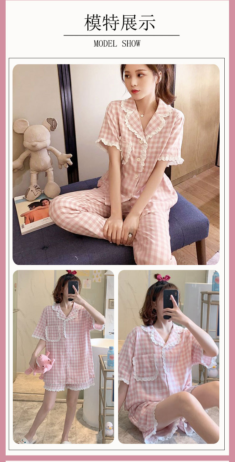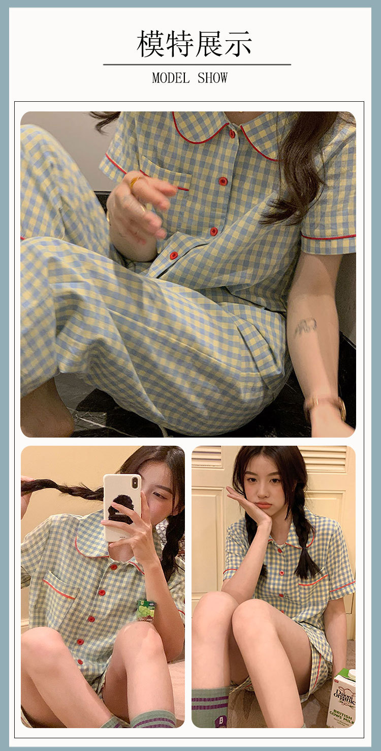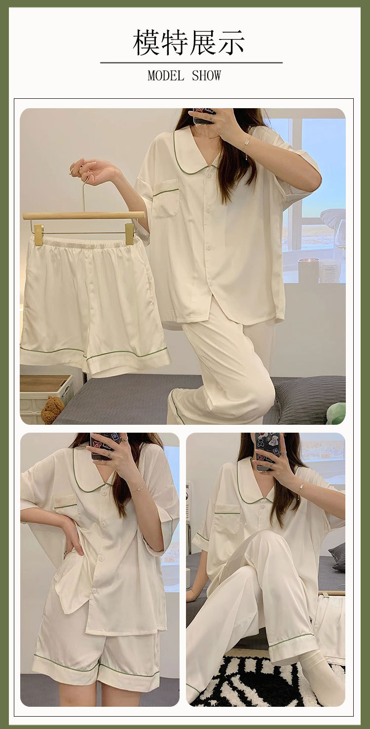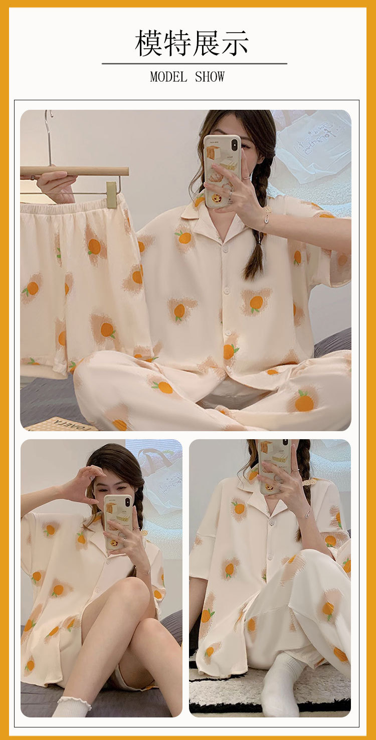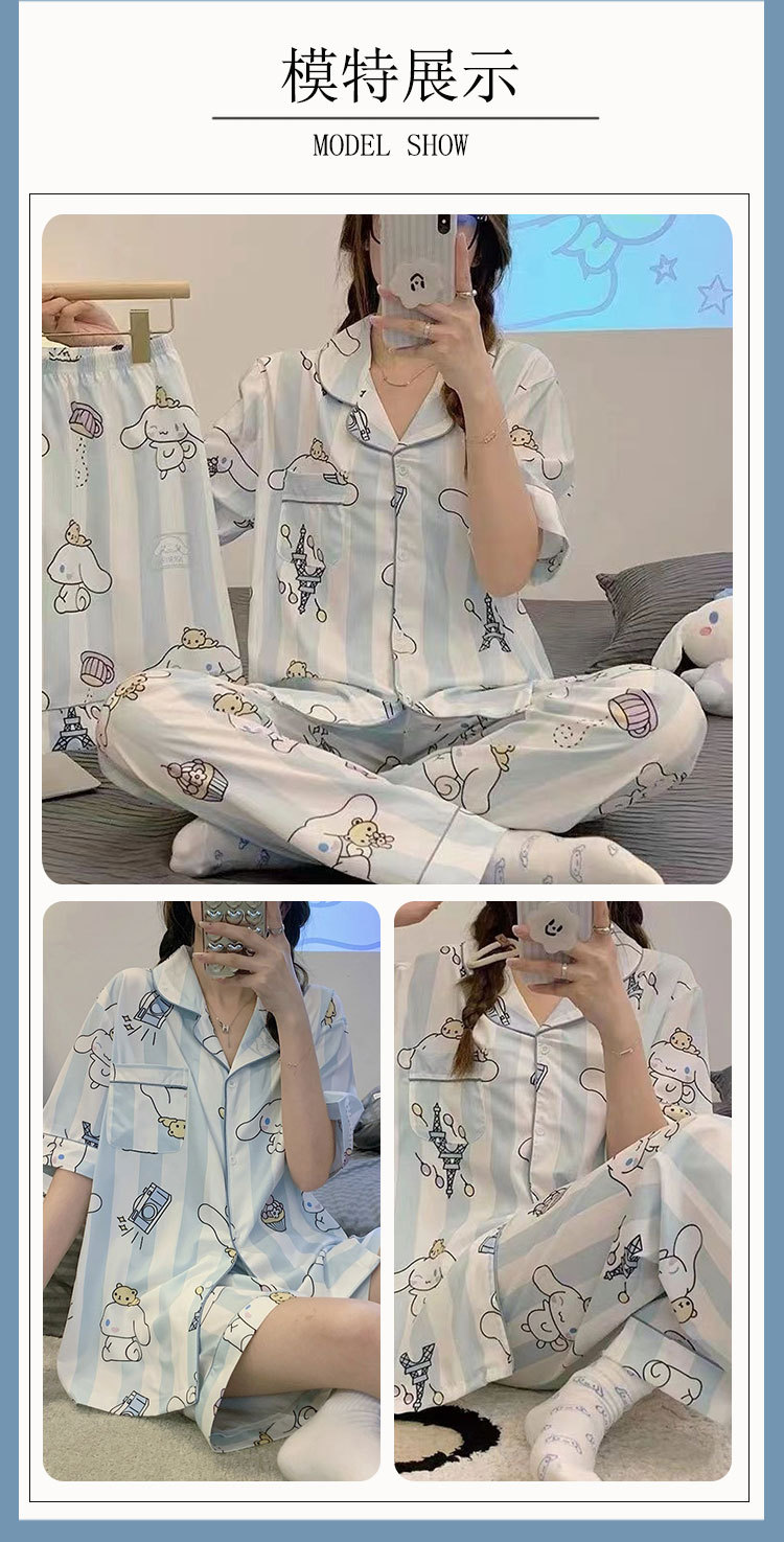 Pijamas de verano japonés, pantalones de manga corta para mujer, algodón de dibujos animados, nuevo traje de tres piezas de servicio a domicilio informal de verano 2025
