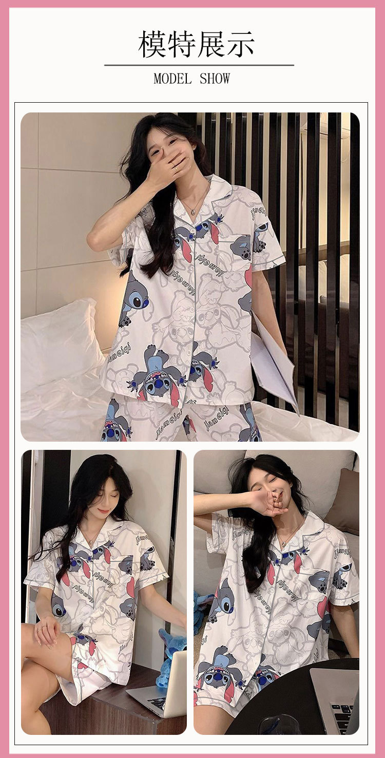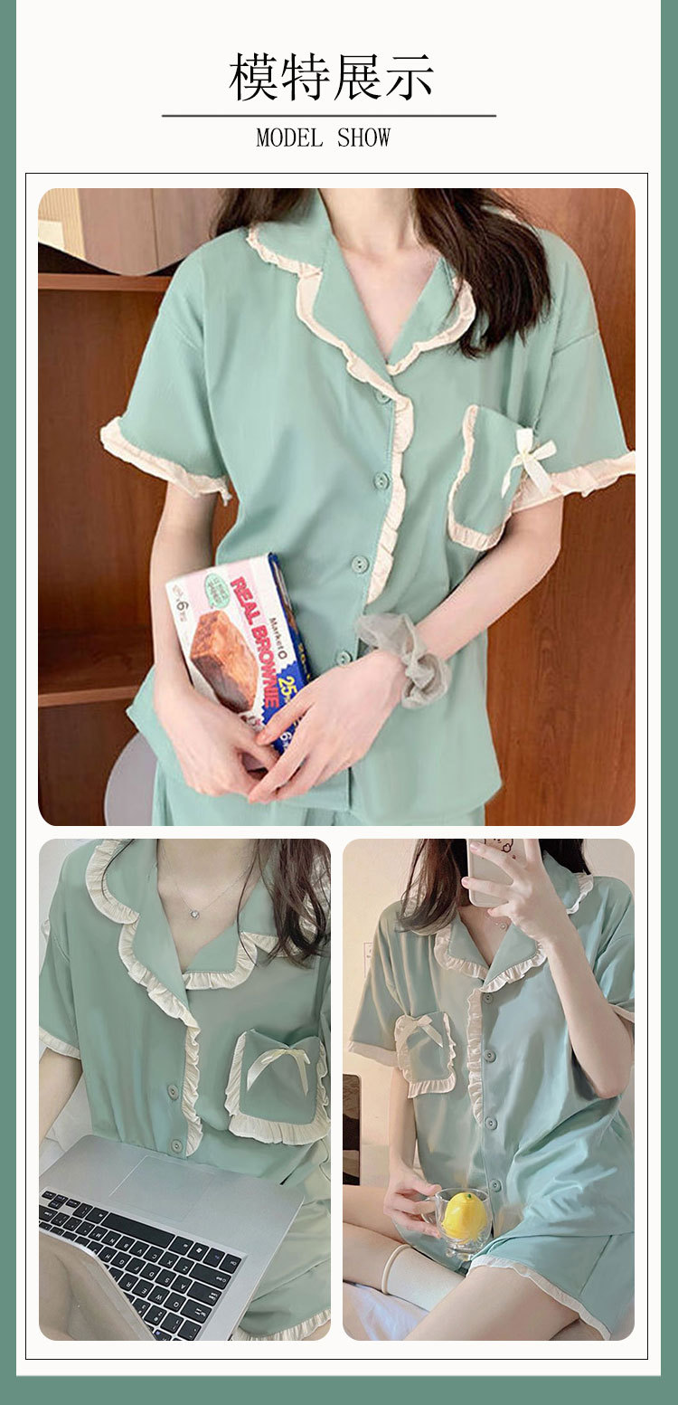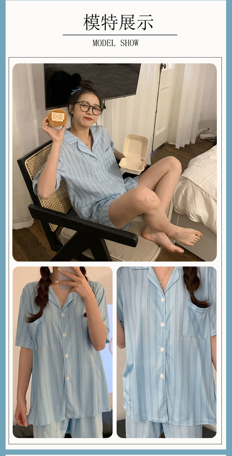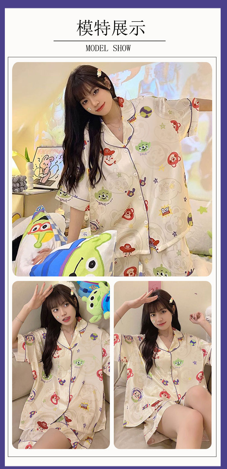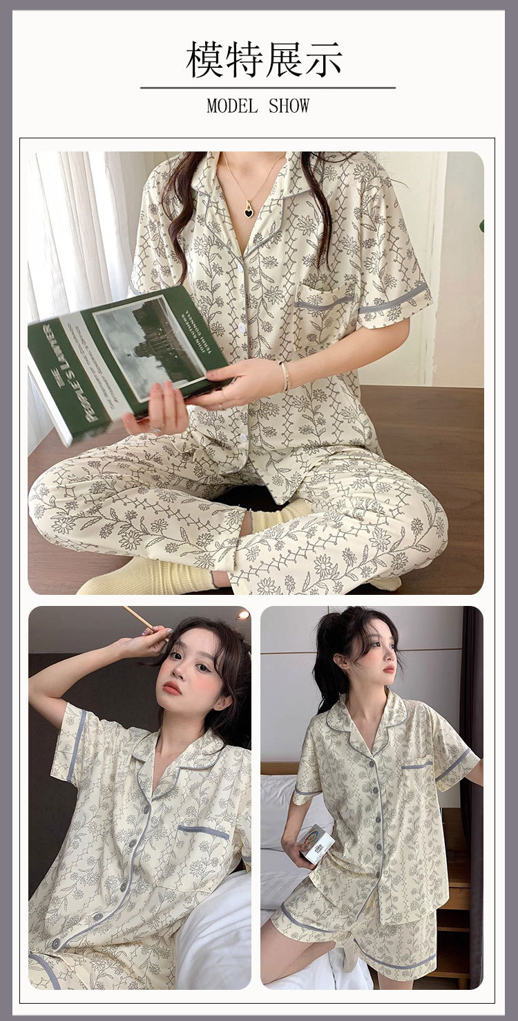 Pijamas de verano japonés, pantalones de manga corta para mujer, algodón de dibujos animados, nuevo traje de tres piezas de servicio a domicilio informal de verano 2025