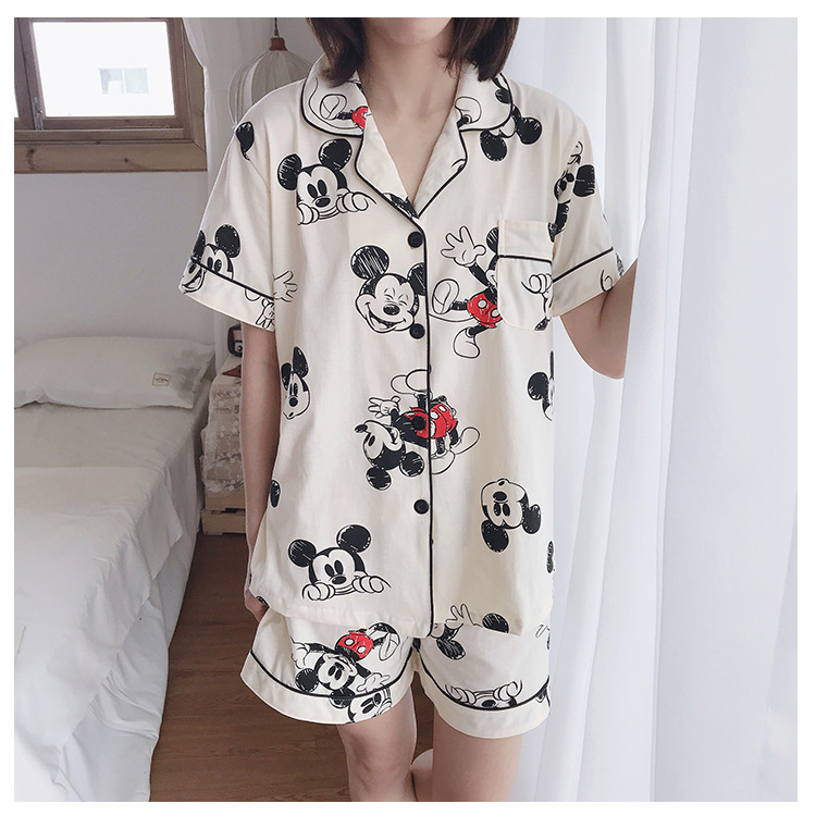 Celebridad en línea ins estilo Corea del Sur pijamas de dibujos animados verano de las mujeres Mickey pantalones cortos de manga corta de alto grado lindo traje homewear