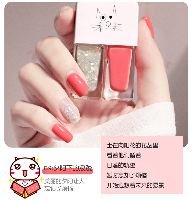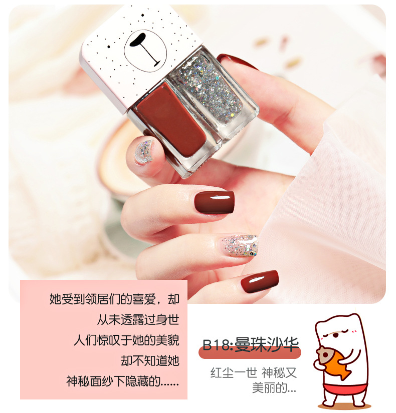 Esmalte de uñas doble Traje de esmalte de uñas libre de hornear de larga duración no lagrimeo no peeling esmalte de uñas aceitoso
