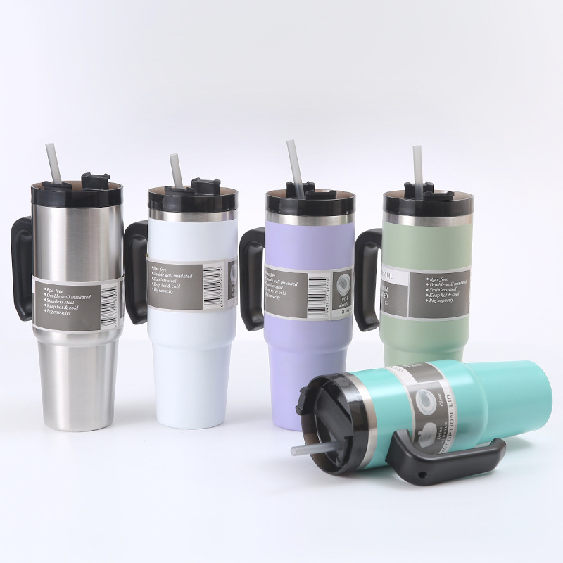 Taza de vacío de acero inoxidable 304 con mango Taza de helado de paja Coche de doble capa 30oz Taza de coche Taza de agua fría