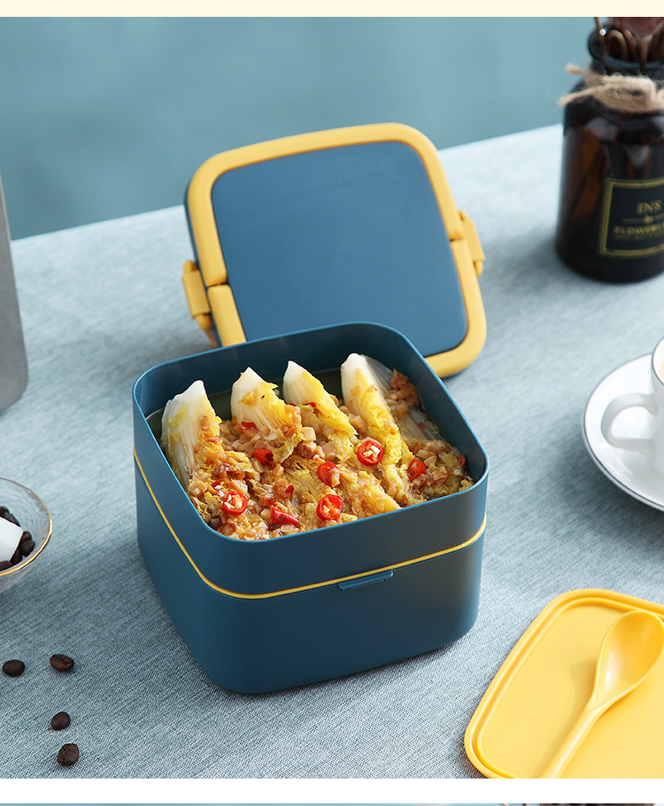 Caja de almuerzo de trabajador de oficina doble capa de estilo japonés caja de almuerzo de microondas portátil separada gran caja de almuerzo climatizada con vajilla