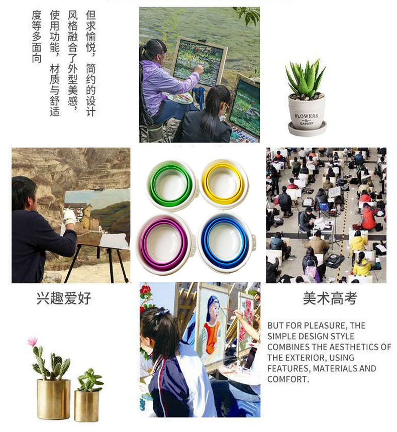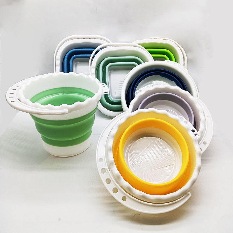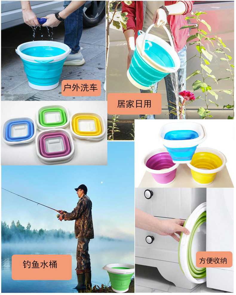 Cubo plegable multifuncional portátil de silicona de plástico cubo de la pesca suministros de arte al aire libre boceto titular de la pluma