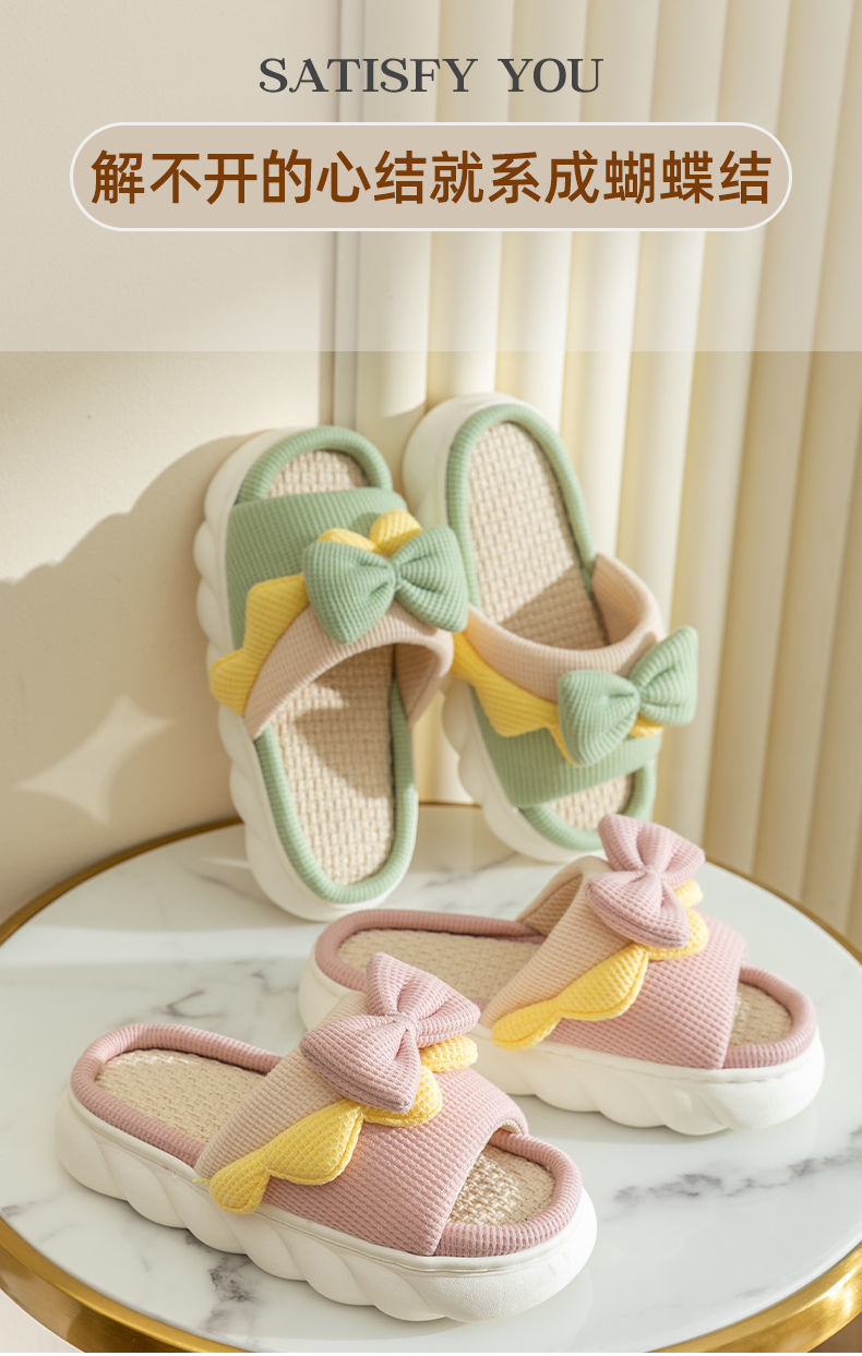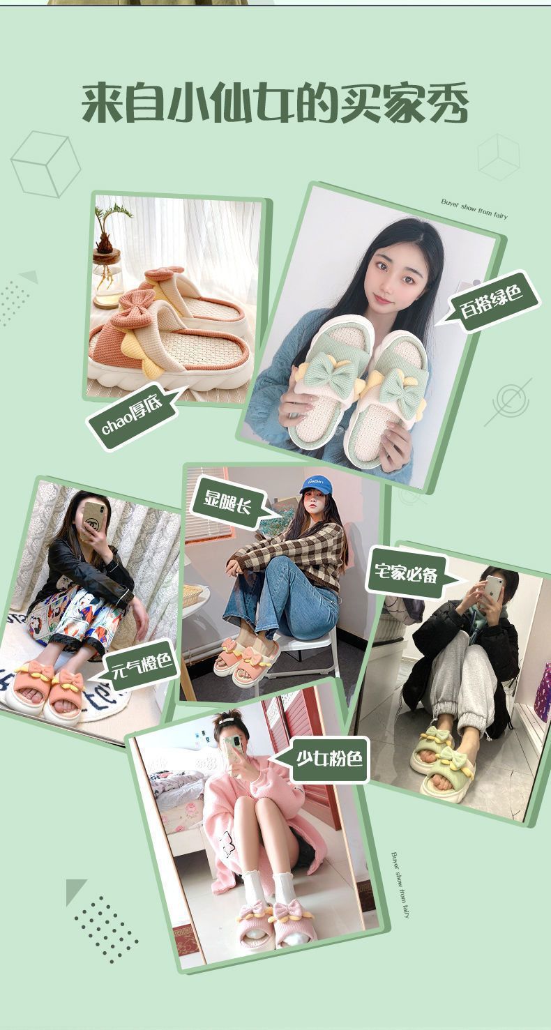 Primavera y otoño nuevas sandalias antideslizantes de algodón y lino para pareja Nuevas zapatillas de lino de fondo grueso para mujer cuatro estaciones lindo hogar interior