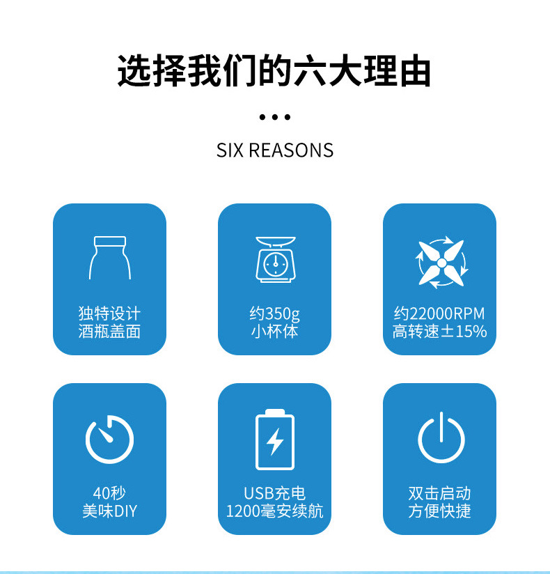 Nueva taza de jugo eléctrico portátil recargable botella de vino 6-bit recargable mini taza de jugo portátil agitación