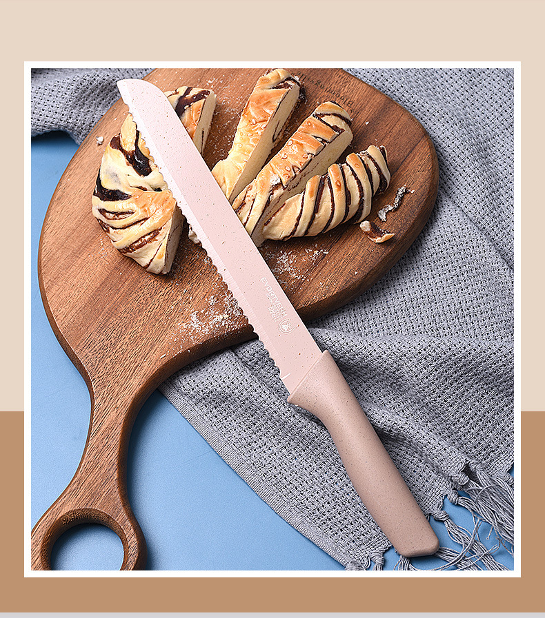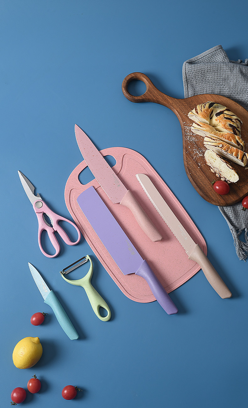 Color cuchillo traje Acero inoxidable trigo polo 6-piezas conjunto de cuchillo de paja de trigo traje 7-piezas conjunto cuchillo con tablero de corte de regalo