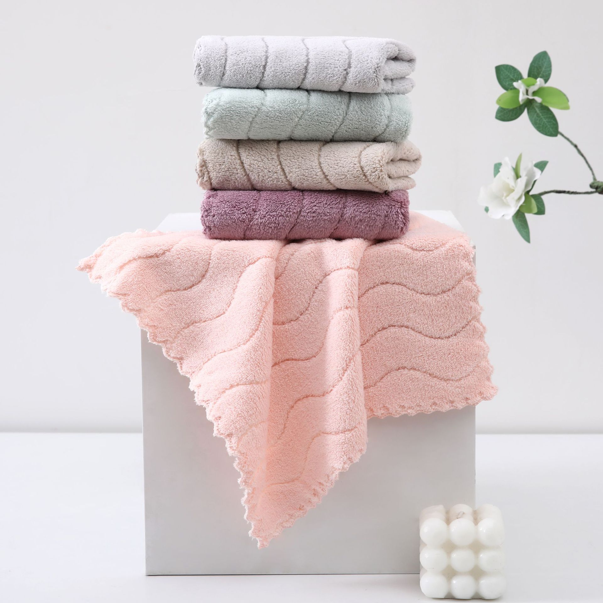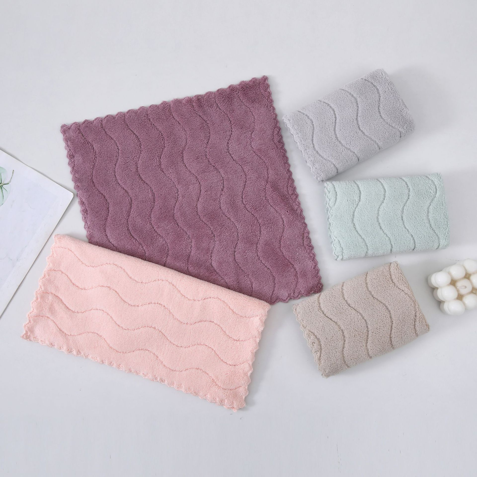 5 Pack 30*30 urdimbre de alta densidad de punto de lana de coral toalla cuadrada Punch-In trapo Toalla de plato niños adultos toalla de mano al por mayor