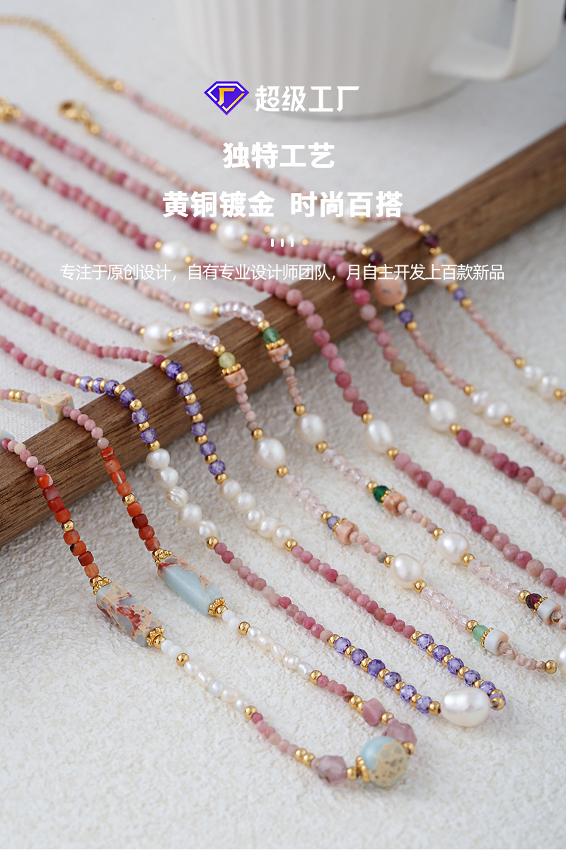 18K joyería chapada en oro de 18K europeo y americano de la moda de nicho suave temperamento Piedra Natural perla real ins collar de cuentas joyería para las mujeres