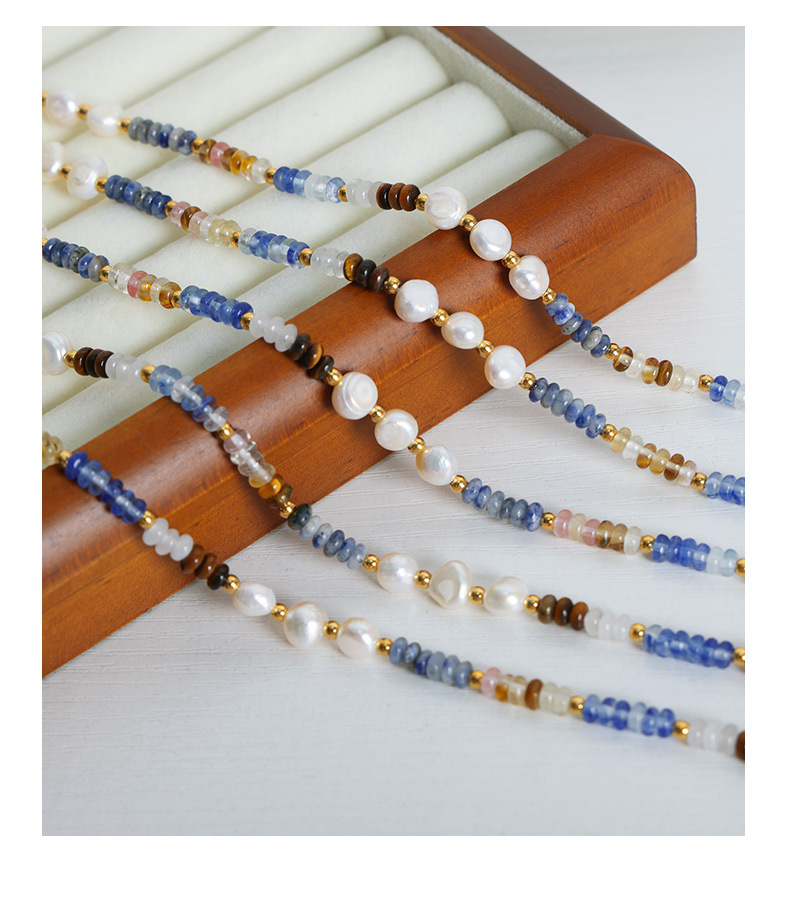 Cuentas de piedra natural perlas agua dulce hecho a mano collar acero titanio versátil personalidad colorido dulce chica temperamento joyería para las mujeres
