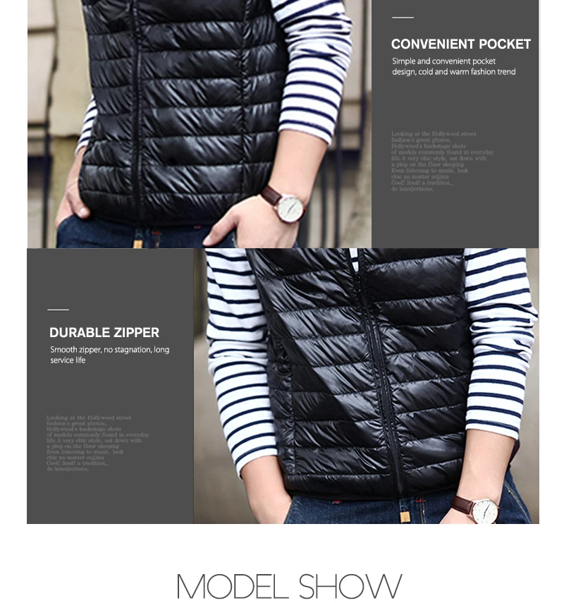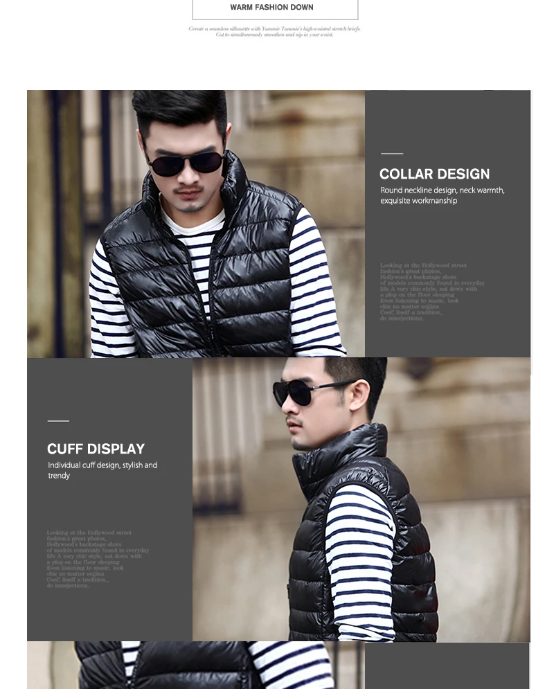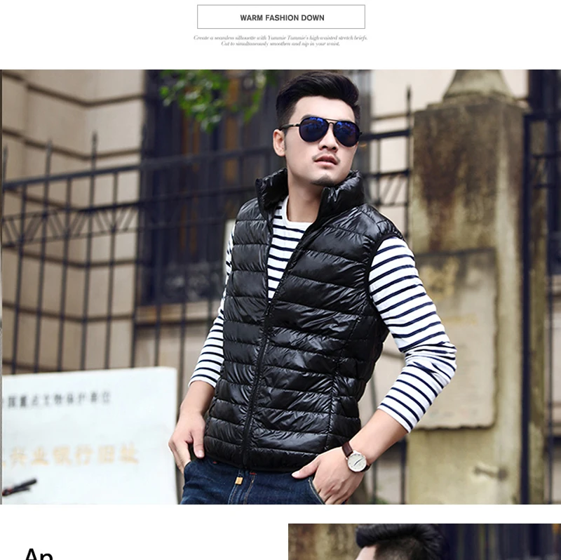 Suministro transfronterizo Nueva chaqueta de abajo chaleco ligero cuello de pie slim fit Plus tamaño de los hombres Chaleco corto de fábrica al por mayor