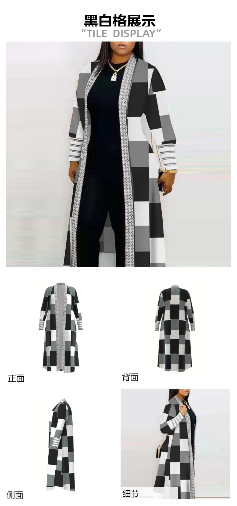 2024 ropa de mujer de comercio exterior transfronterizo Negro estilo de moda casual impreso manga larga costura abrigo de punto medio ropa de mujer