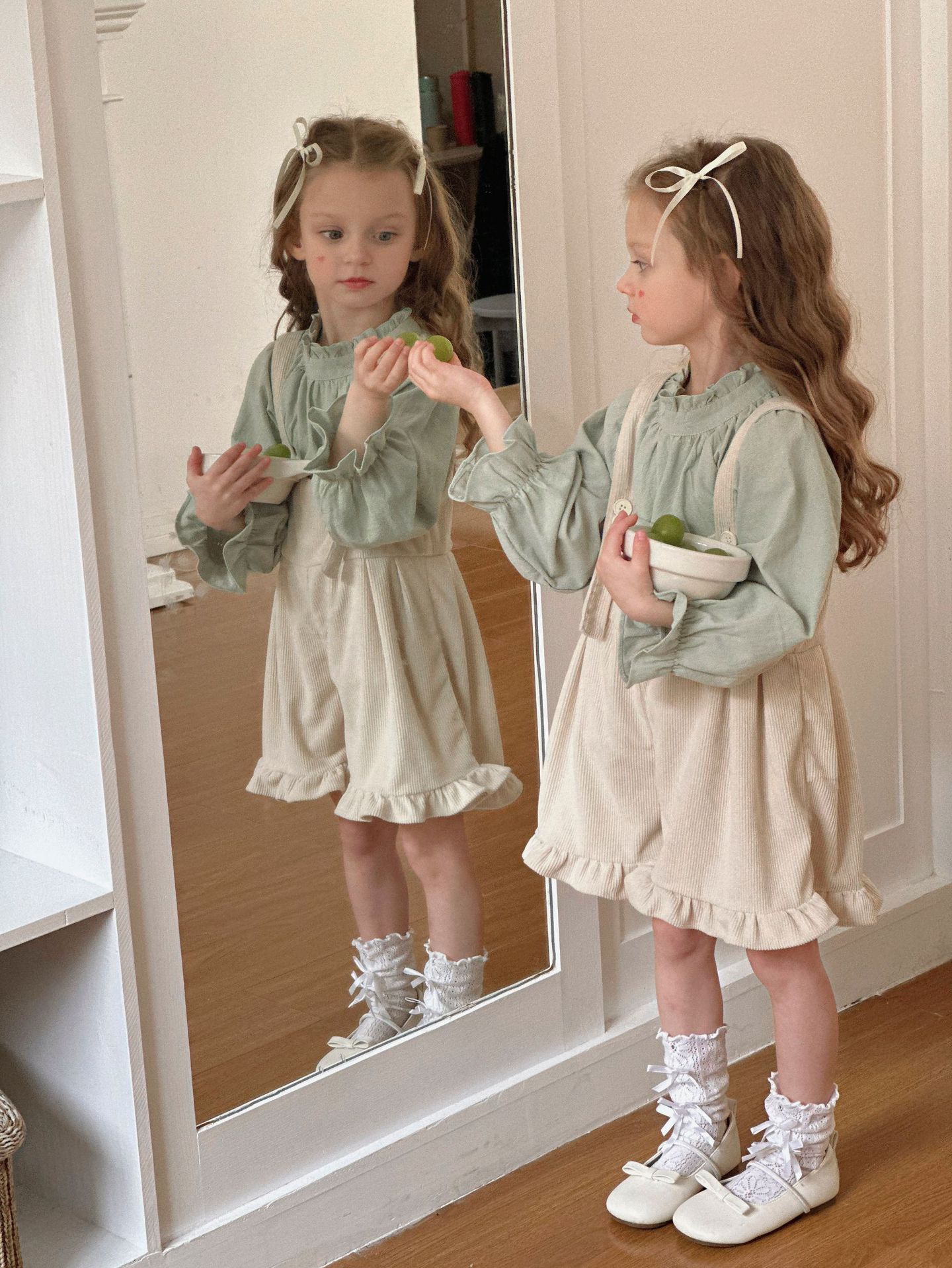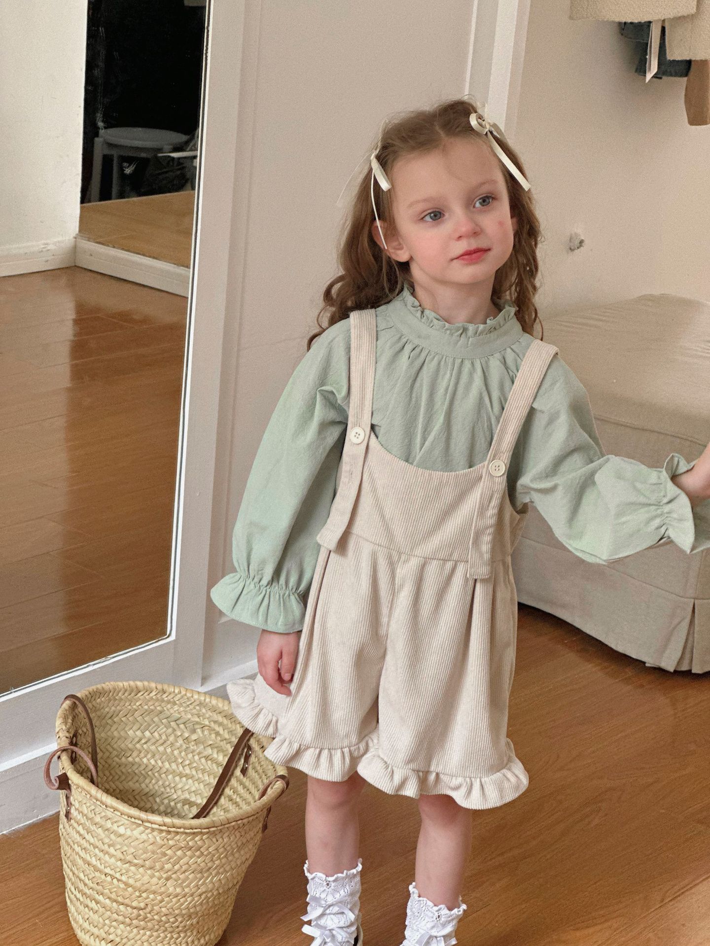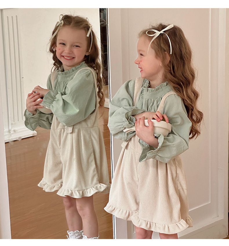 Campo DE TRIGO 2024 primavera nuevo estilo coreano ropa para niños niñas algodón camisa de oído de madera pantalones cortos para niños camisa