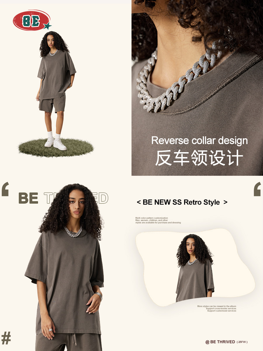 BE ropa de hombre | 2025 verano americano marca de moda europea y americana casual top de media manga para hombre camiseta de manga corta lavada contra el coche para hombre de moda