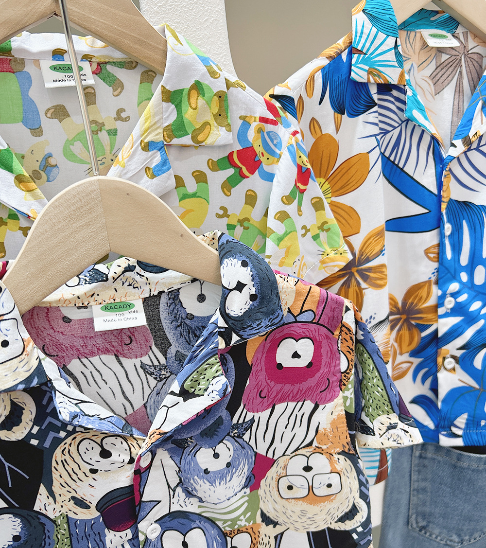 Camisa de verano para niños camisa de flores 2024 para niños medianos y grandes camisa casual para niños solapa ropa de playa estilo de vacaciones manga corta