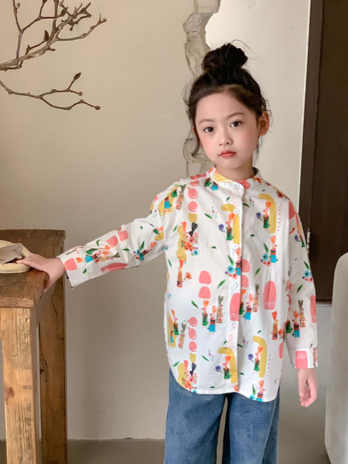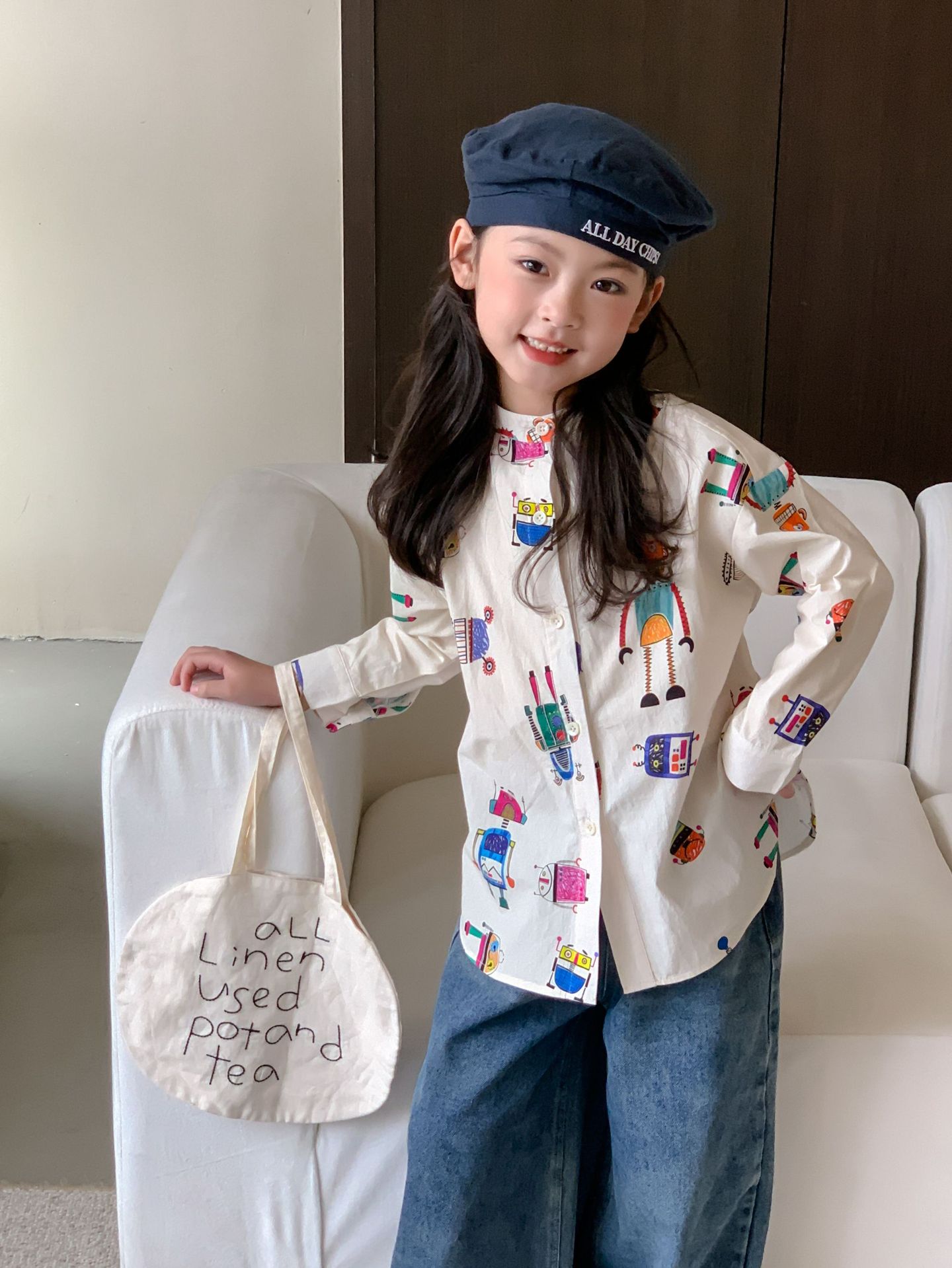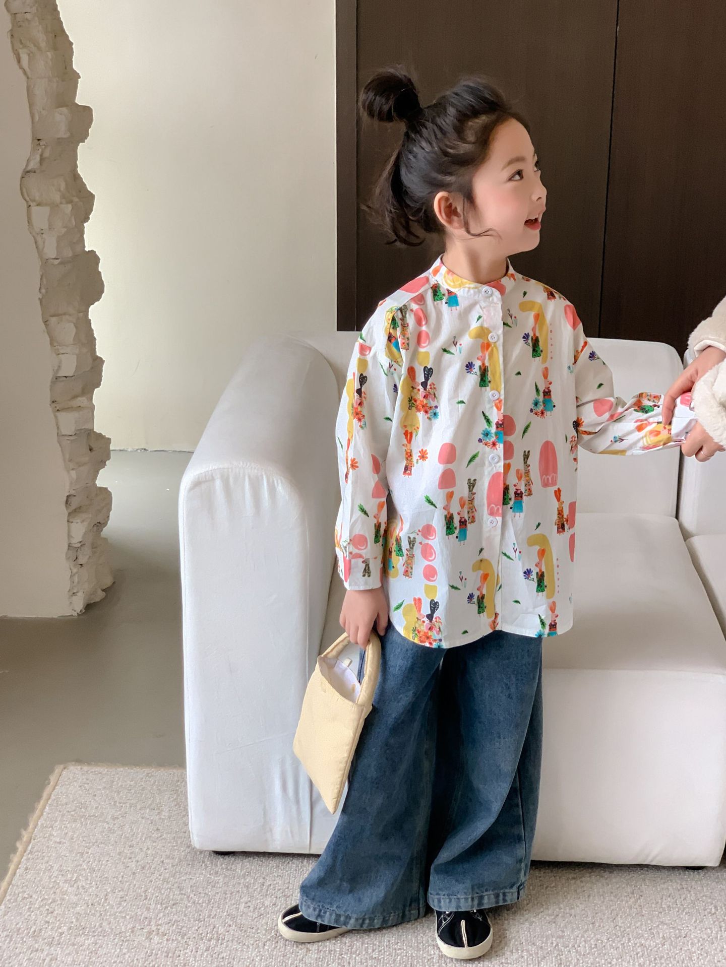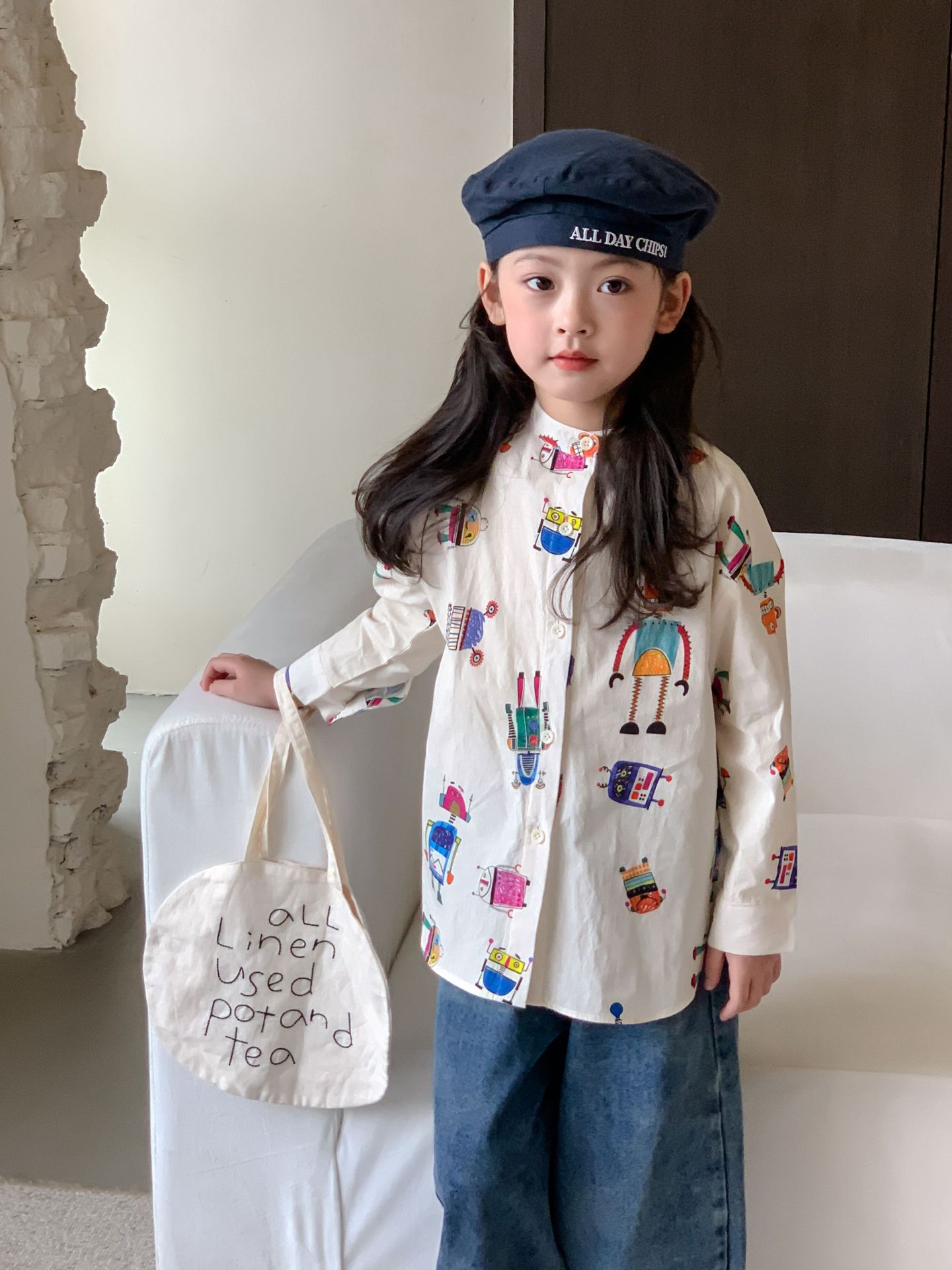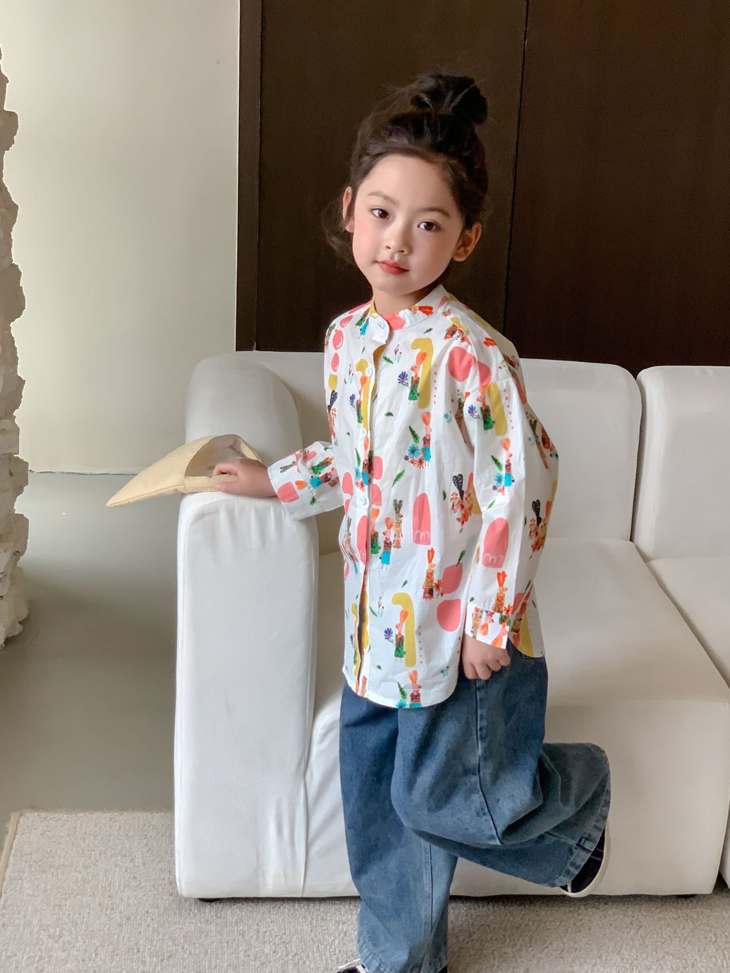 Camisa de graffiti divertida para niños collar de pie para Niñas Ropa para niños 2024 primavera bebé niña de dibujos animados impresa camisa de manga larga ropa de diseño