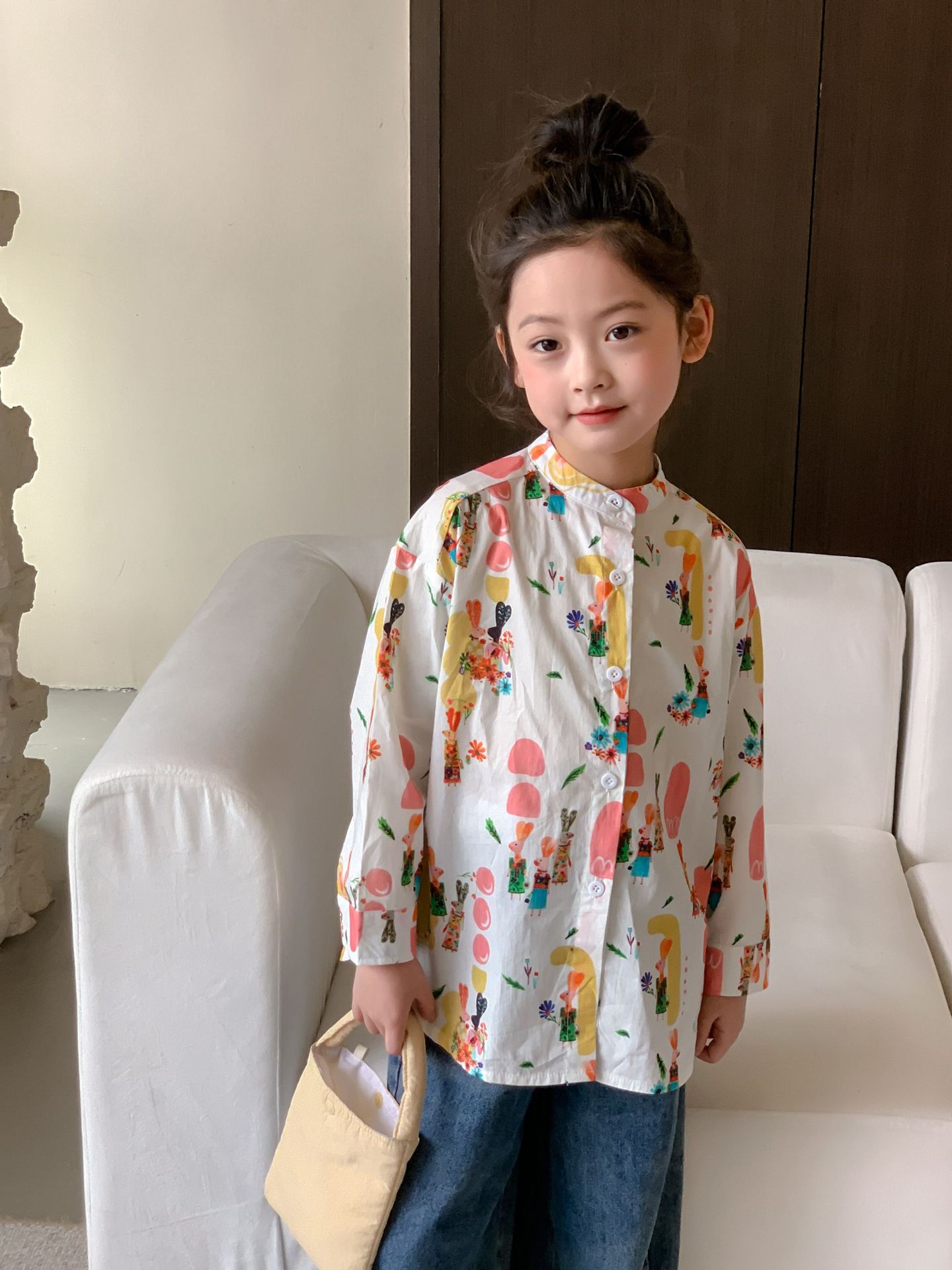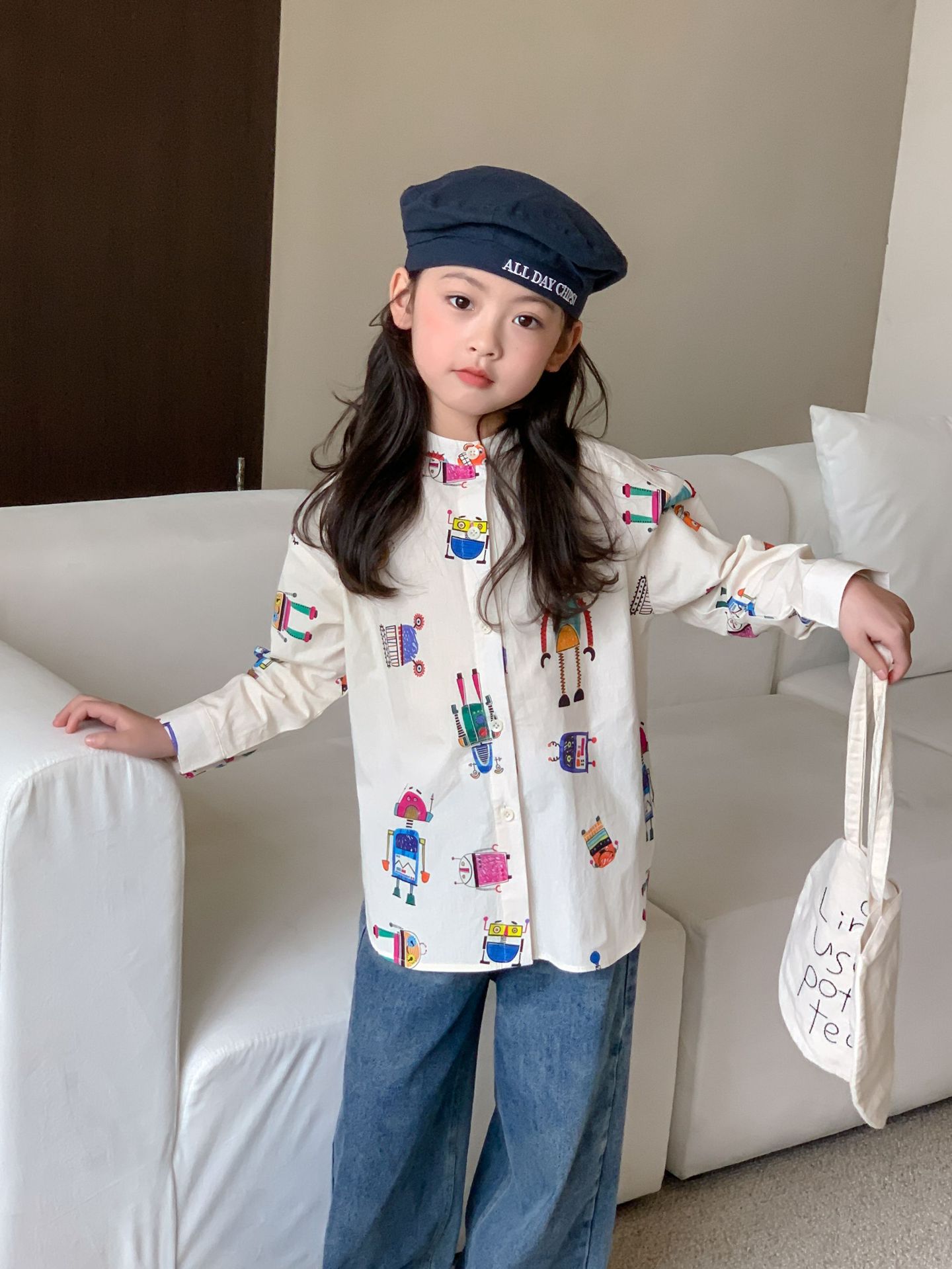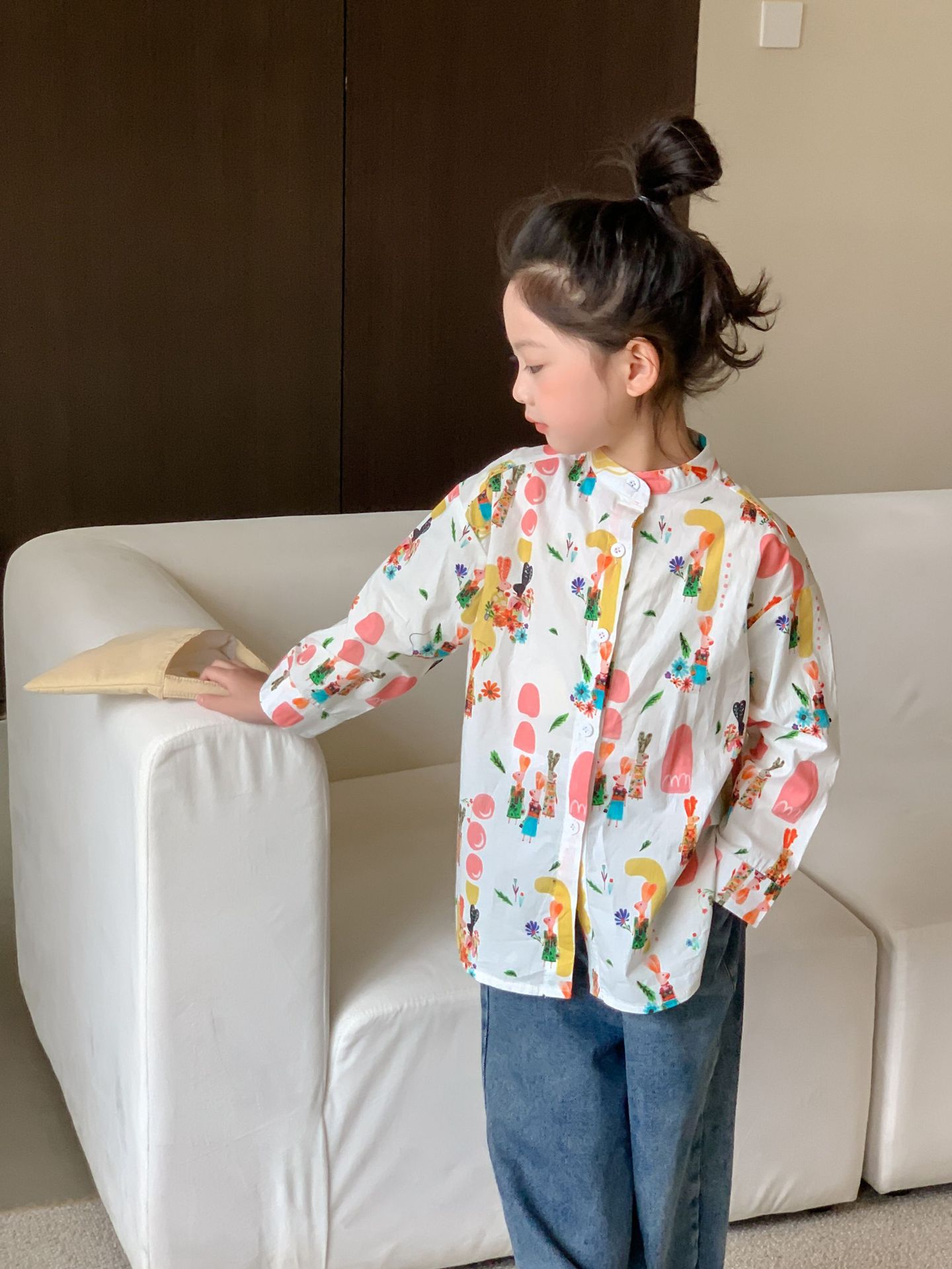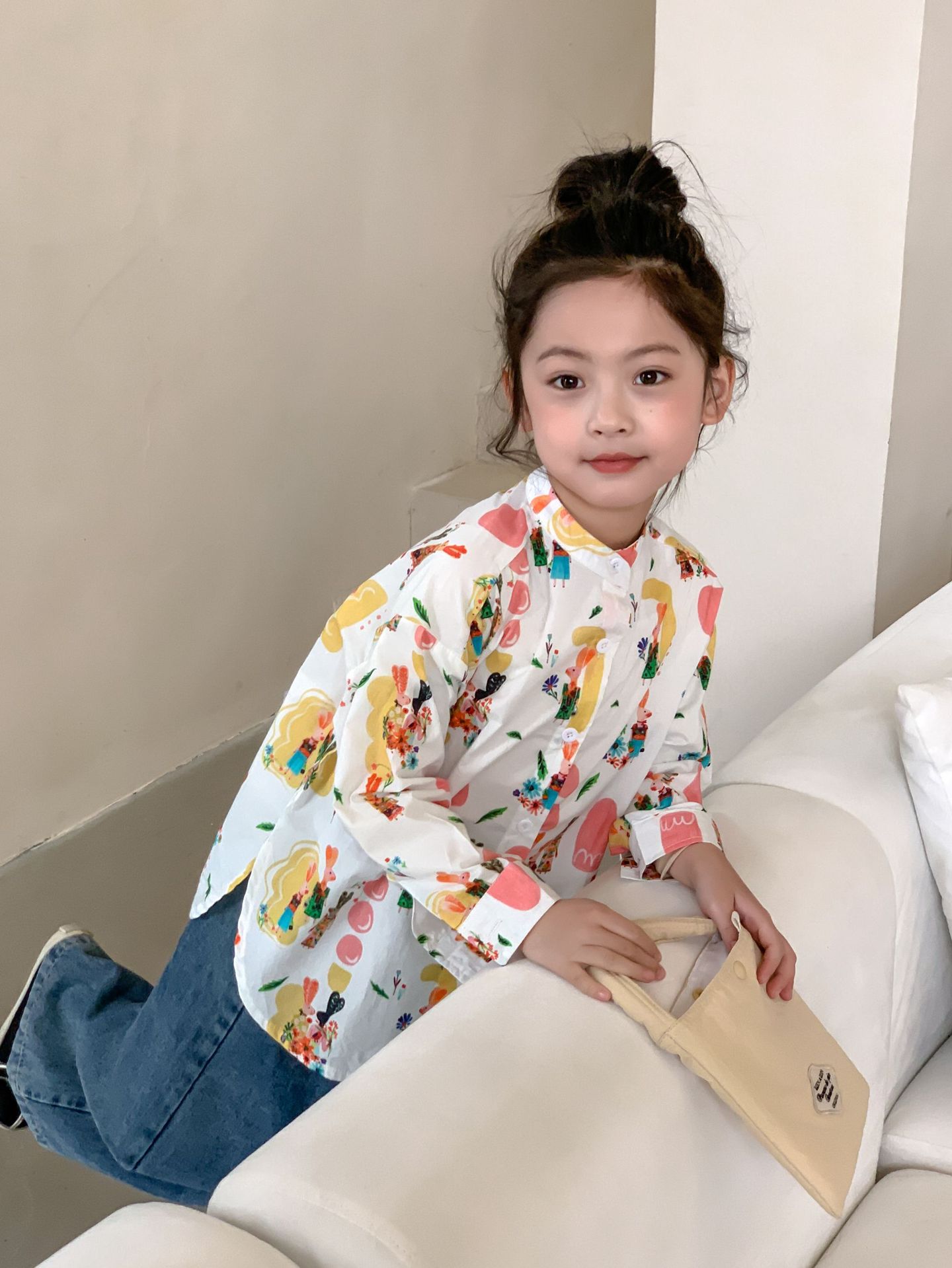 Camisa de graffiti divertida para niños collar de pie para Niñas Ropa para niños 2024 primavera bebé niña de dibujos animados impresa camisa de manga larga ropa de diseño