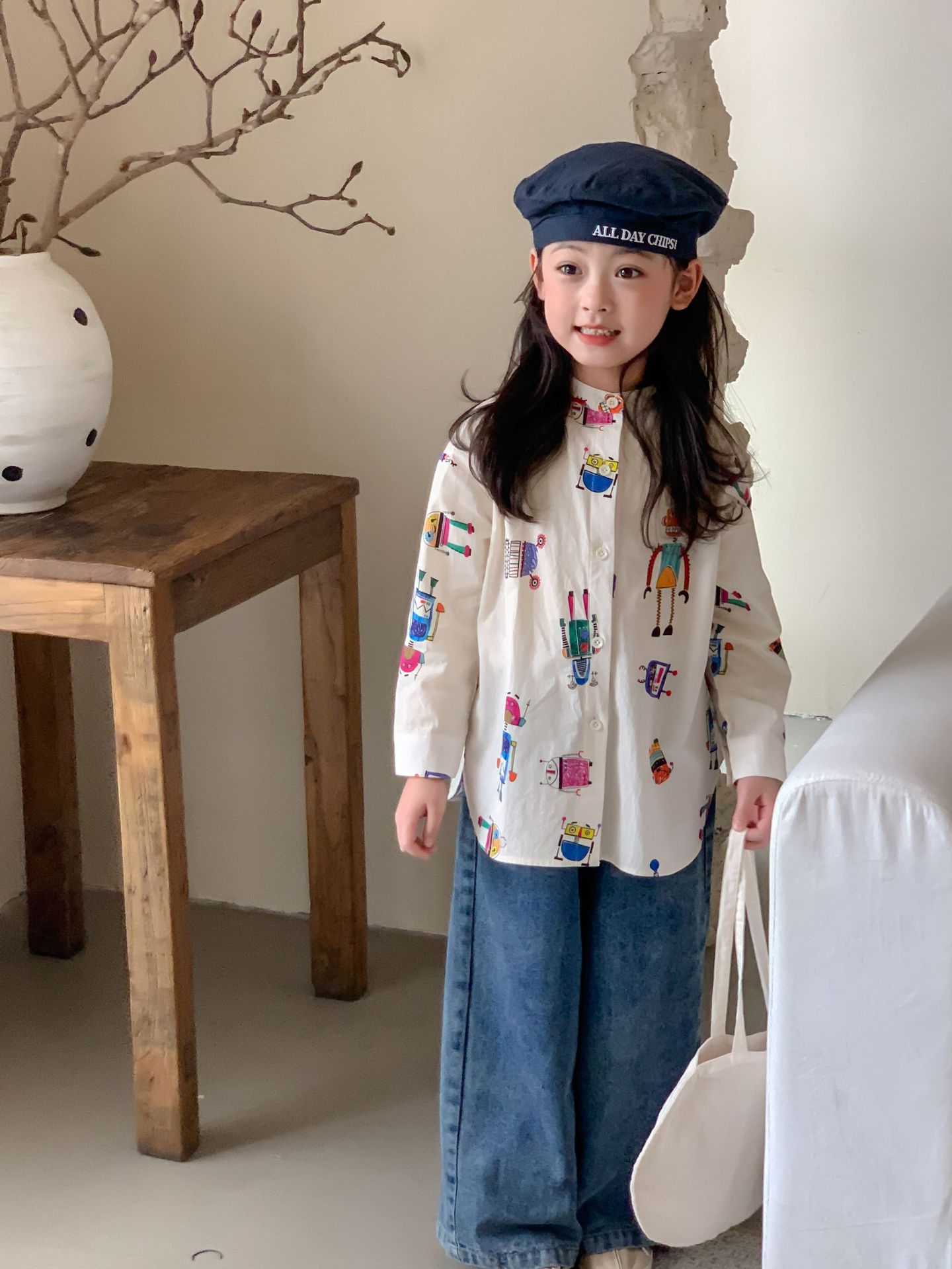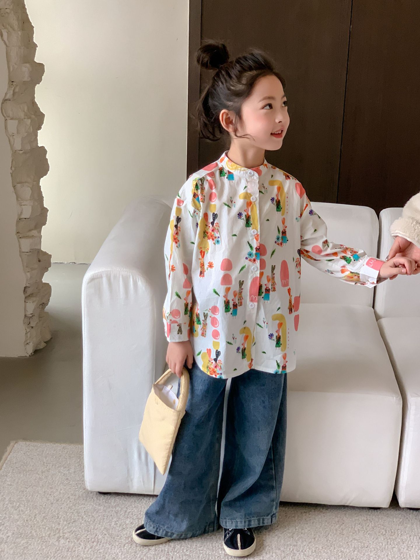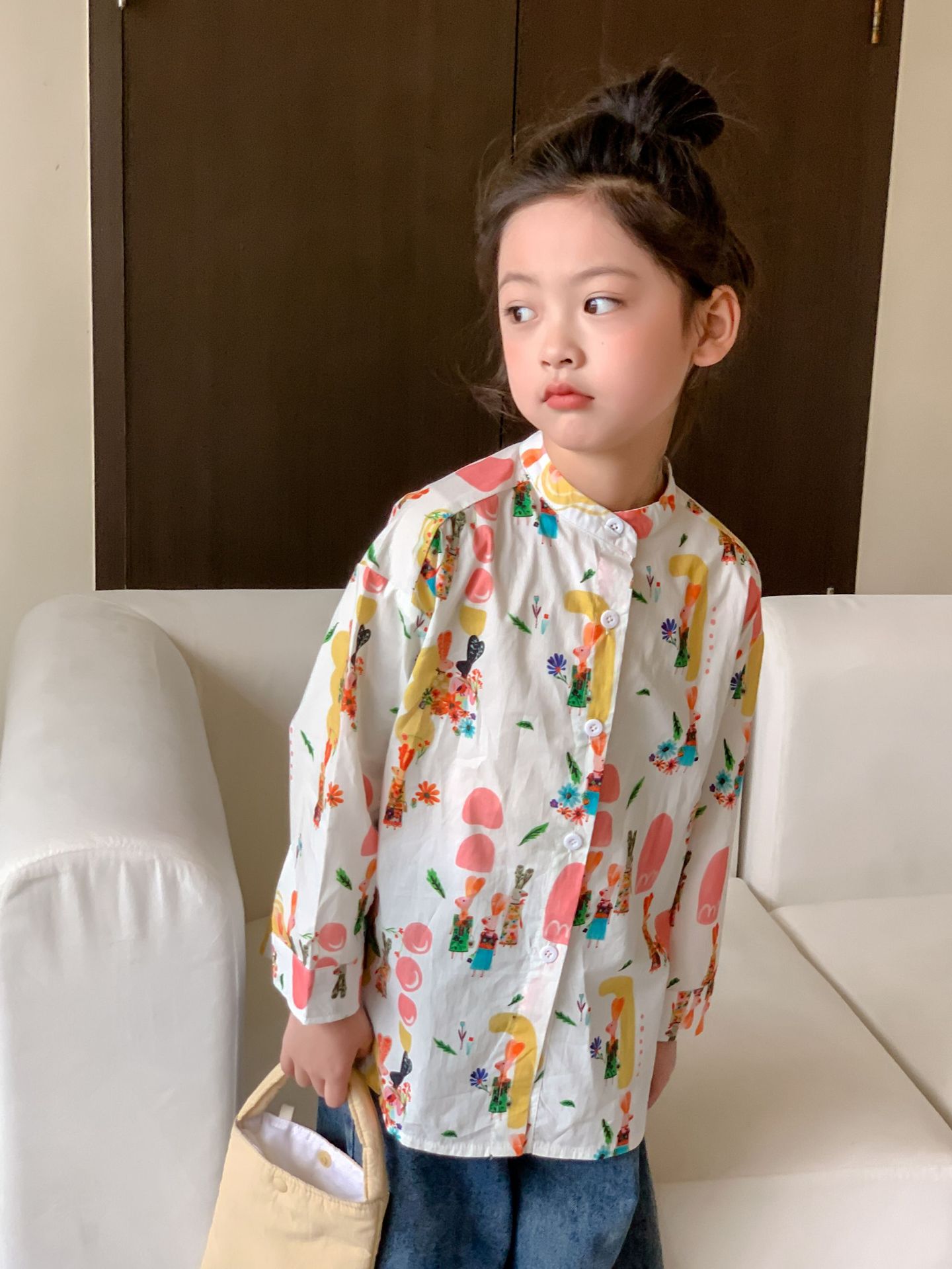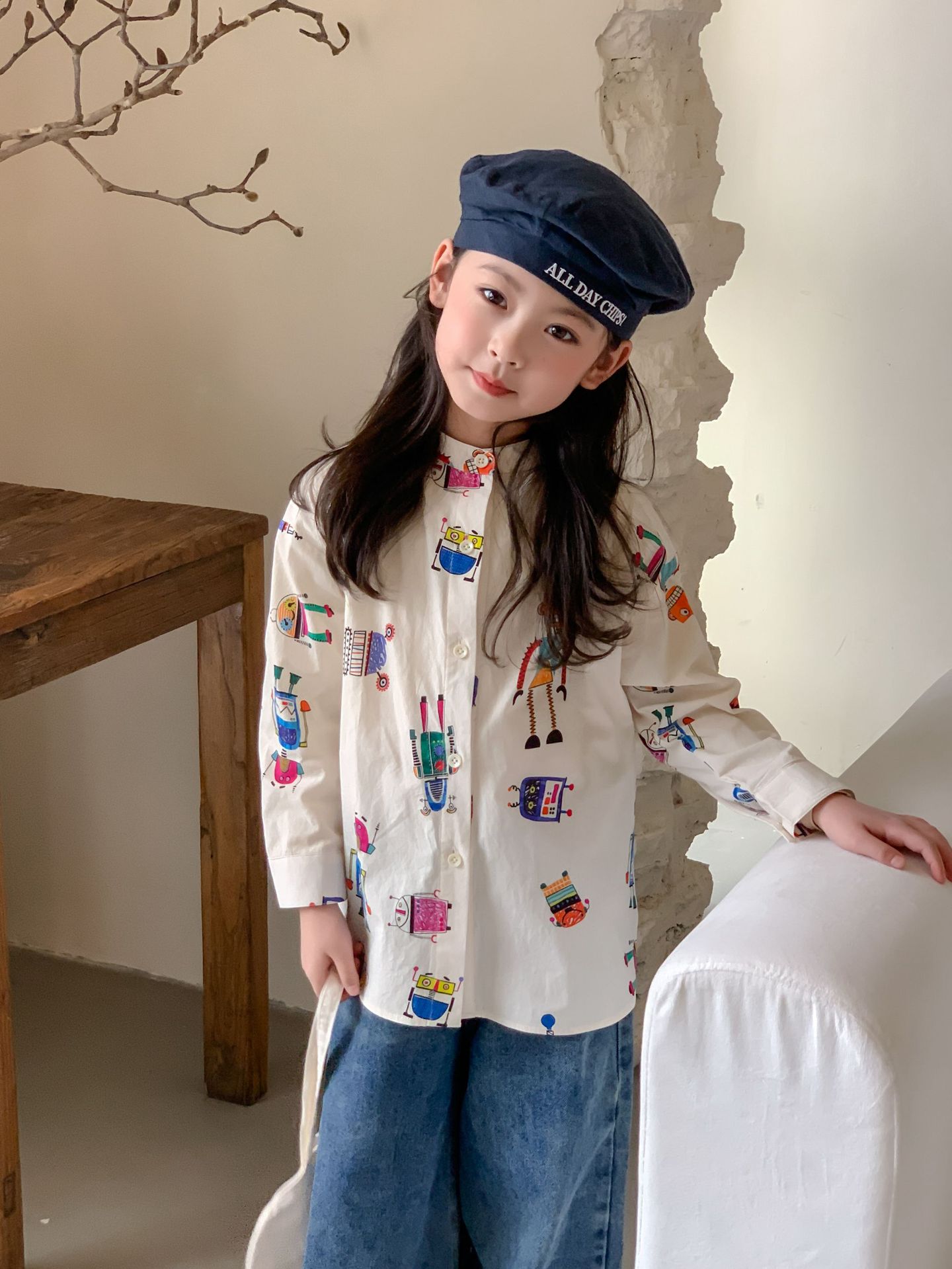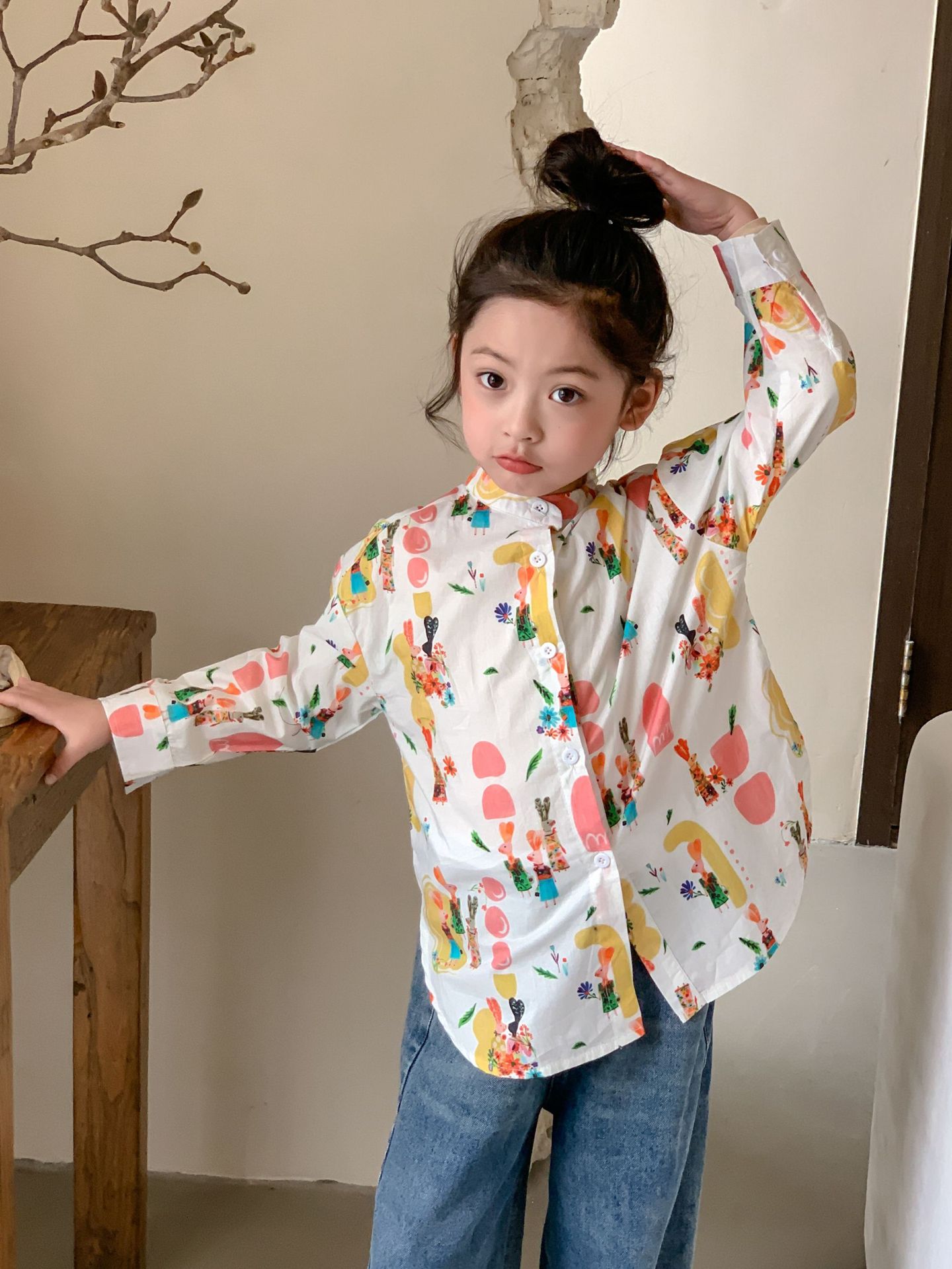 Camisa de graffiti divertida para niños collar de pie para Niñas Ropa para niños 2024 primavera bebé niña de dibujos animados impresa camisa de manga larga ropa de diseño