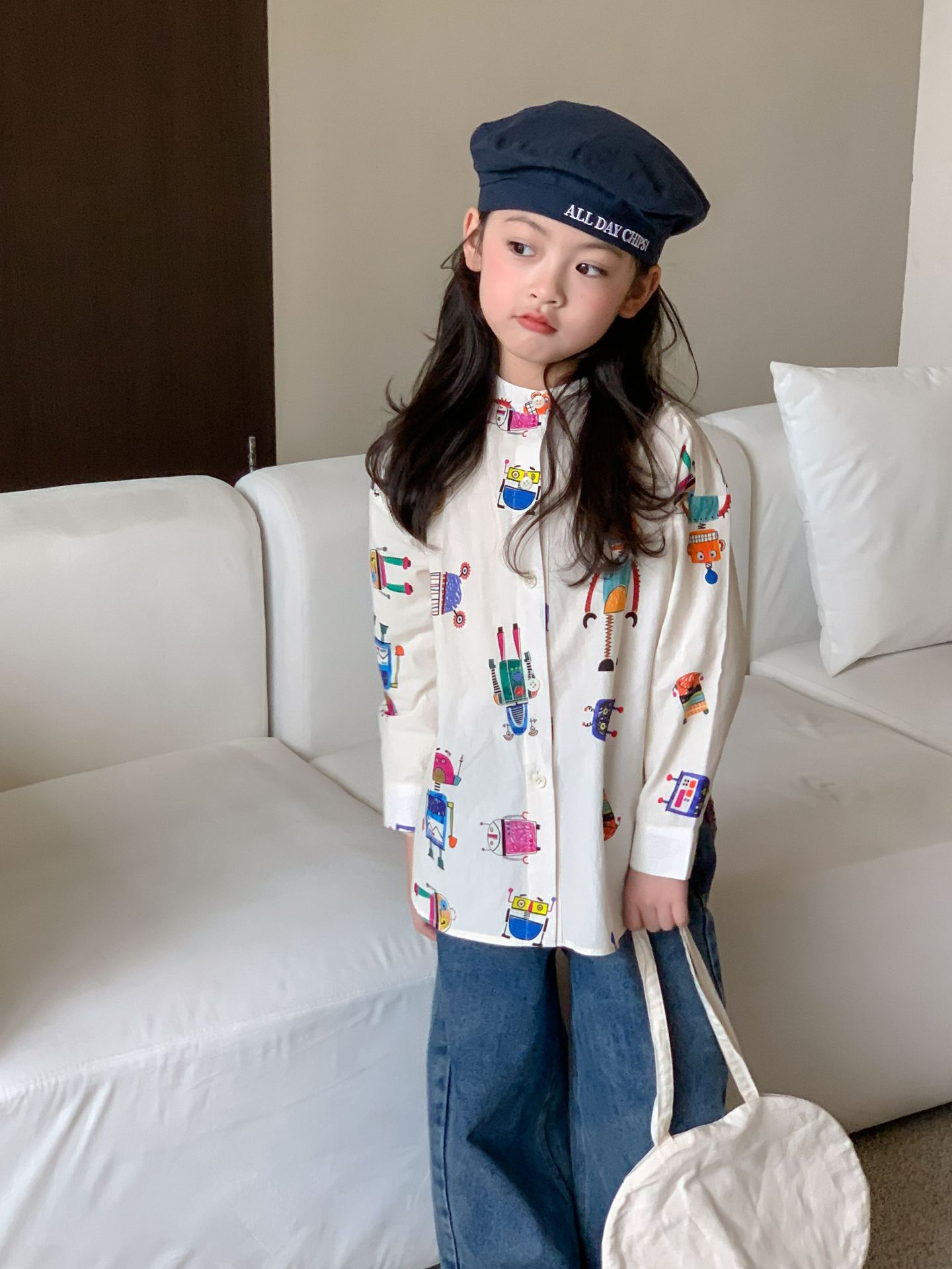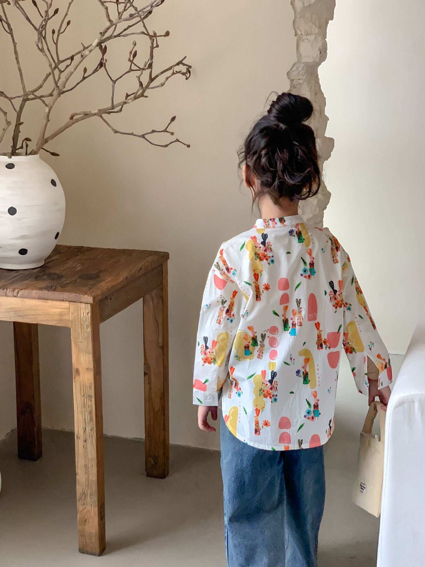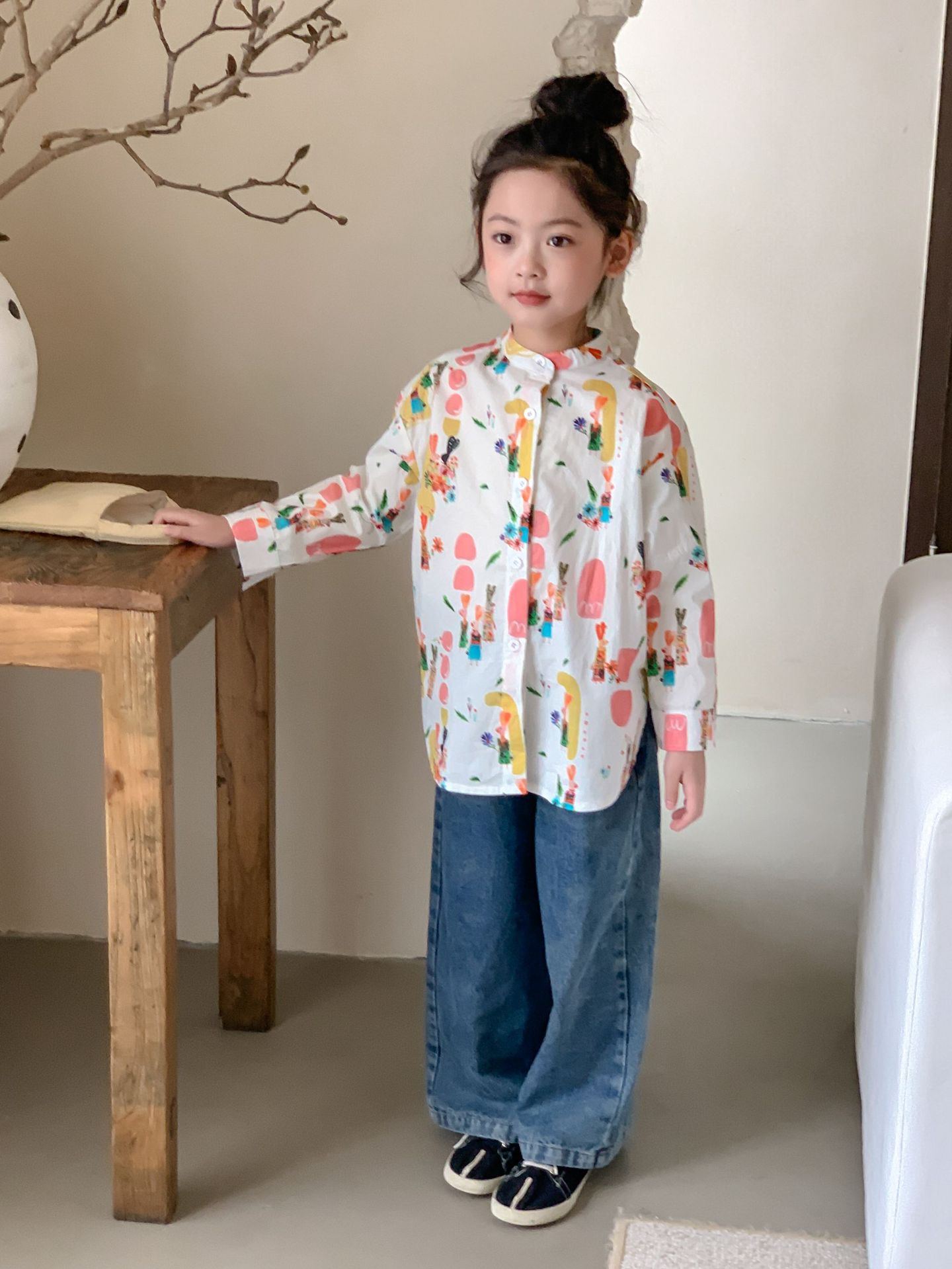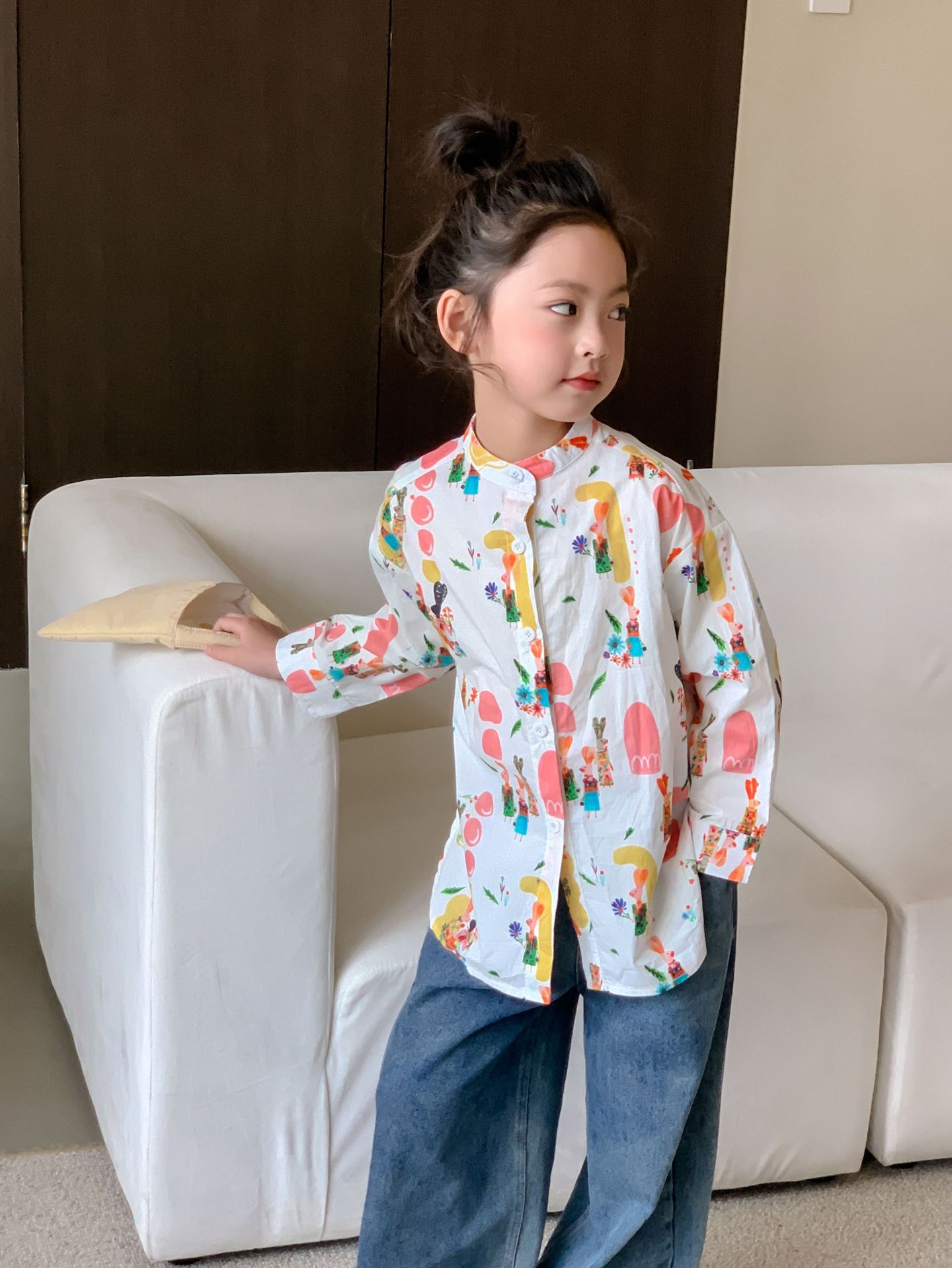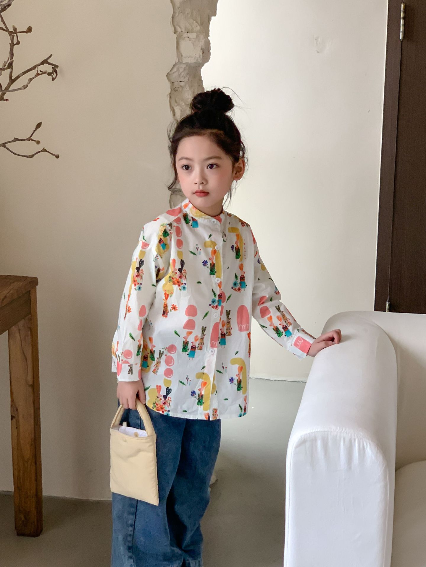 Camisa de graffiti divertida para niños collar de pie para Niñas Ropa para niños 2024 primavera bebé niña de dibujos animados impresa camisa de manga larga ropa de diseño