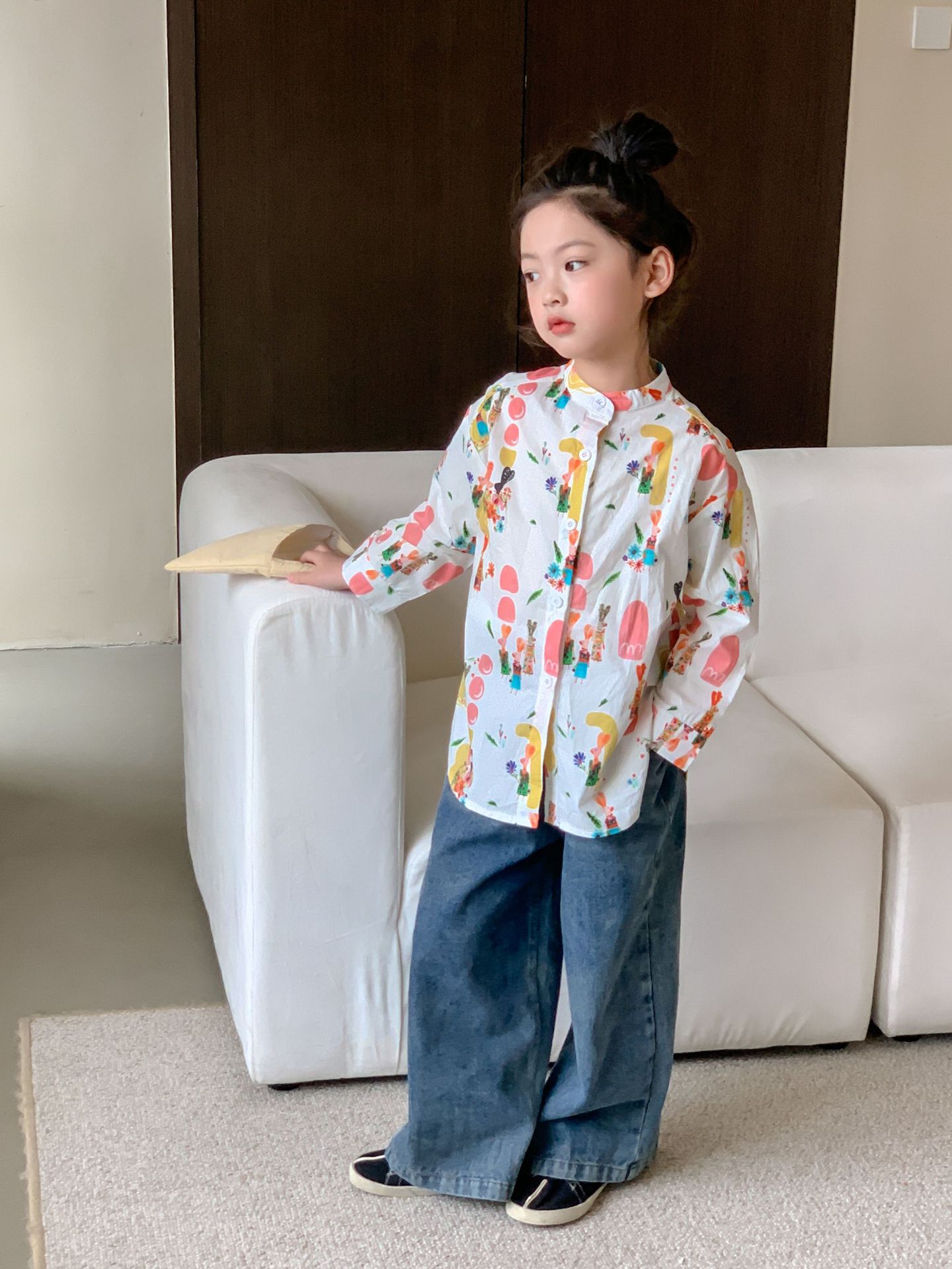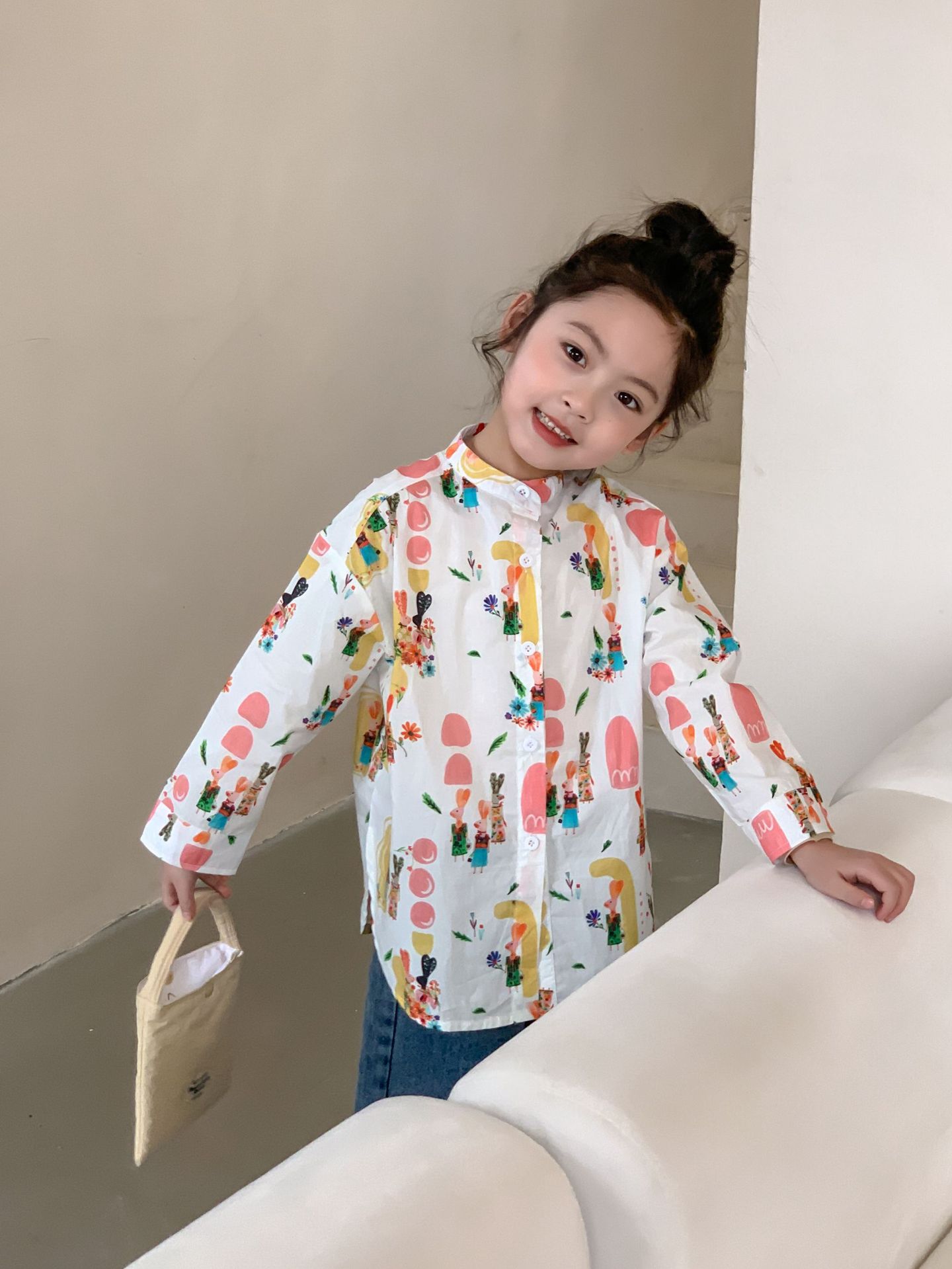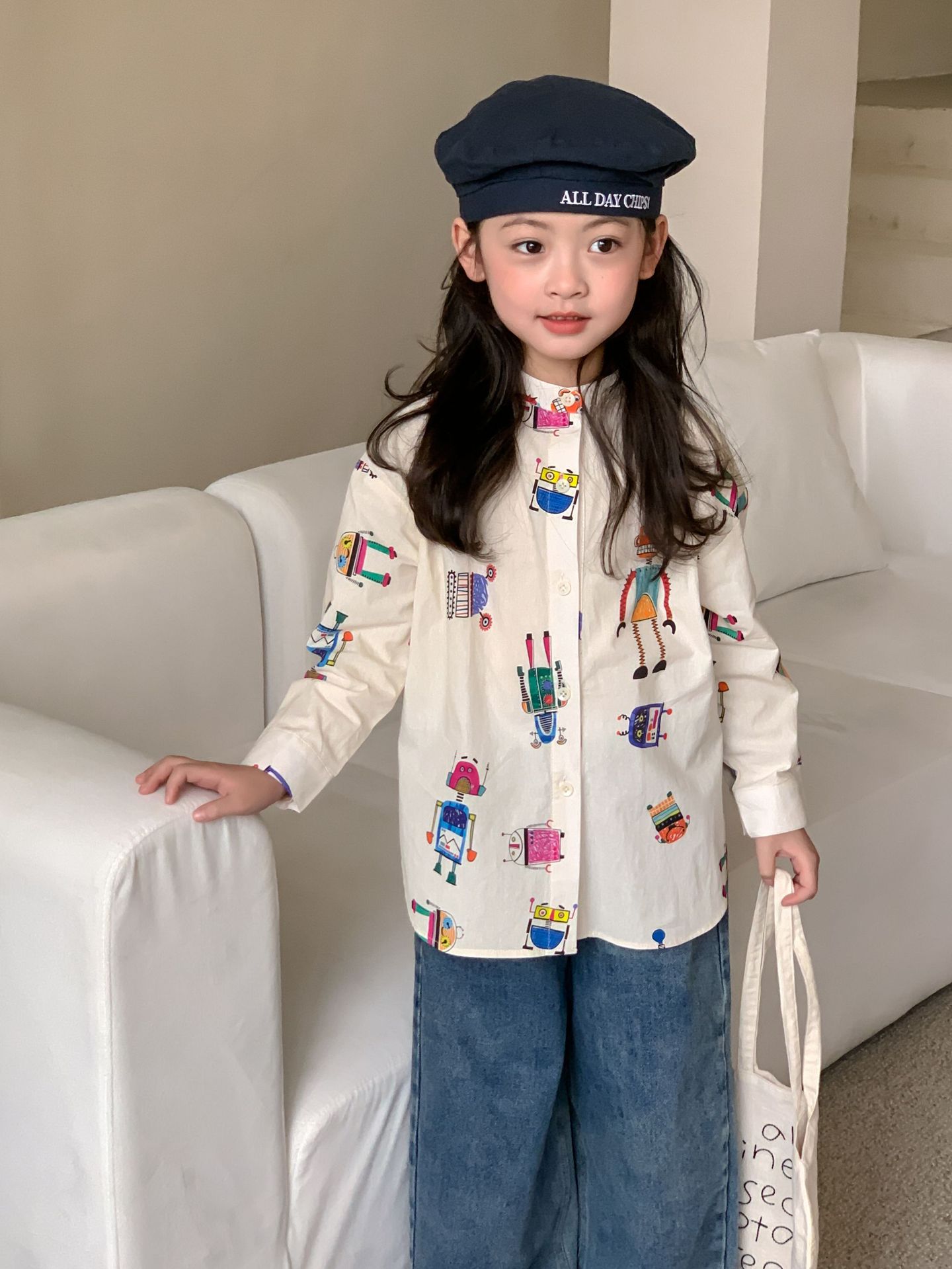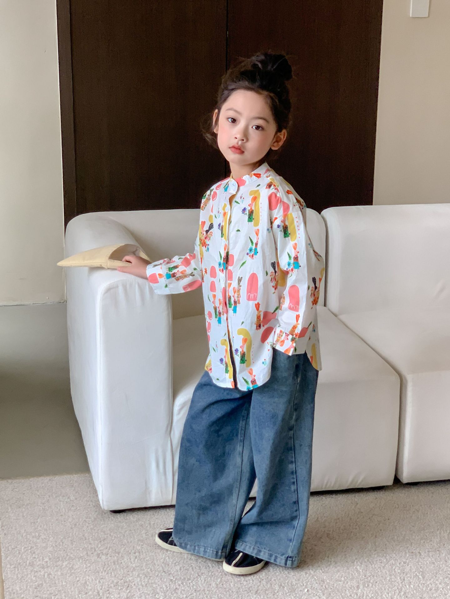Camisa de graffiti divertida para niños collar de pie para Niñas Ropa para niños 2024 primavera bebé niña de dibujos animados impresa camisa de manga larga ropa de diseño