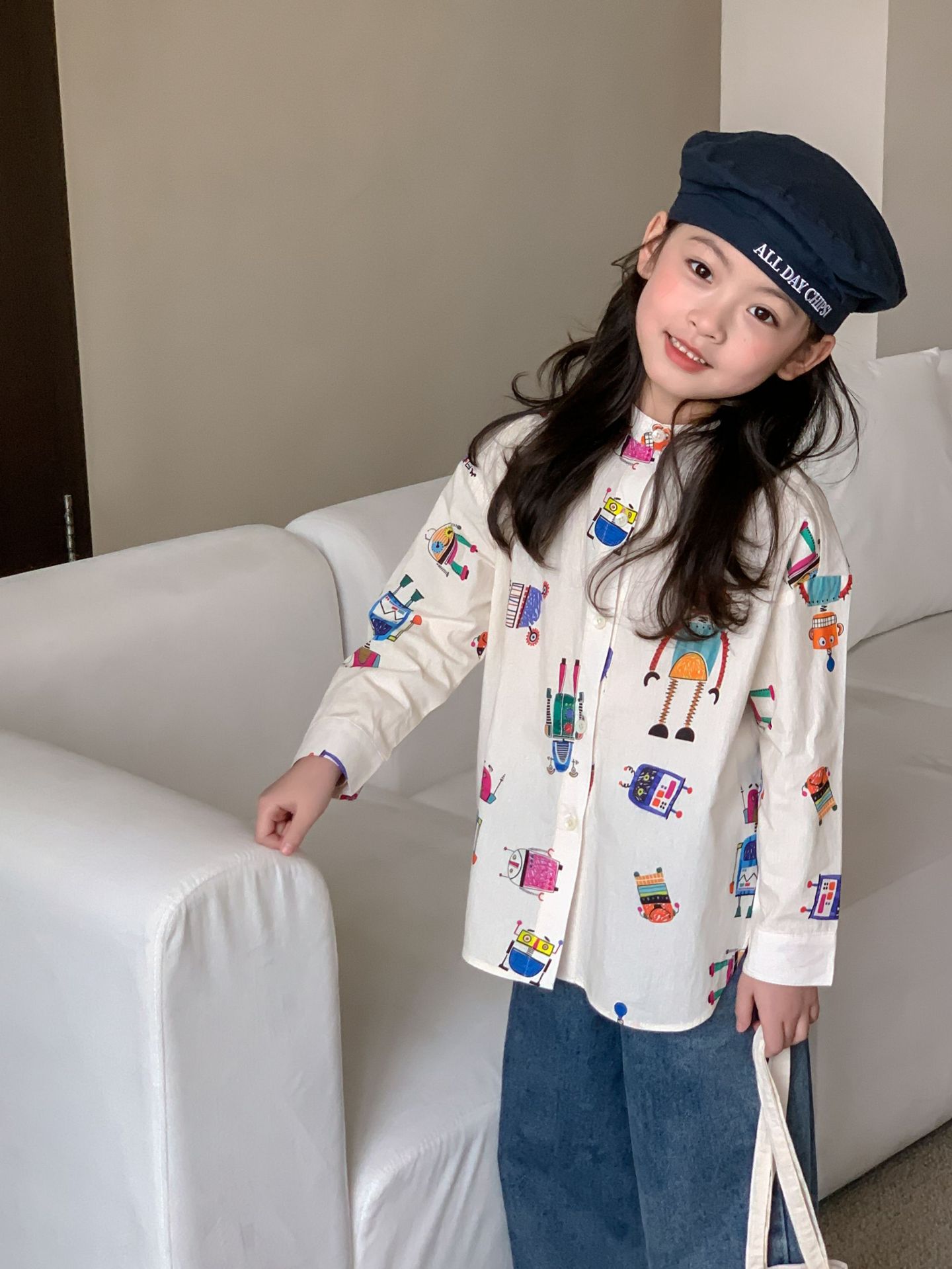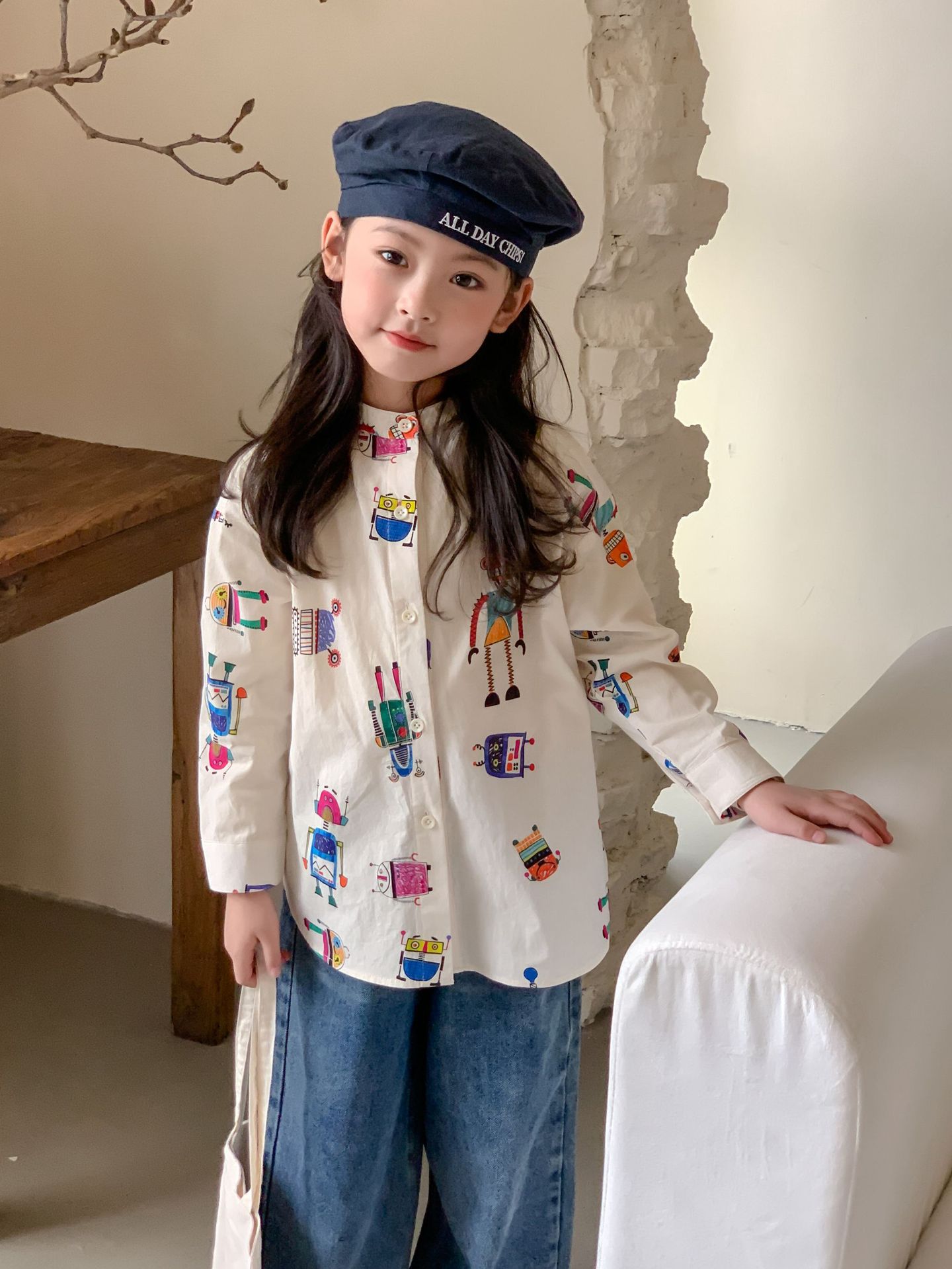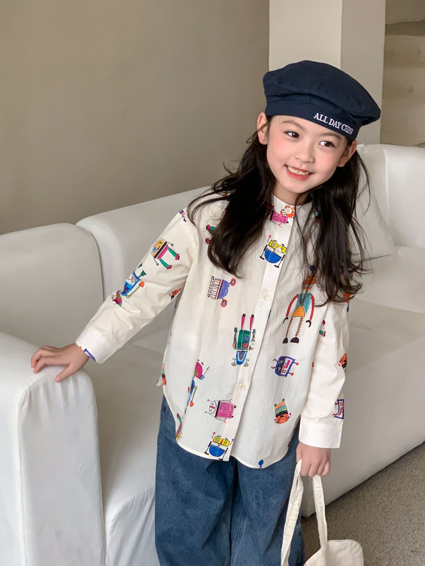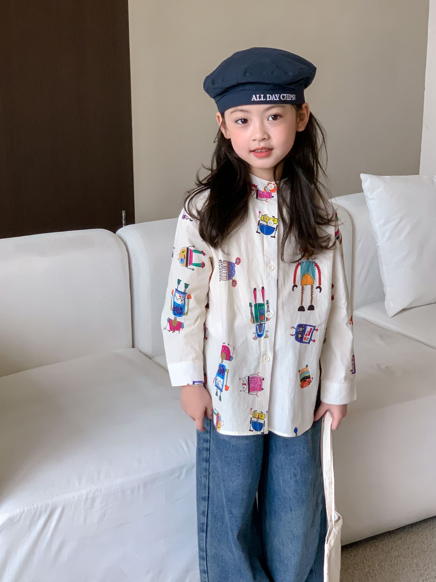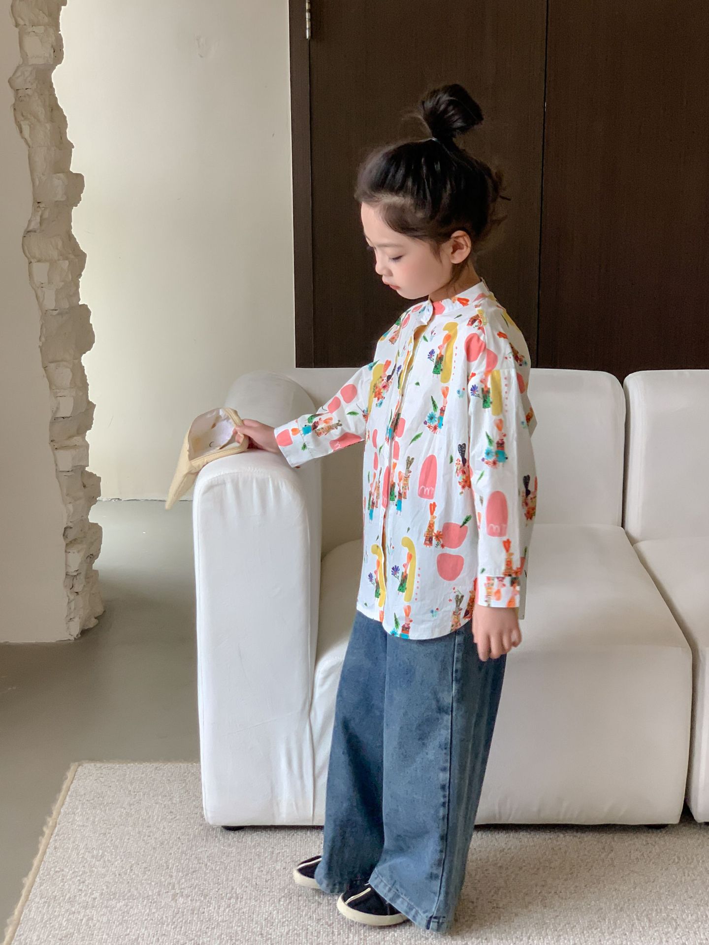 Camisa de graffiti divertida para niños collar de pie para Niñas Ropa para niños 2024 primavera bebé niña de dibujos animados impresa camisa de manga larga ropa de diseño