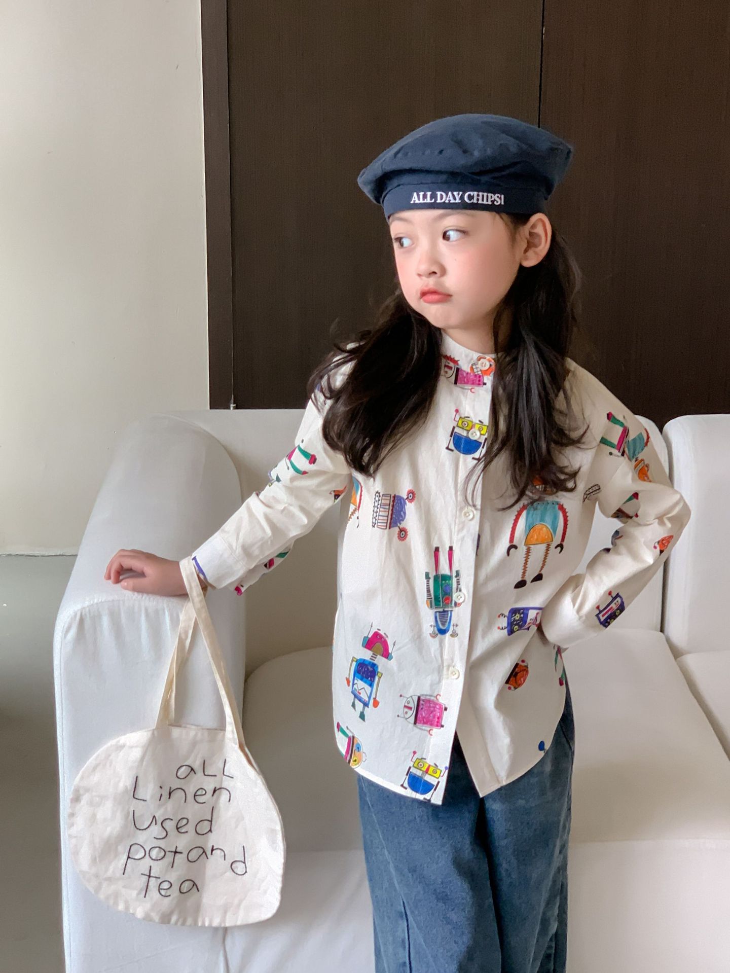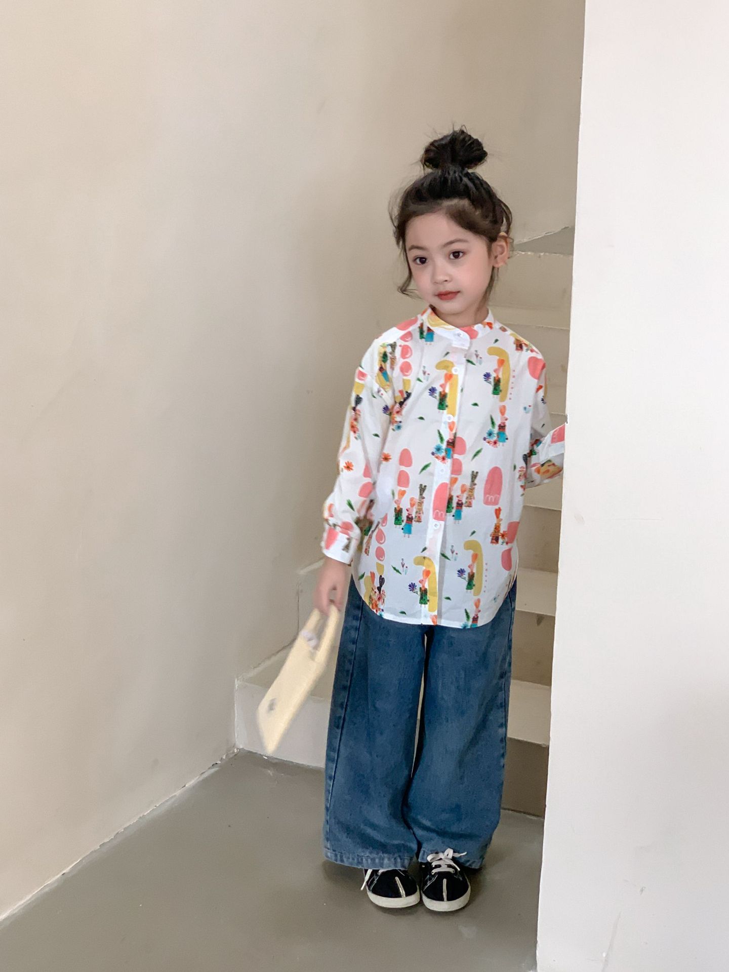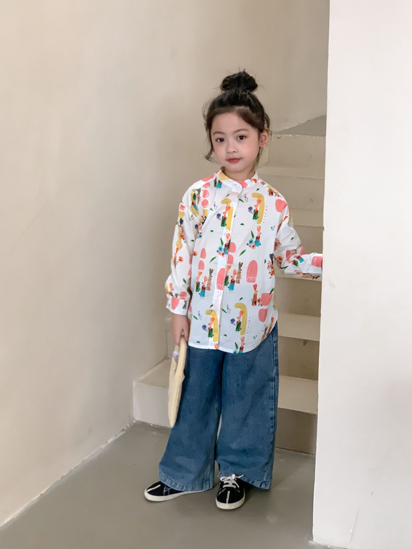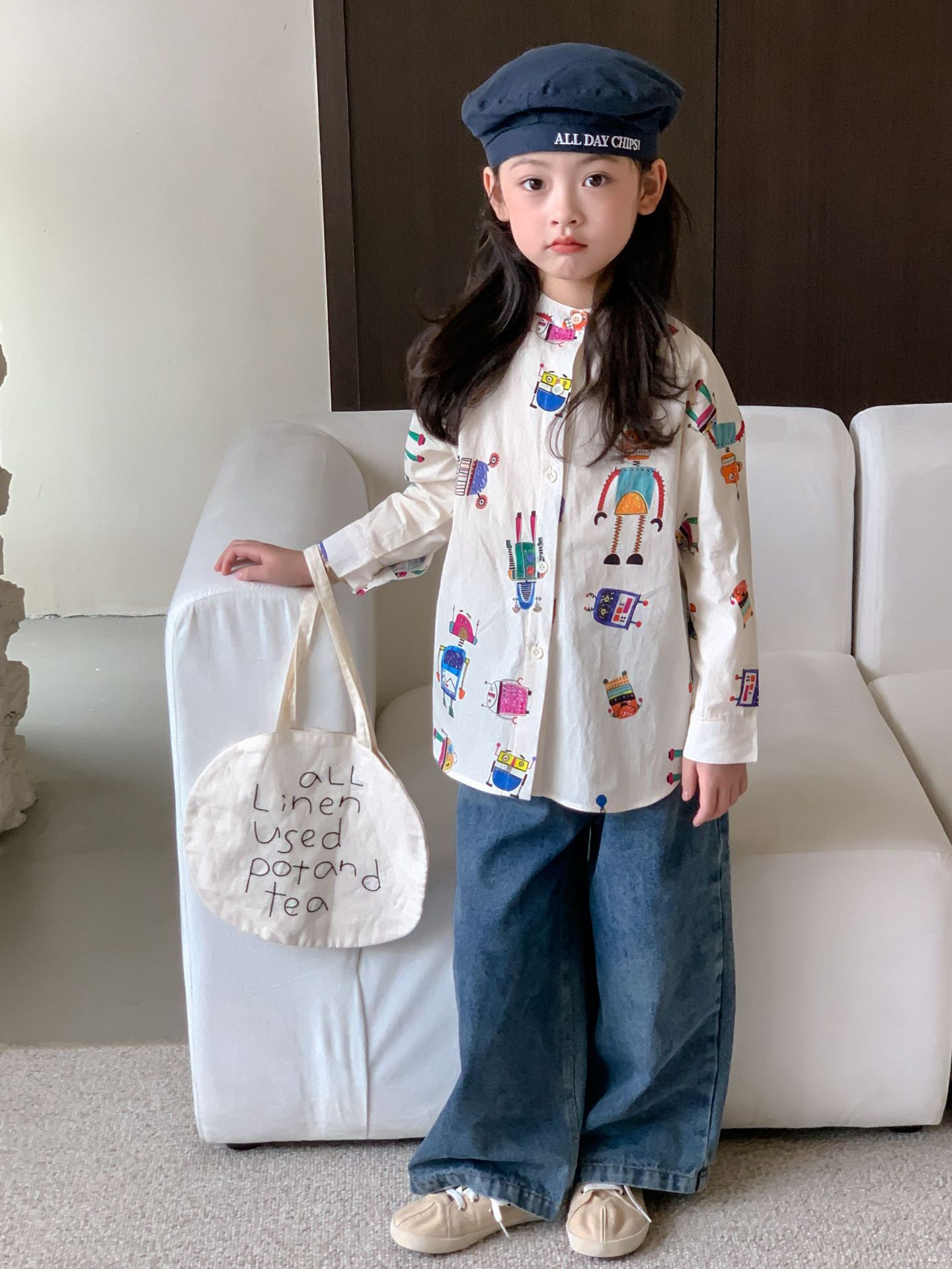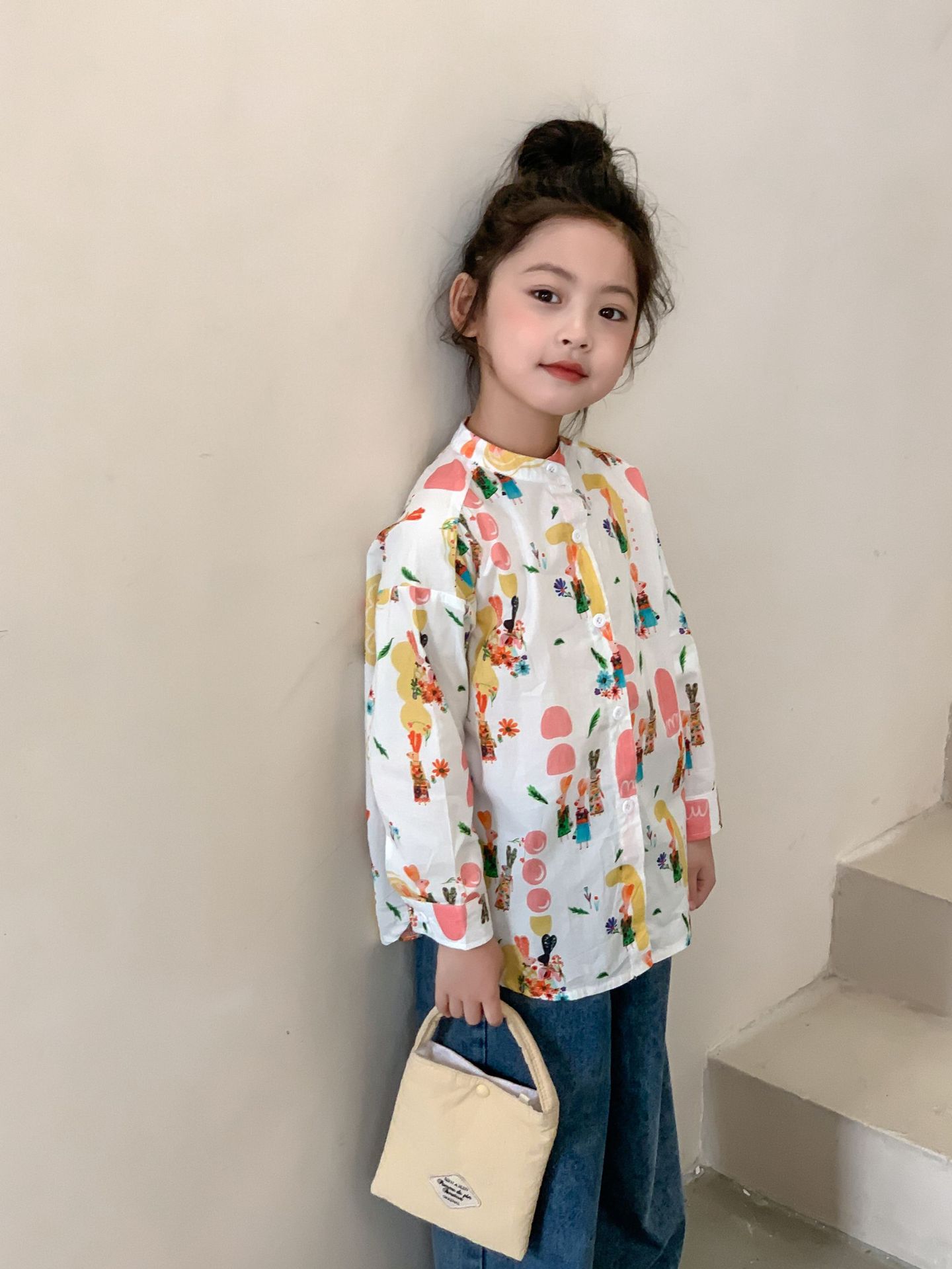 Camisa de graffiti divertida para niños collar de pie para Niñas Ropa para niños 2024 primavera bebé niña de dibujos animados impresa camisa de manga larga ropa de diseño