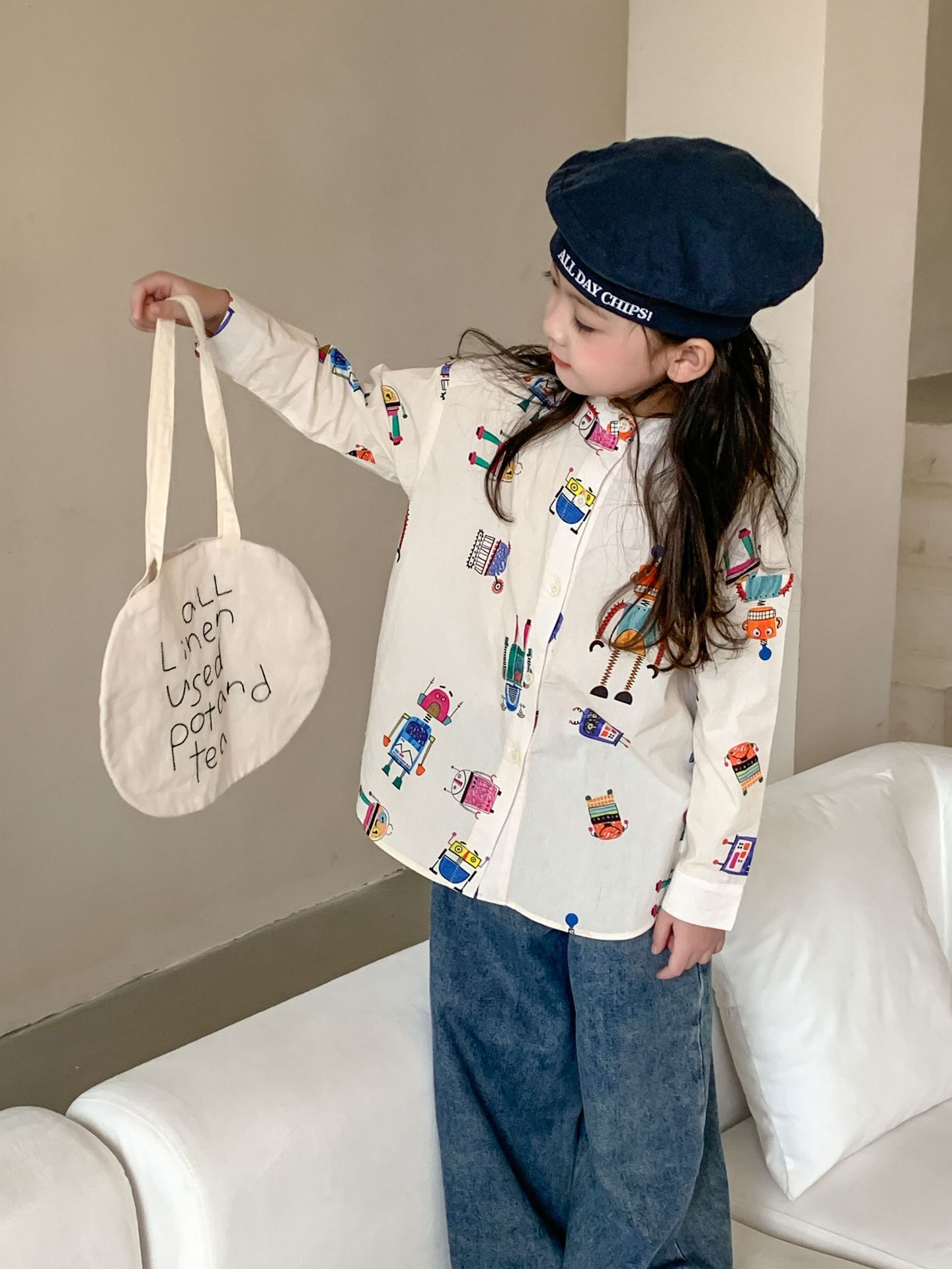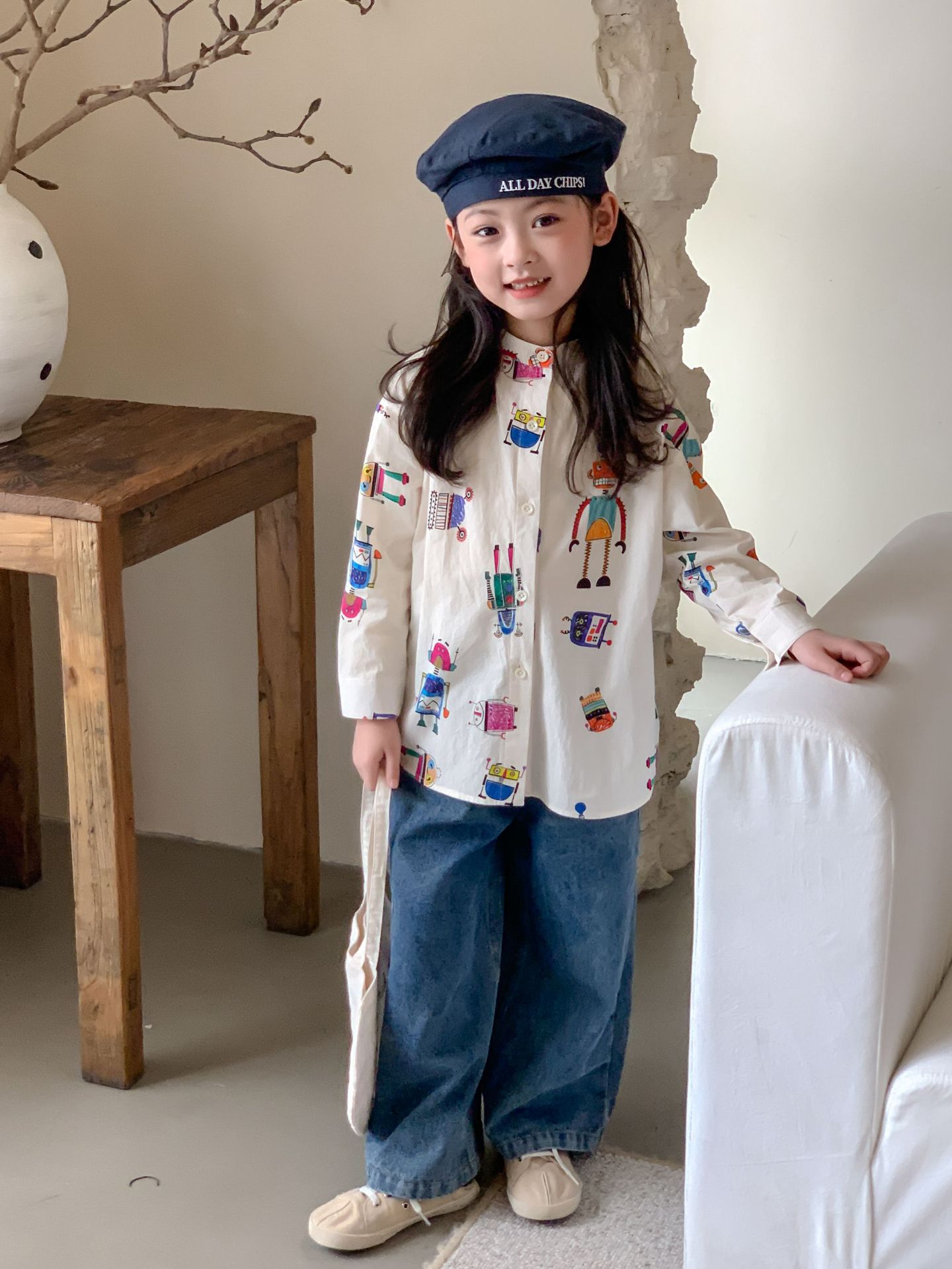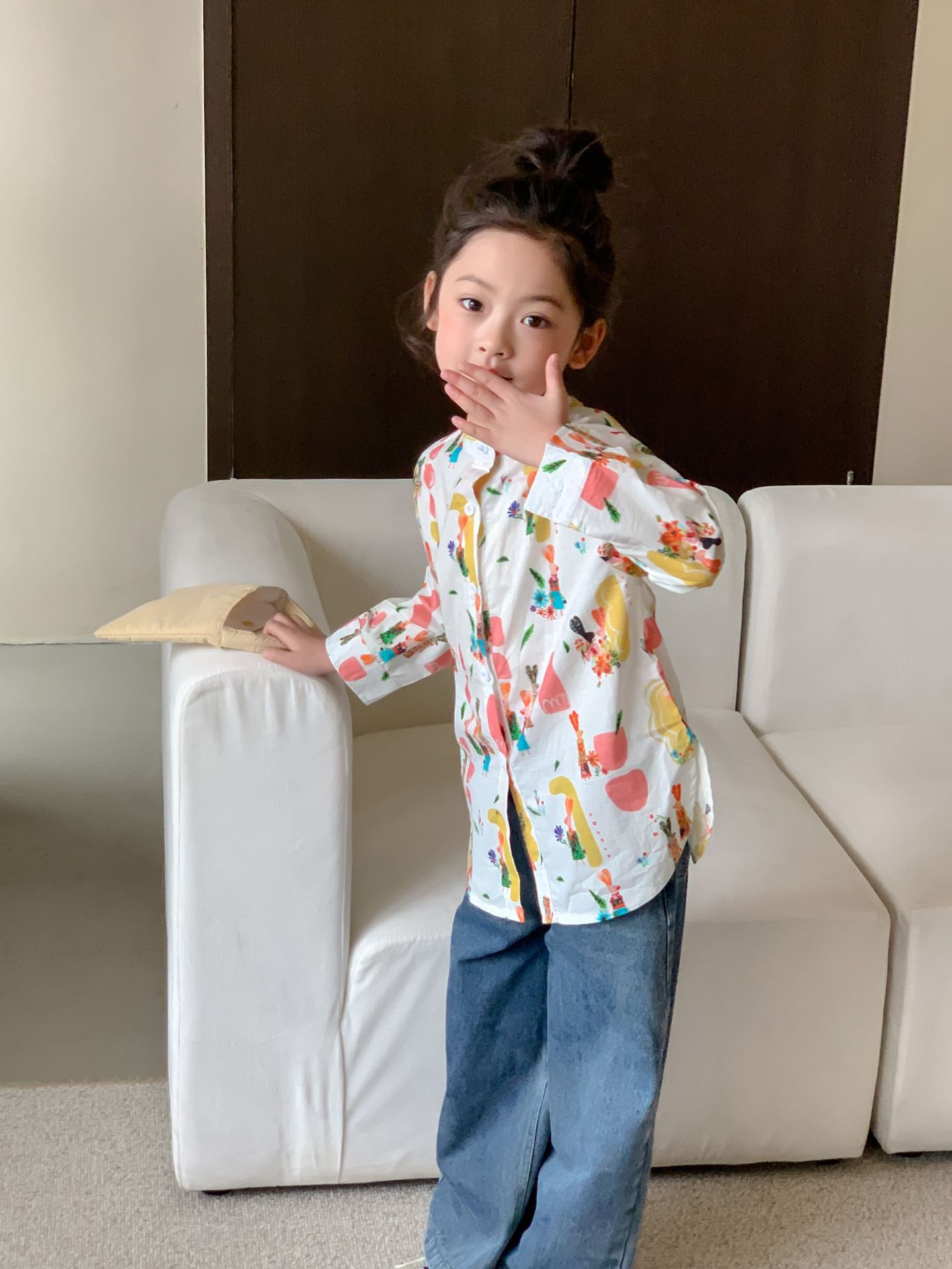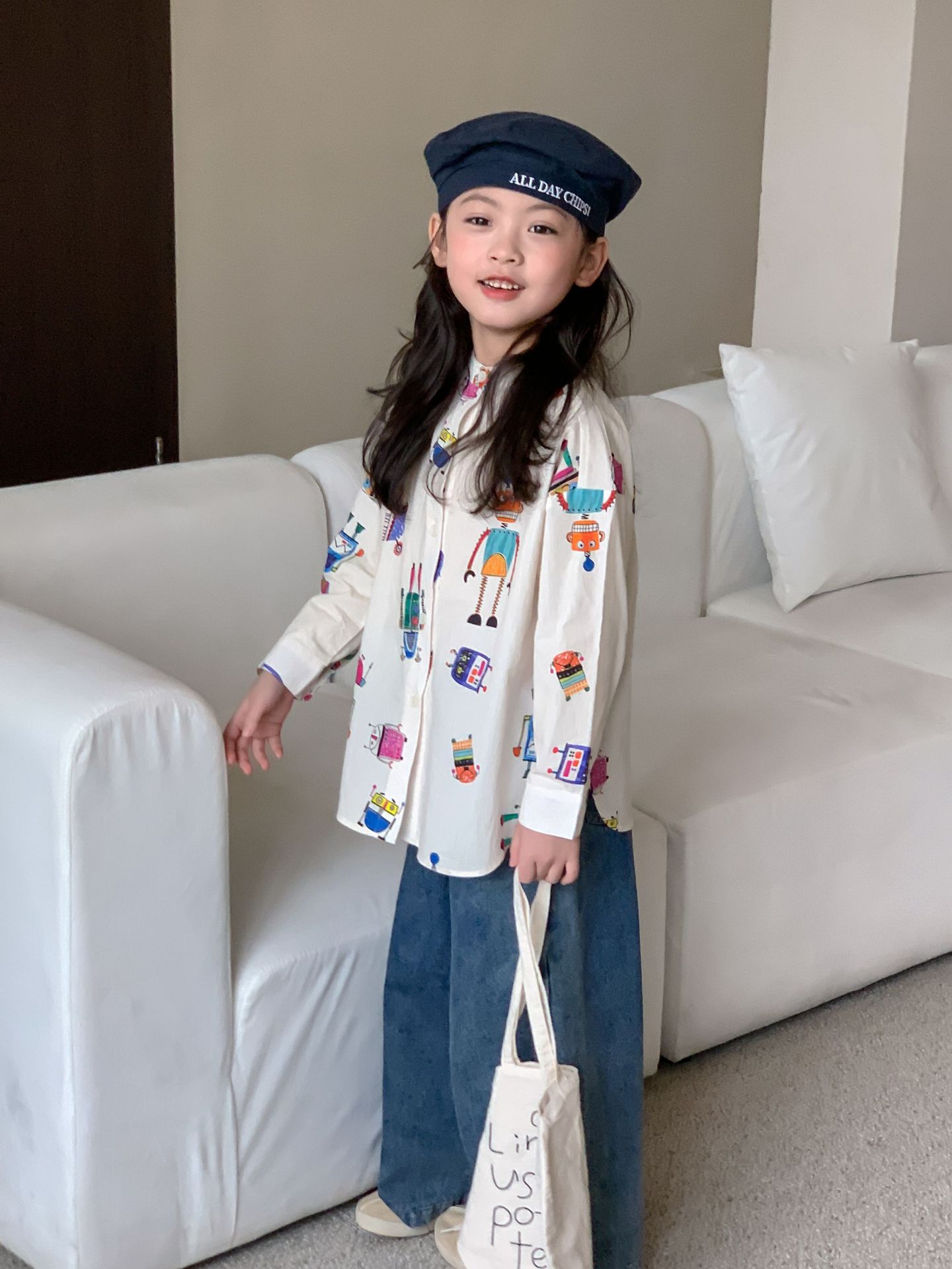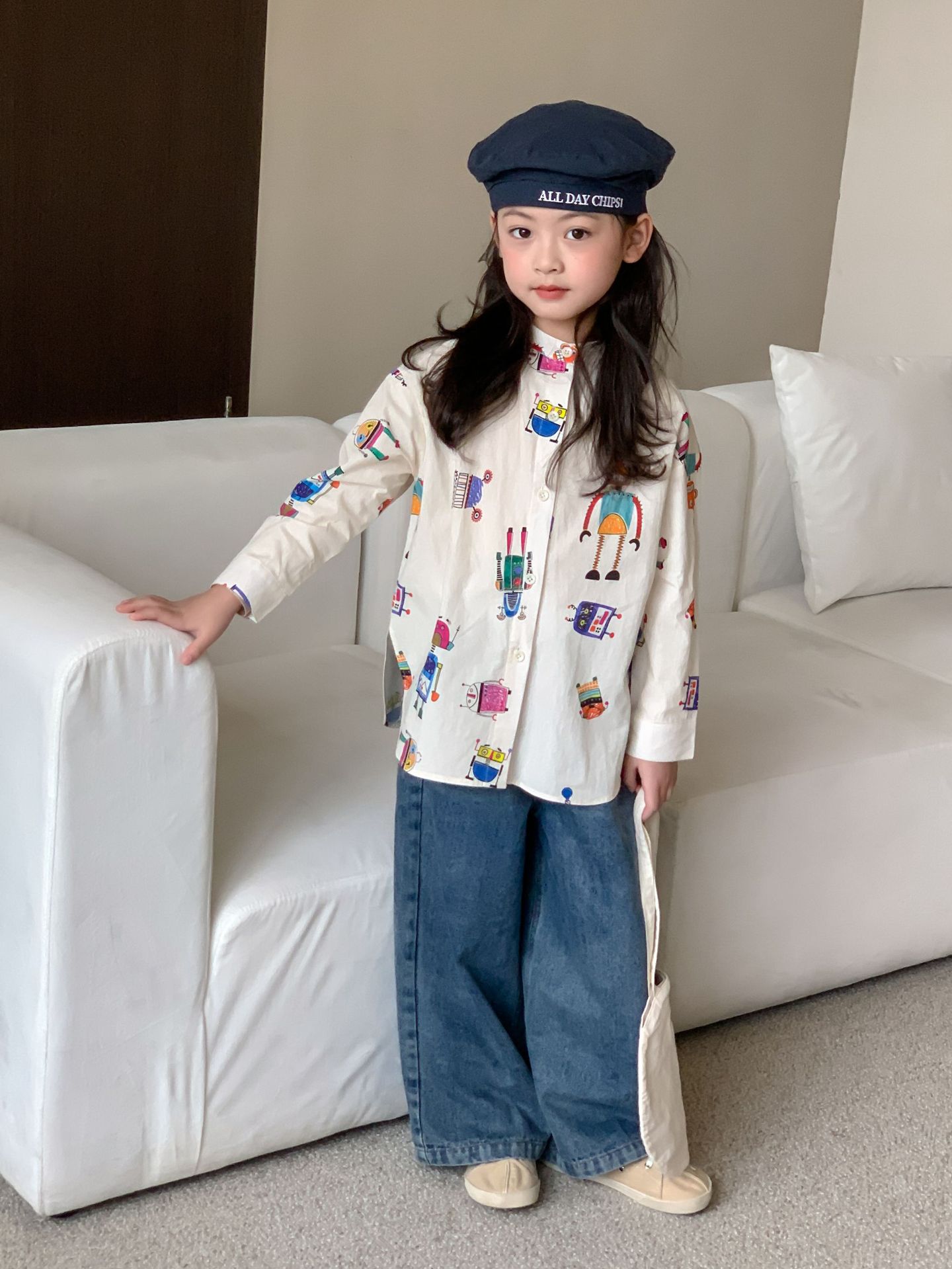 Camisa de graffiti divertida para niños collar de pie para Niñas Ropa para niños 2024 primavera bebé niña de dibujos animados impresa camisa de manga larga ropa de diseño