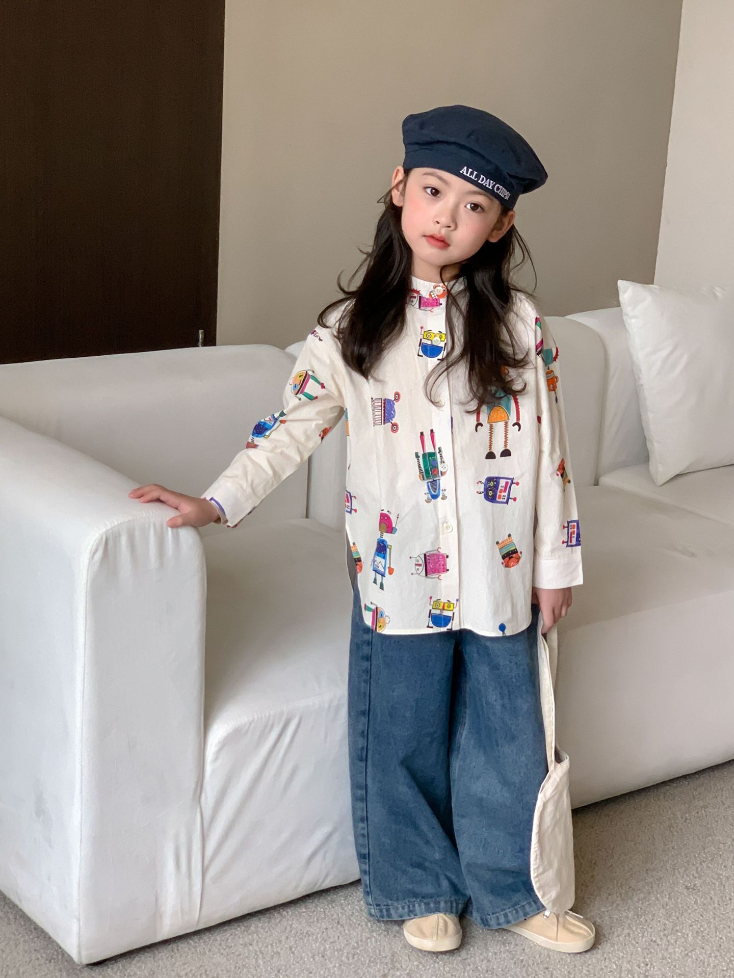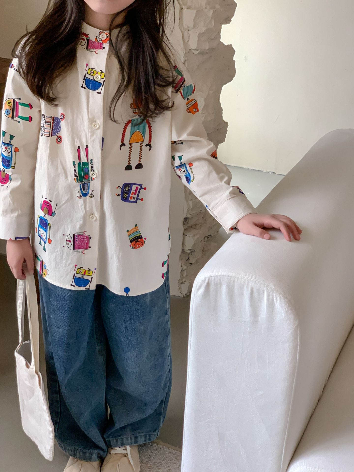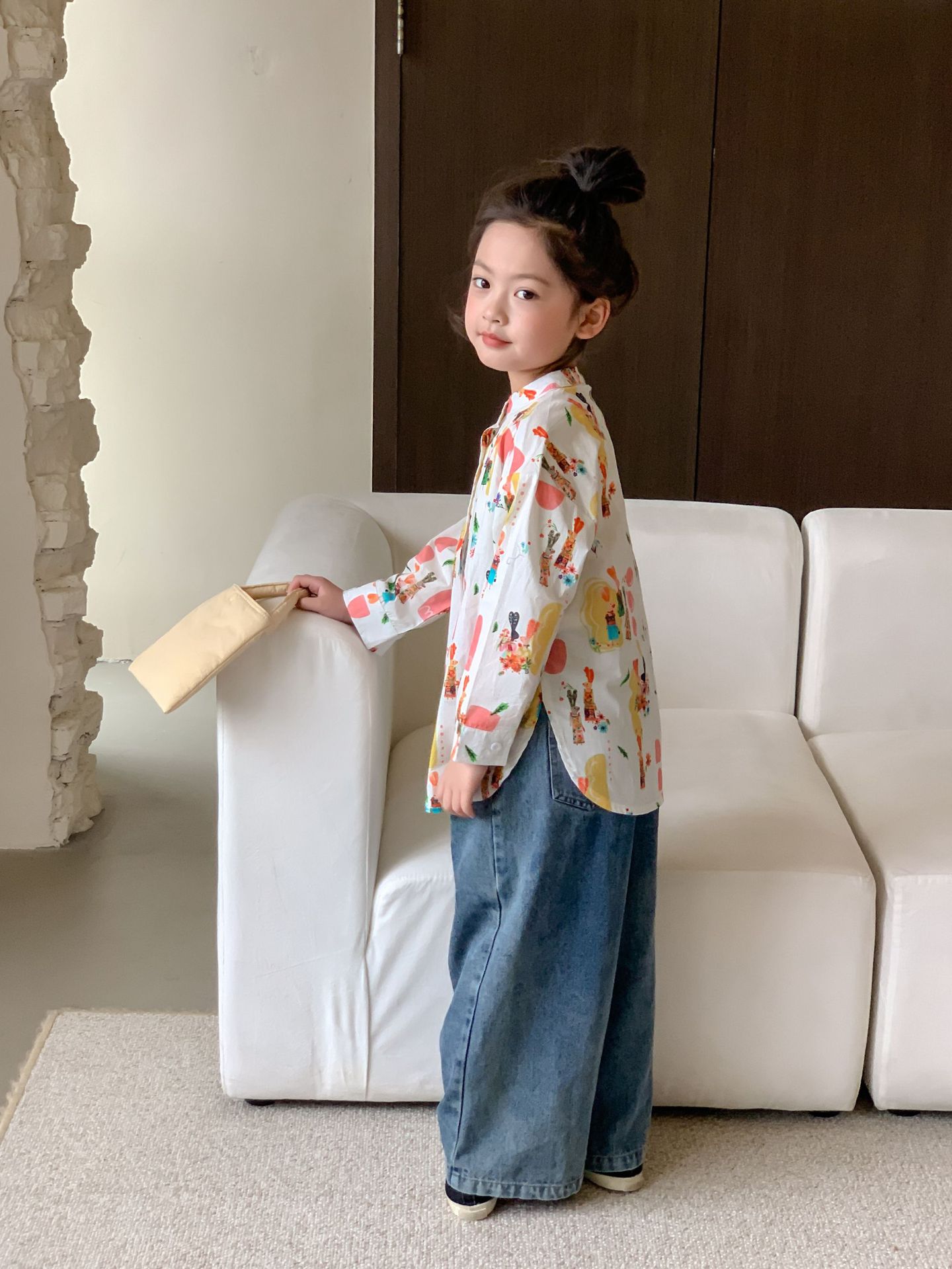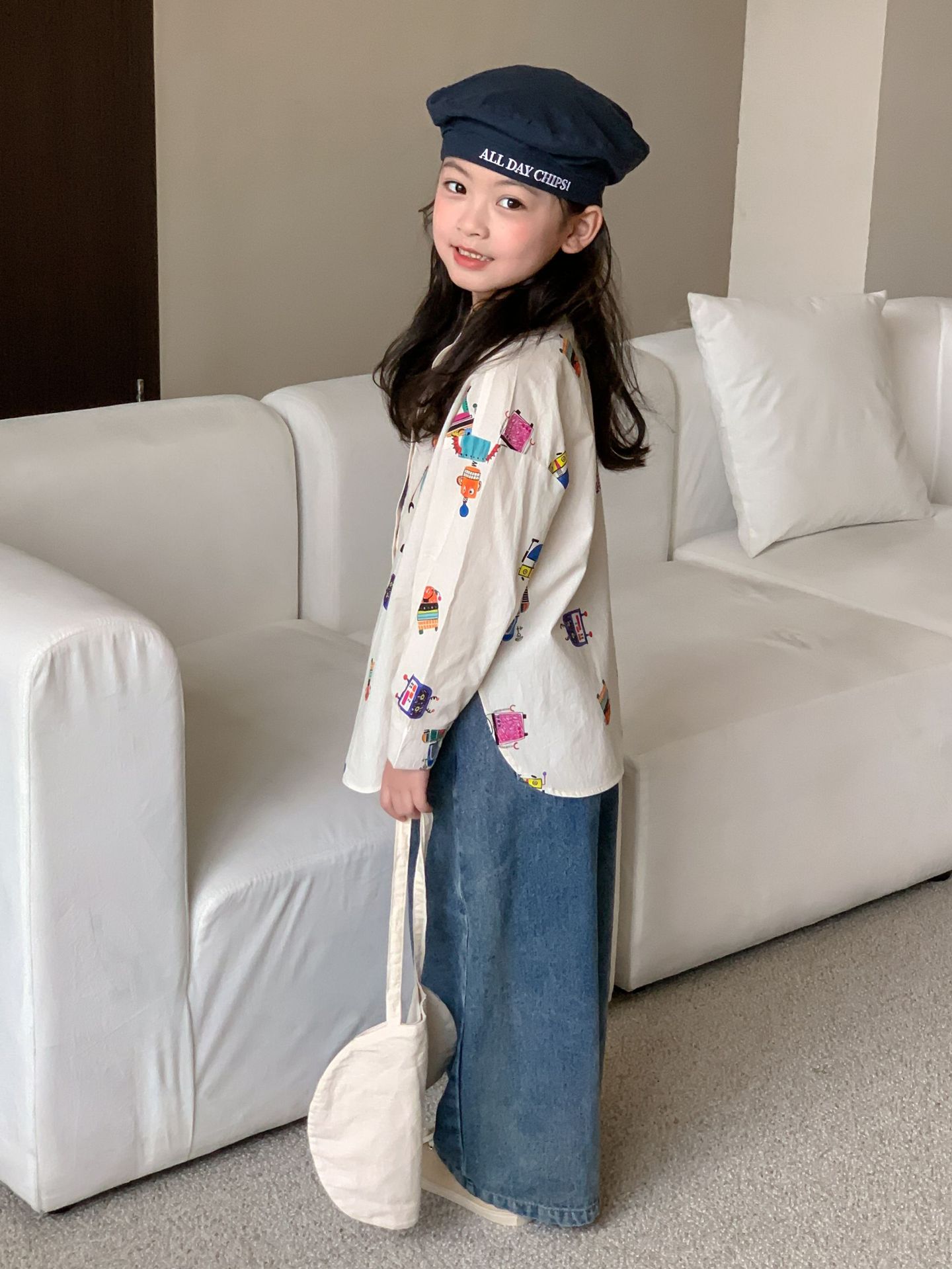 Camisa de graffiti divertida para niños collar de pie para Niñas Ropa para niños 2024 primavera bebé niña de dibujos animados impresa camisa de manga larga ropa de diseño