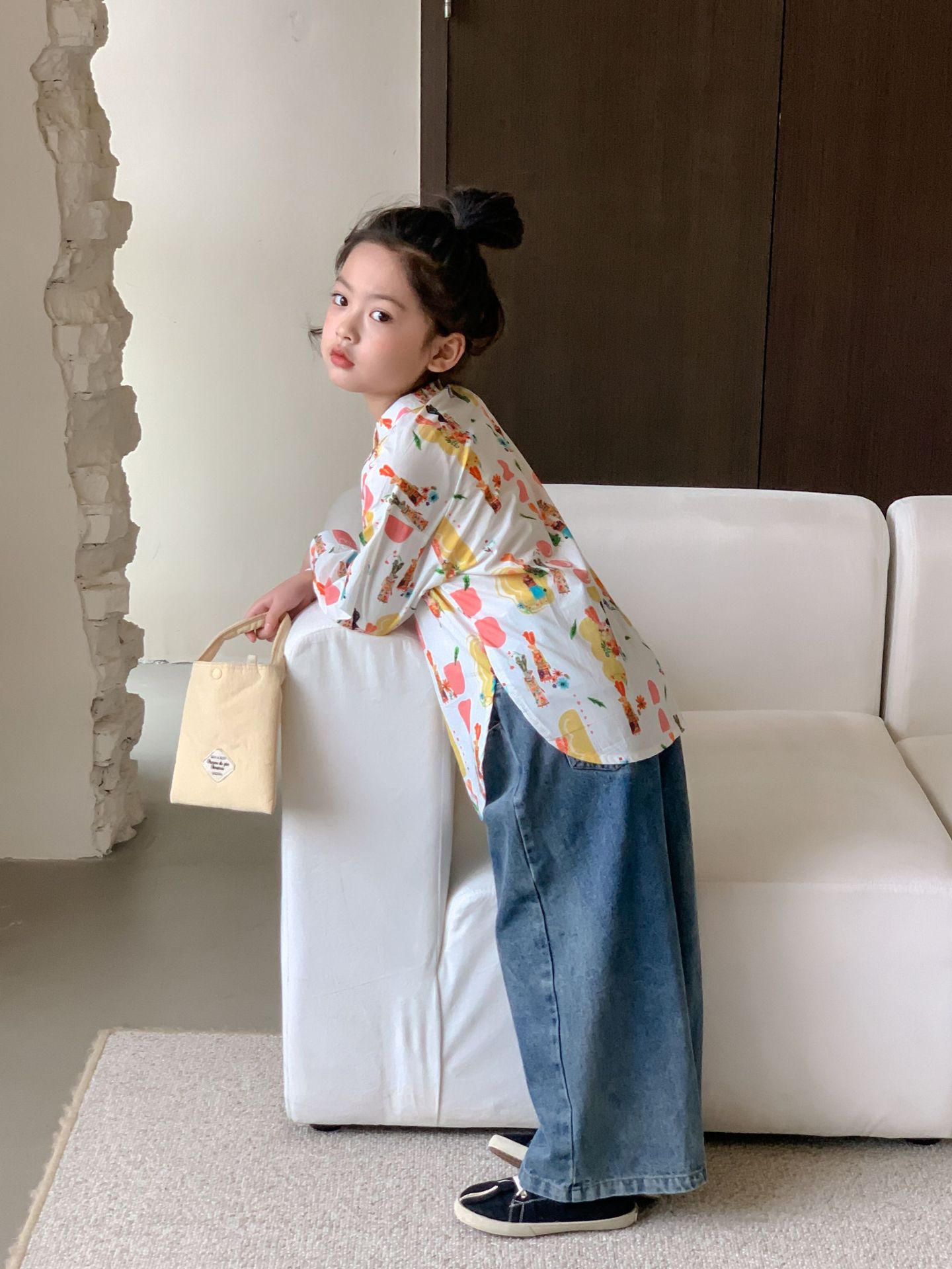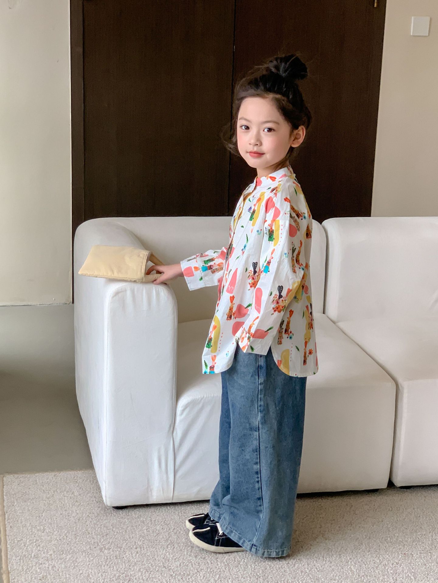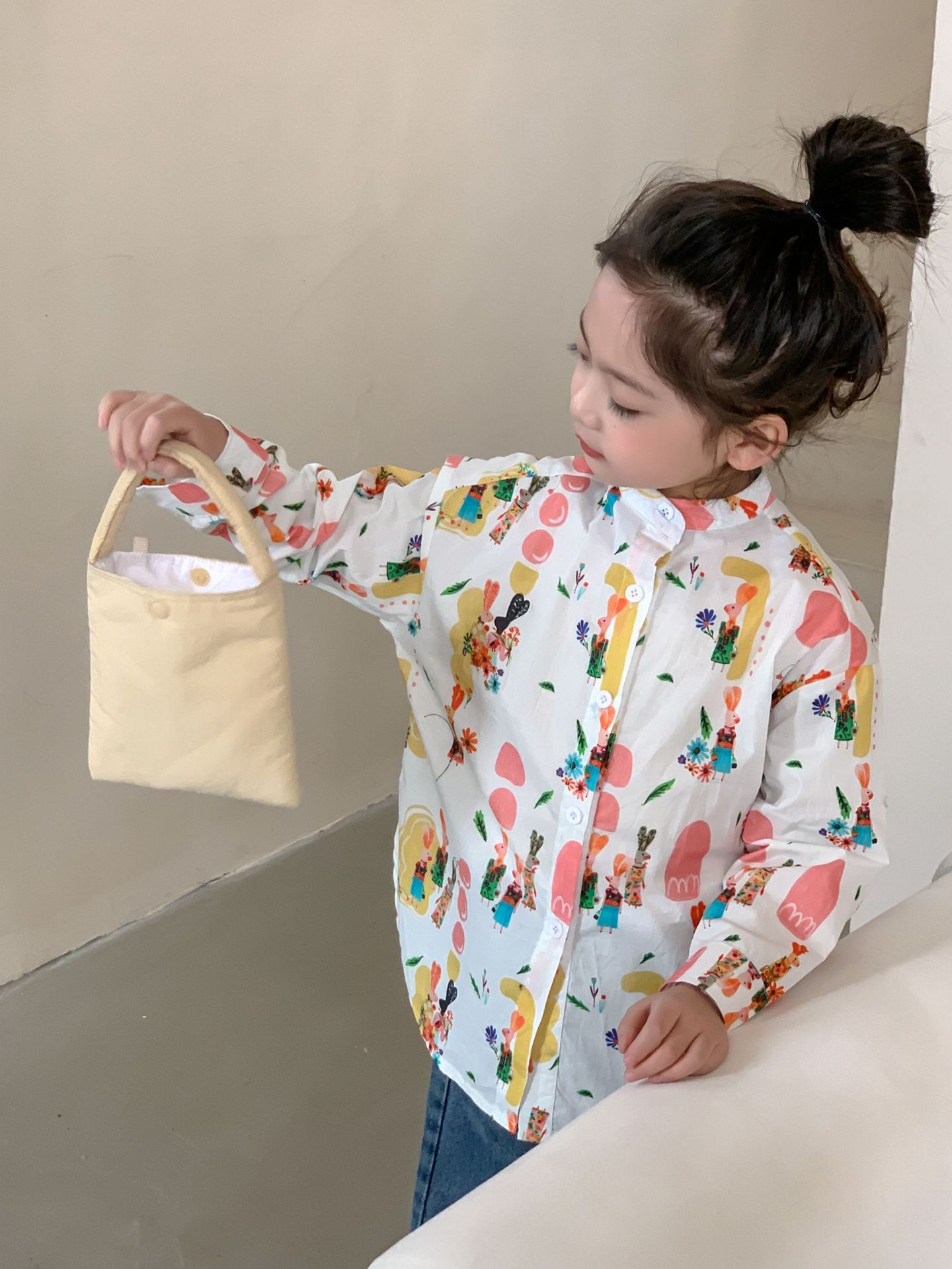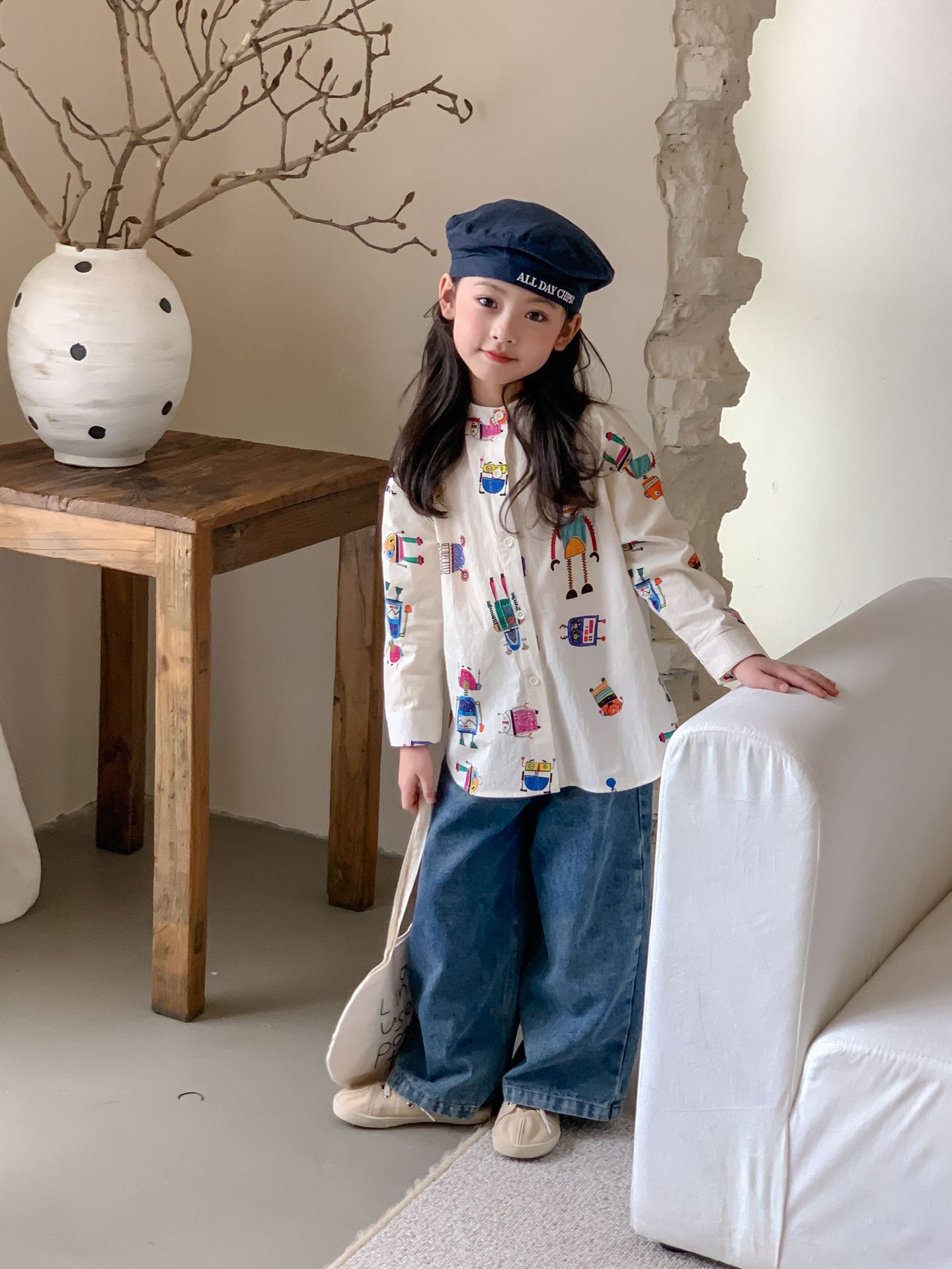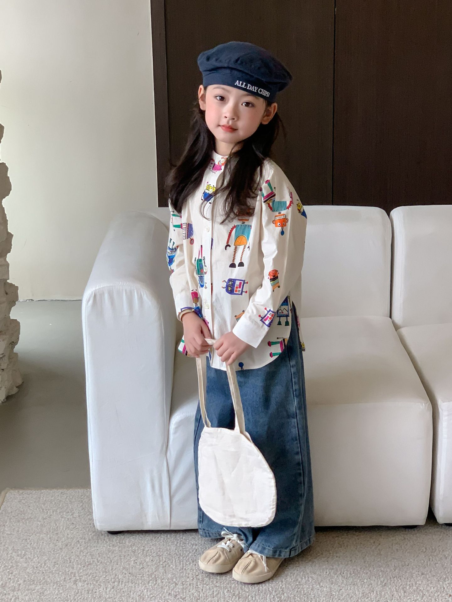 Camisa de graffiti divertida para niños collar de pie para Niñas Ropa para niños 2024 primavera bebé niña de dibujos animados impresa camisa de manga larga ropa de diseño