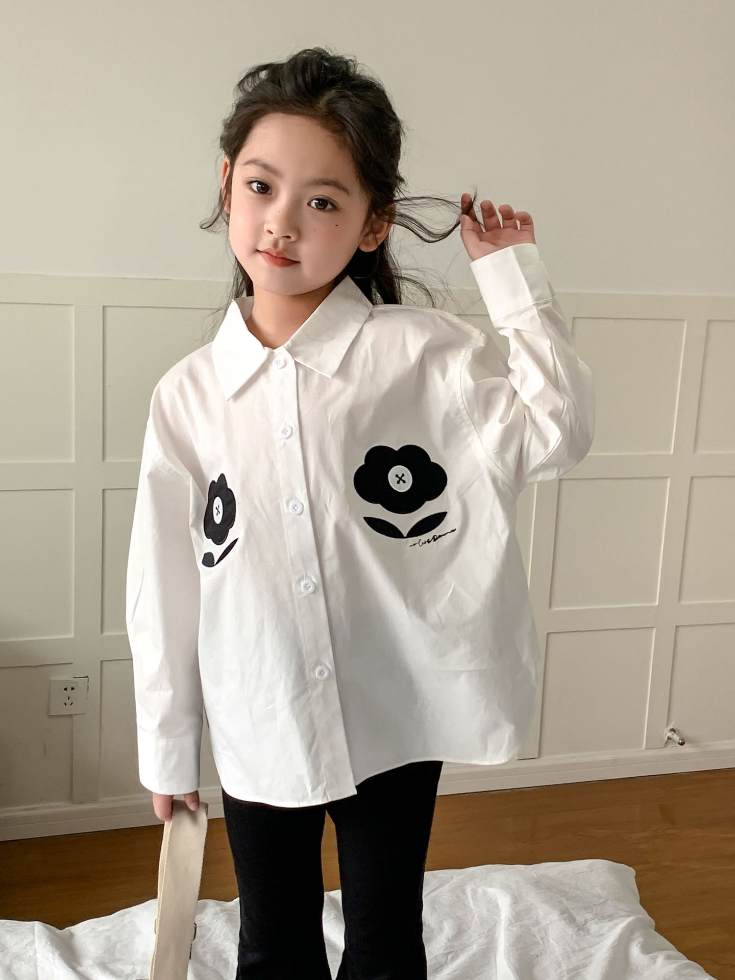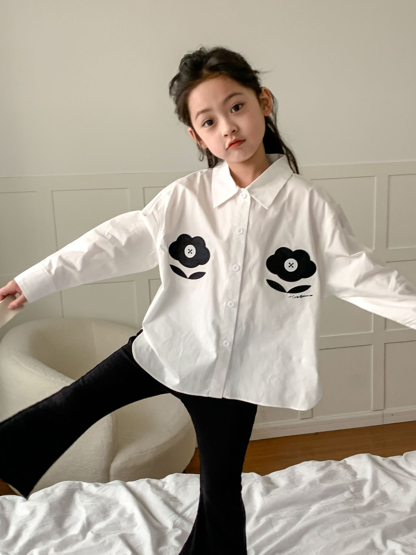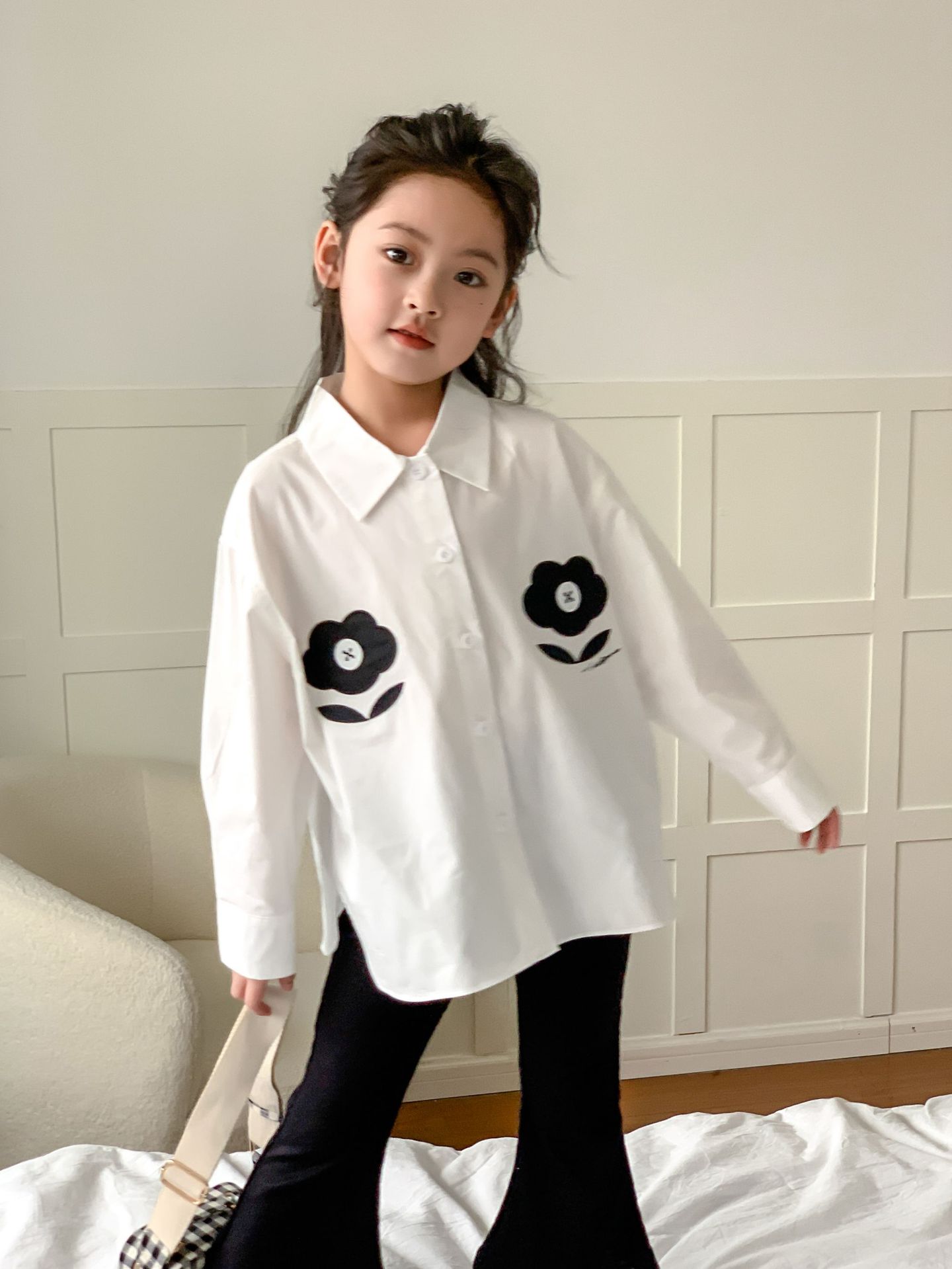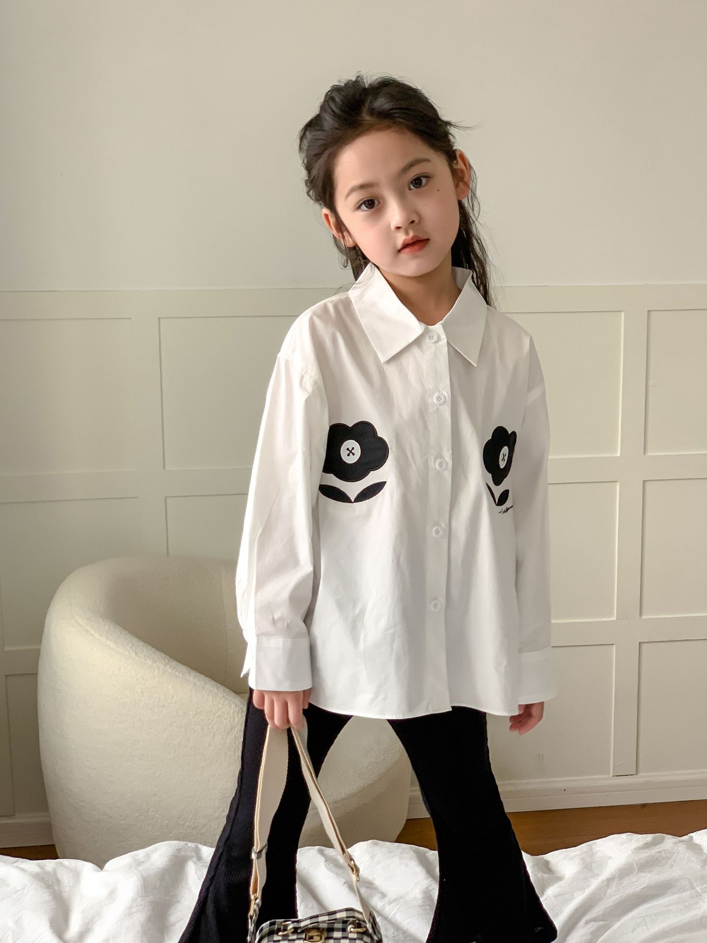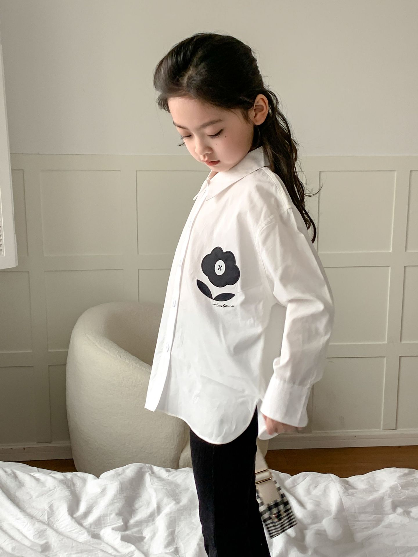 Camisa para niños 2024 primavera estilo coreano ropa para niños camisa de manga larga con bordado de flores para niñas camisa de media longitud para bebés para niños medianos y grandes