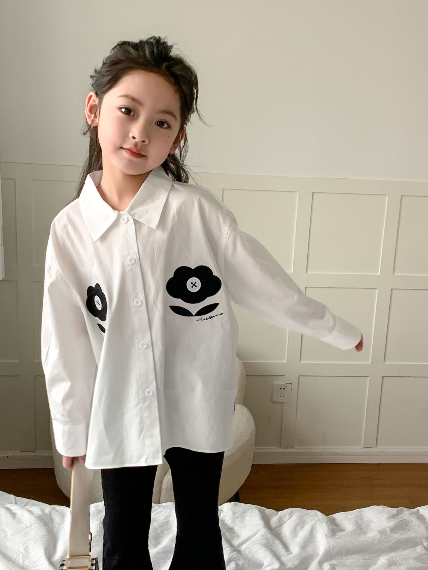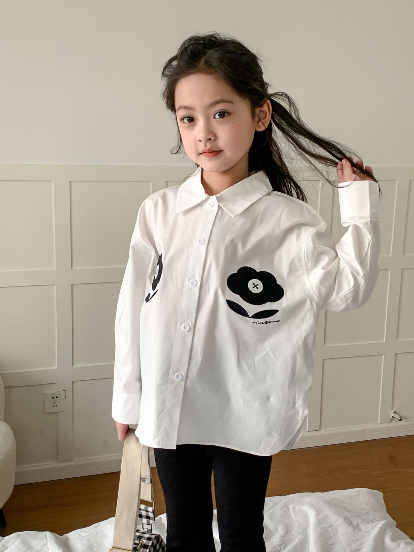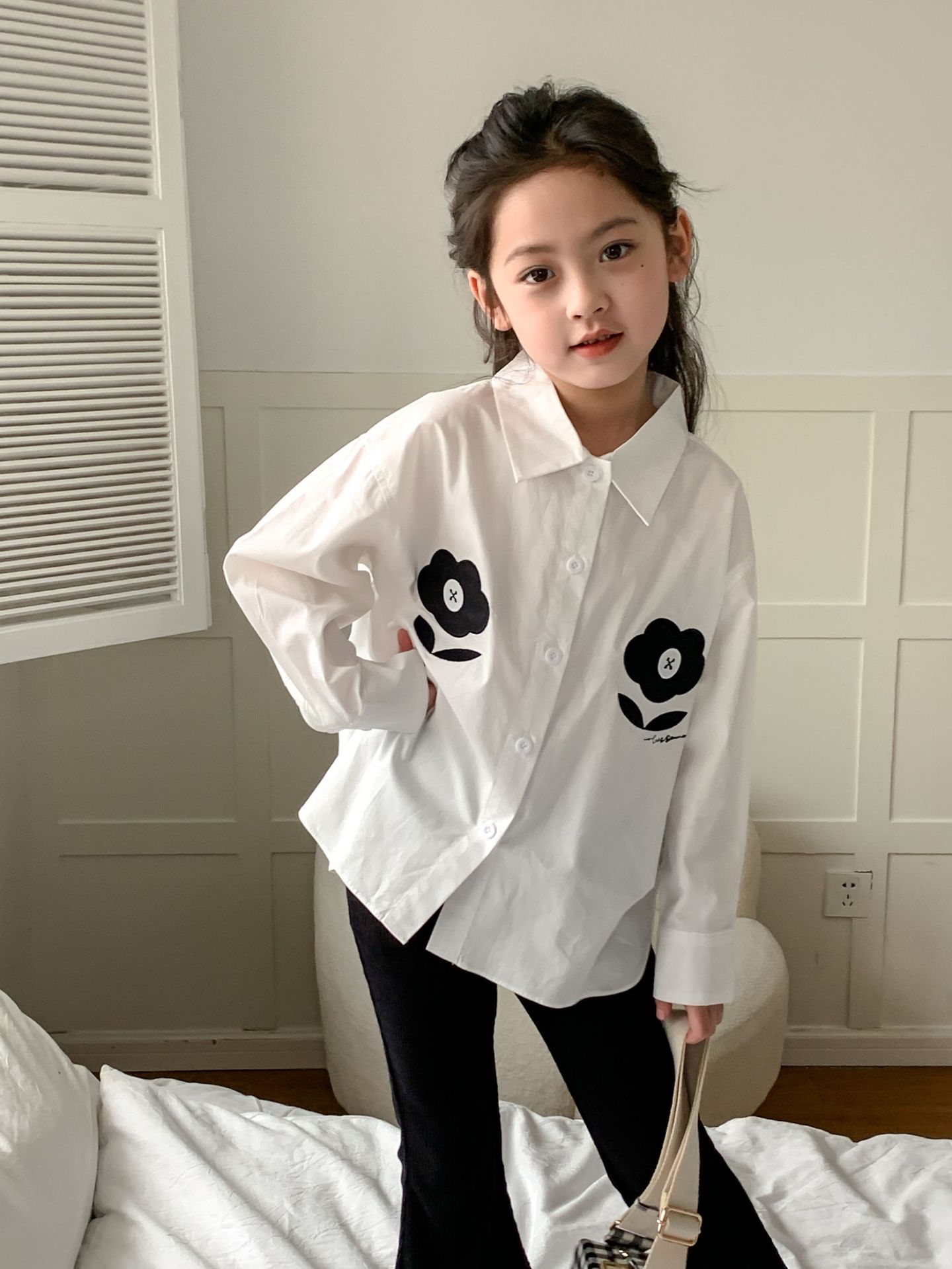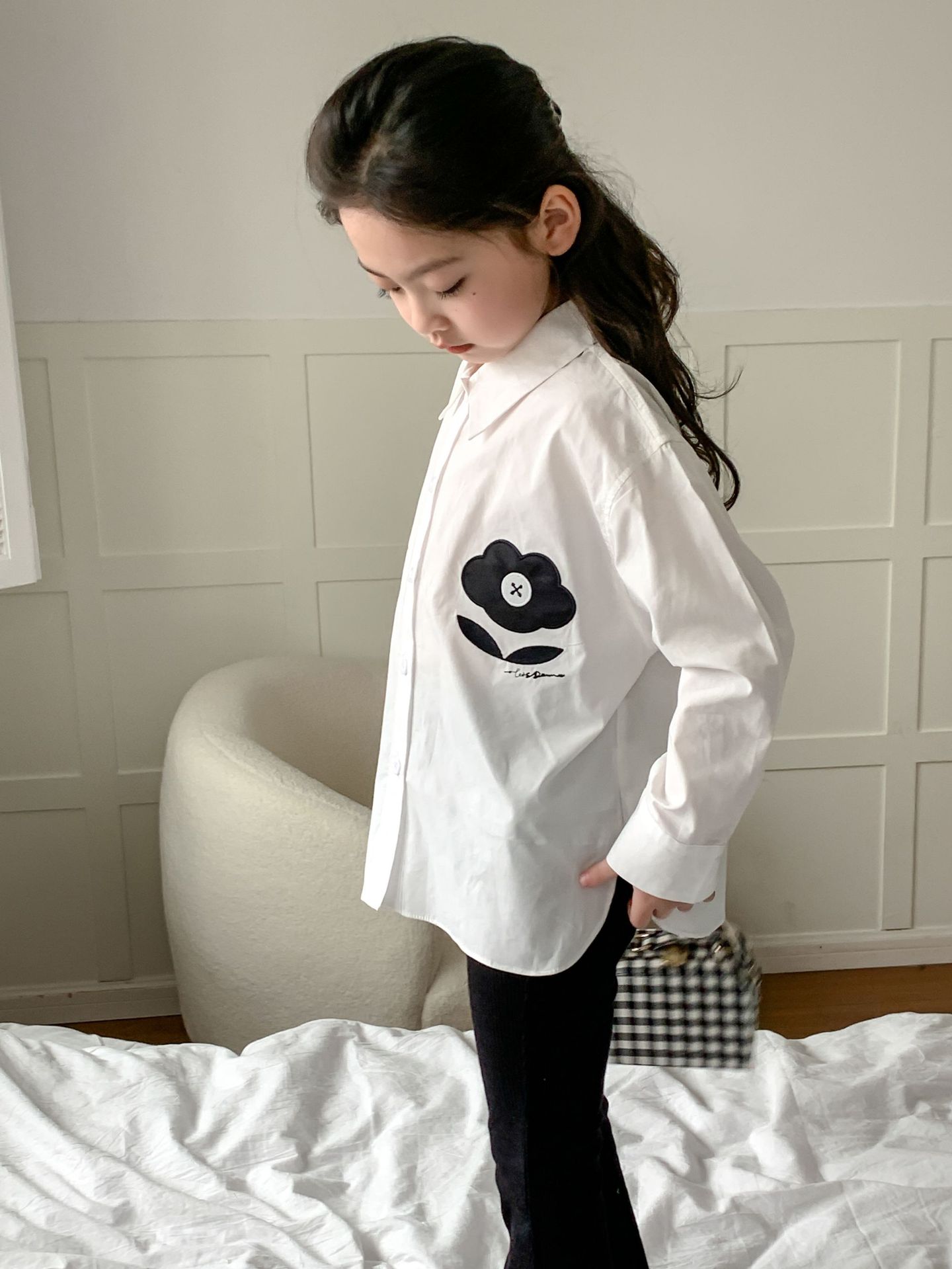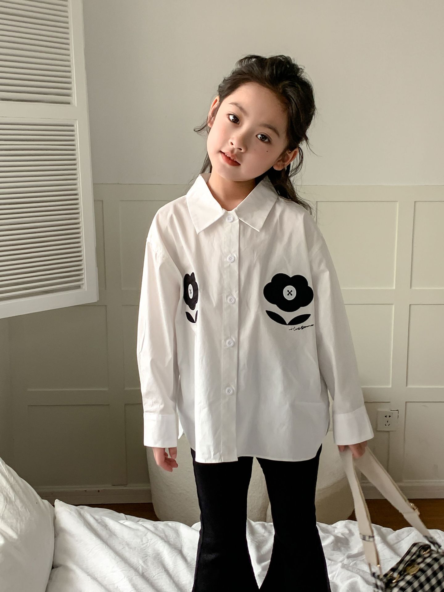 Camisa para niños 2024 primavera estilo coreano ropa para niños camisa de manga larga con bordado de flores para niñas camisa de media longitud para bebés para niños medianos y grandes