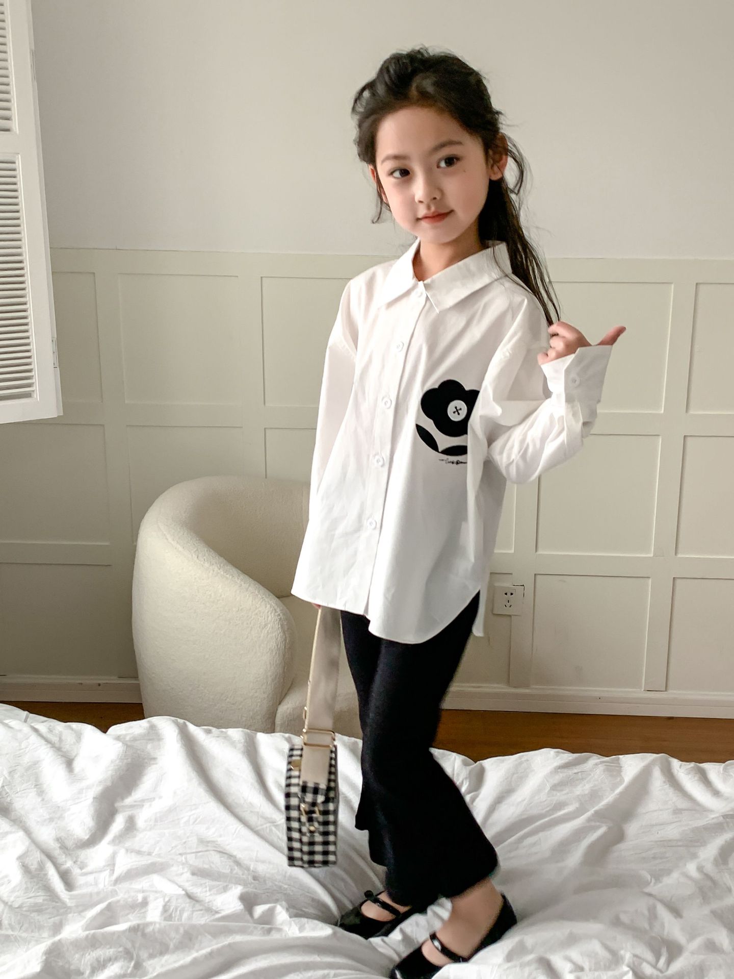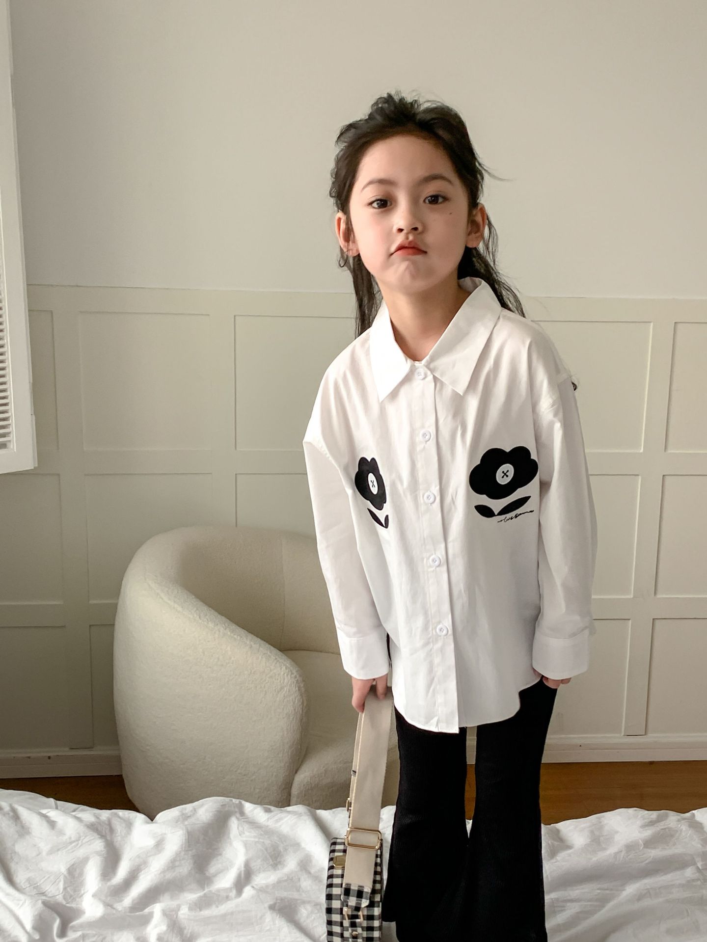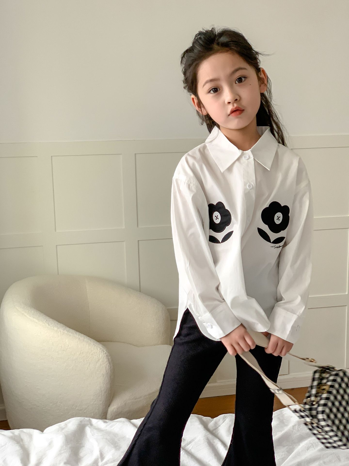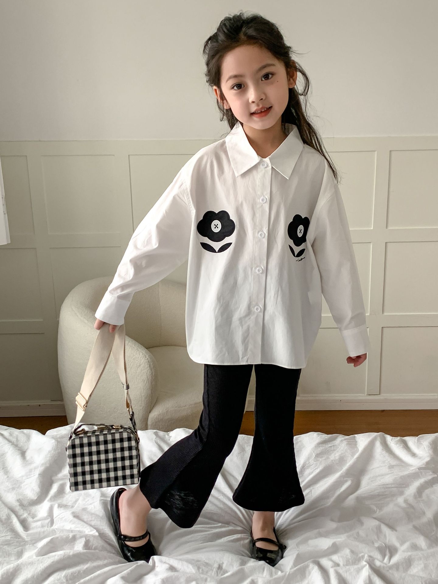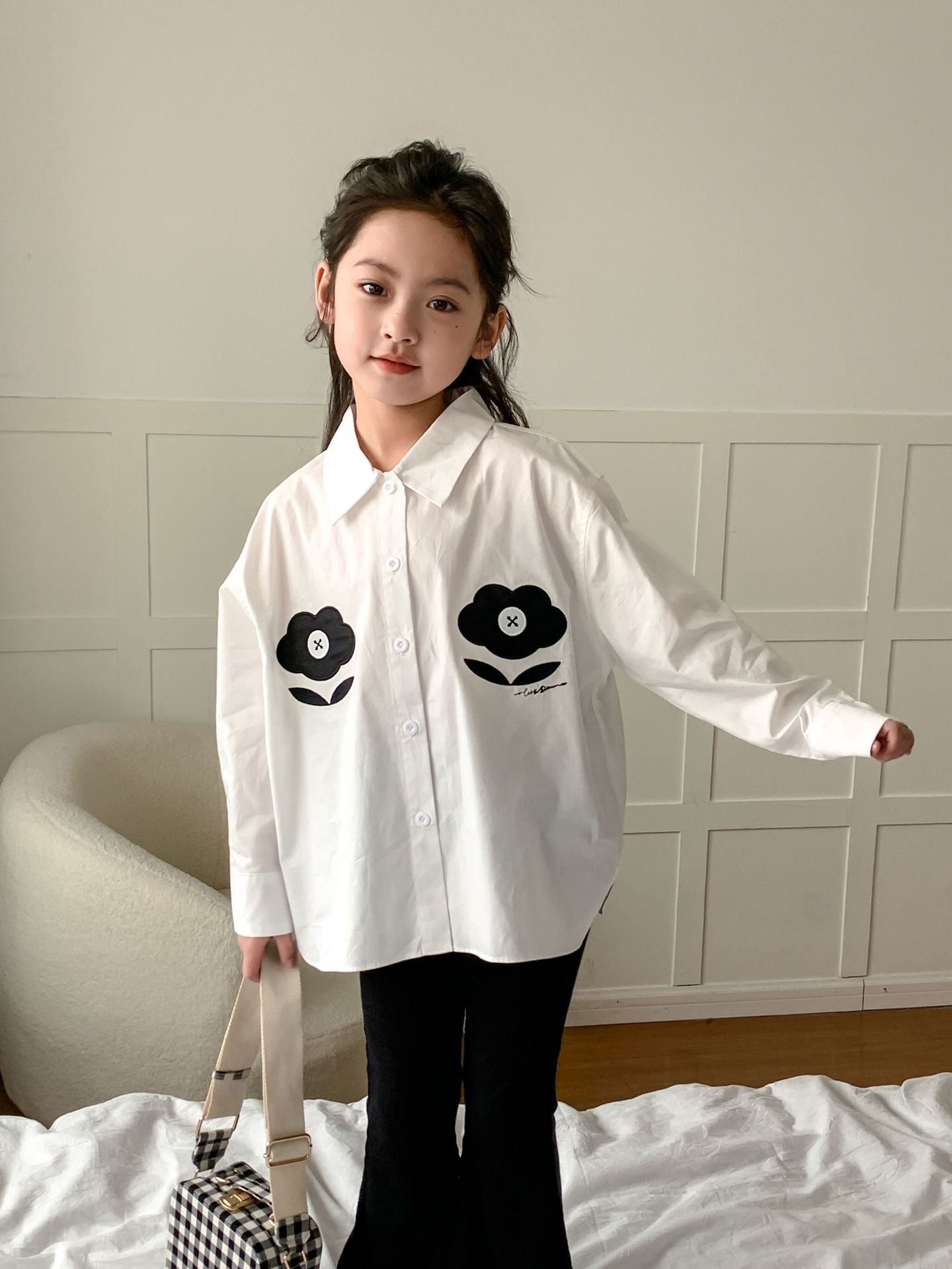 Camisa para niños 2024 primavera estilo coreano ropa para niños camisa de manga larga con bordado de flores para niñas camisa de media longitud para bebés para niños medianos y grandes