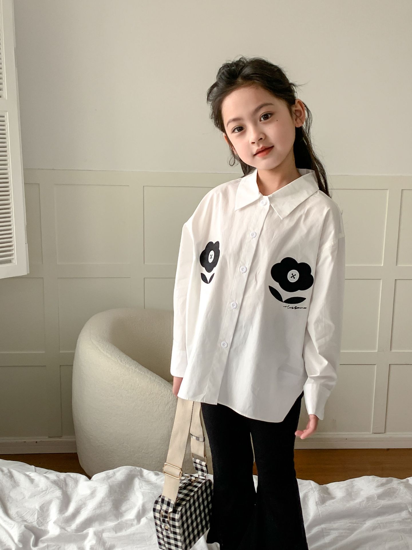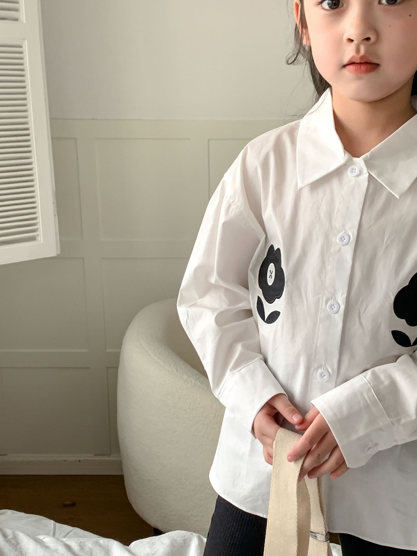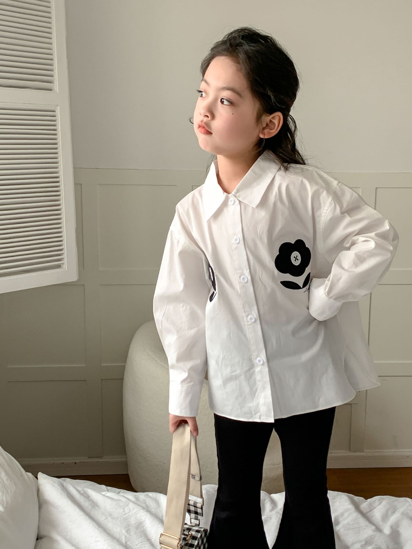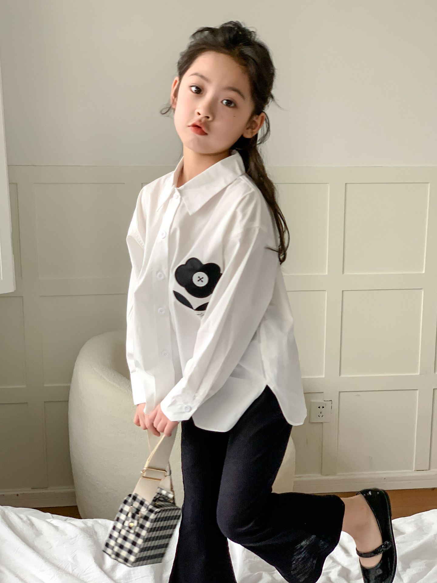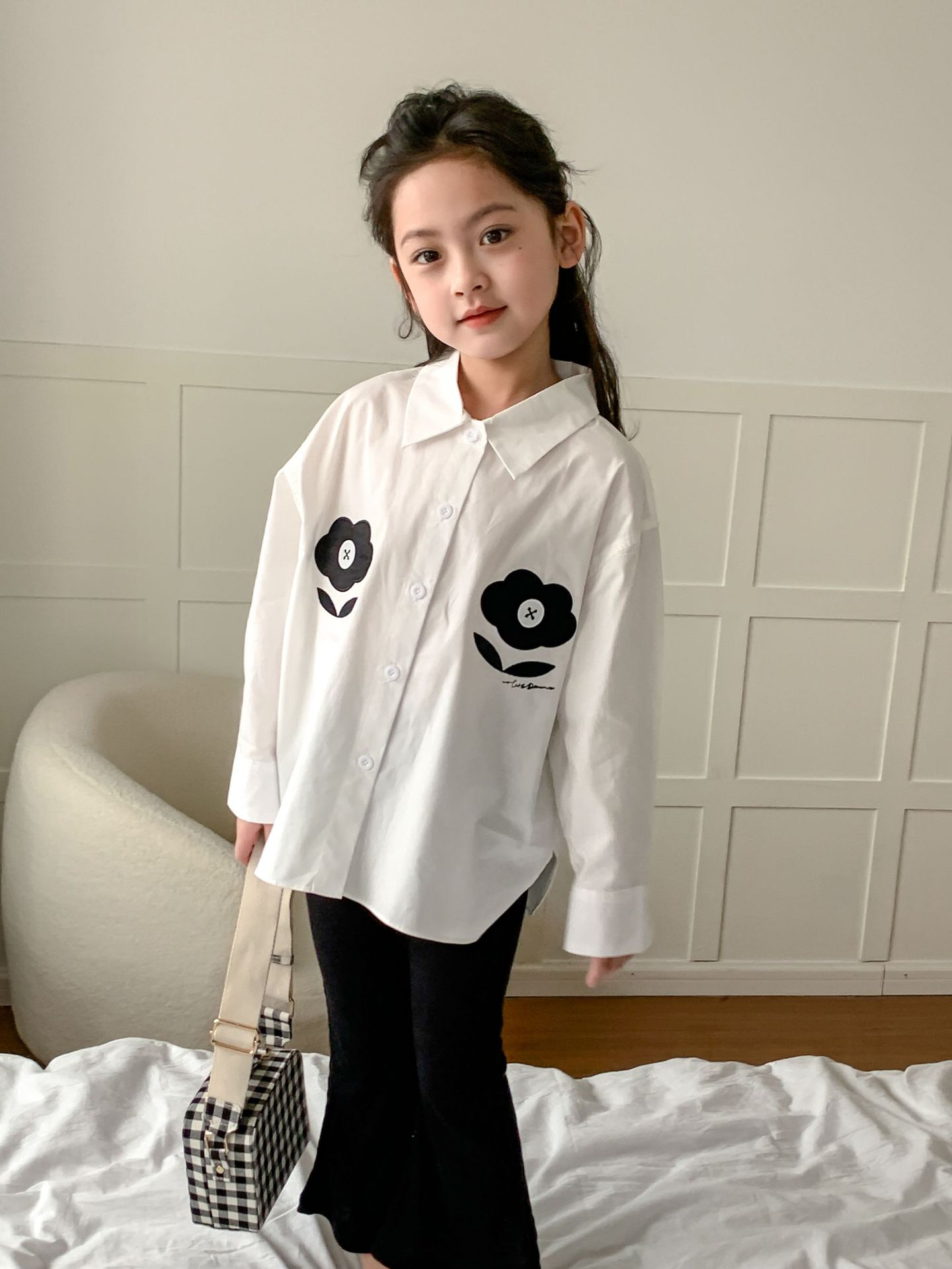 Camisa para niños 2024 primavera estilo coreano ropa para niños camisa de manga larga con bordado de flores para niñas camisa de media longitud para bebés para niños medianos y grandes