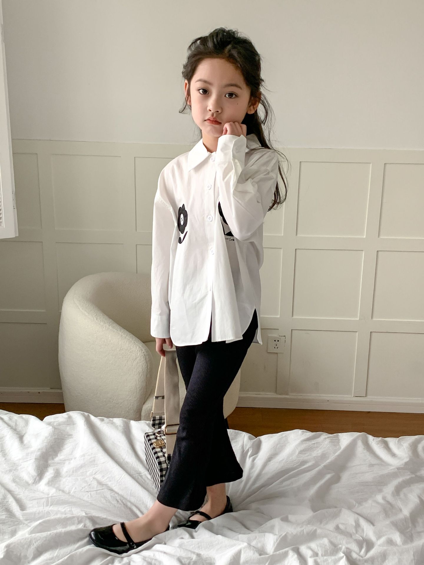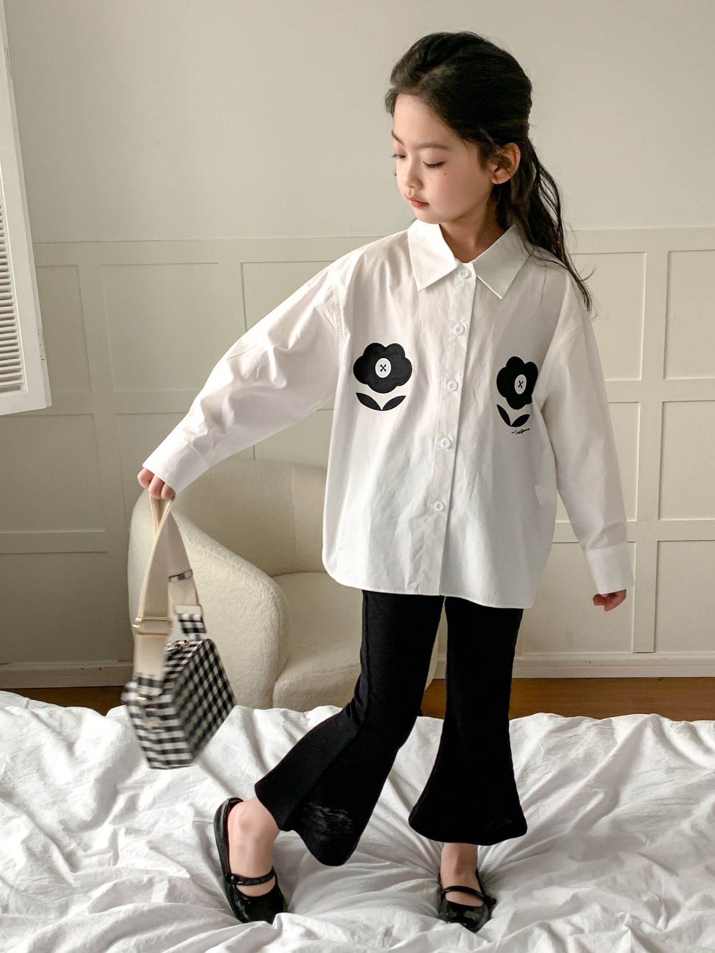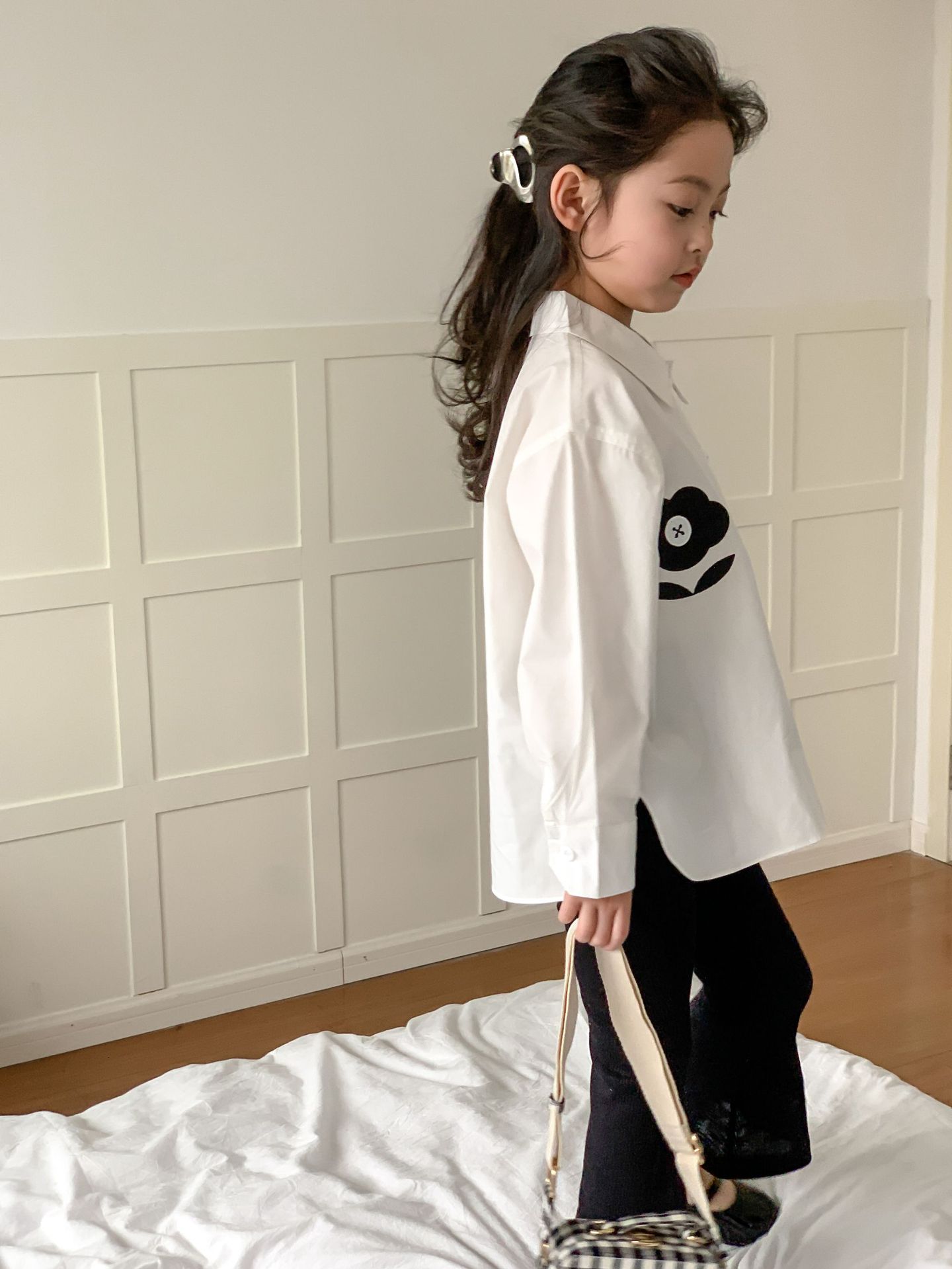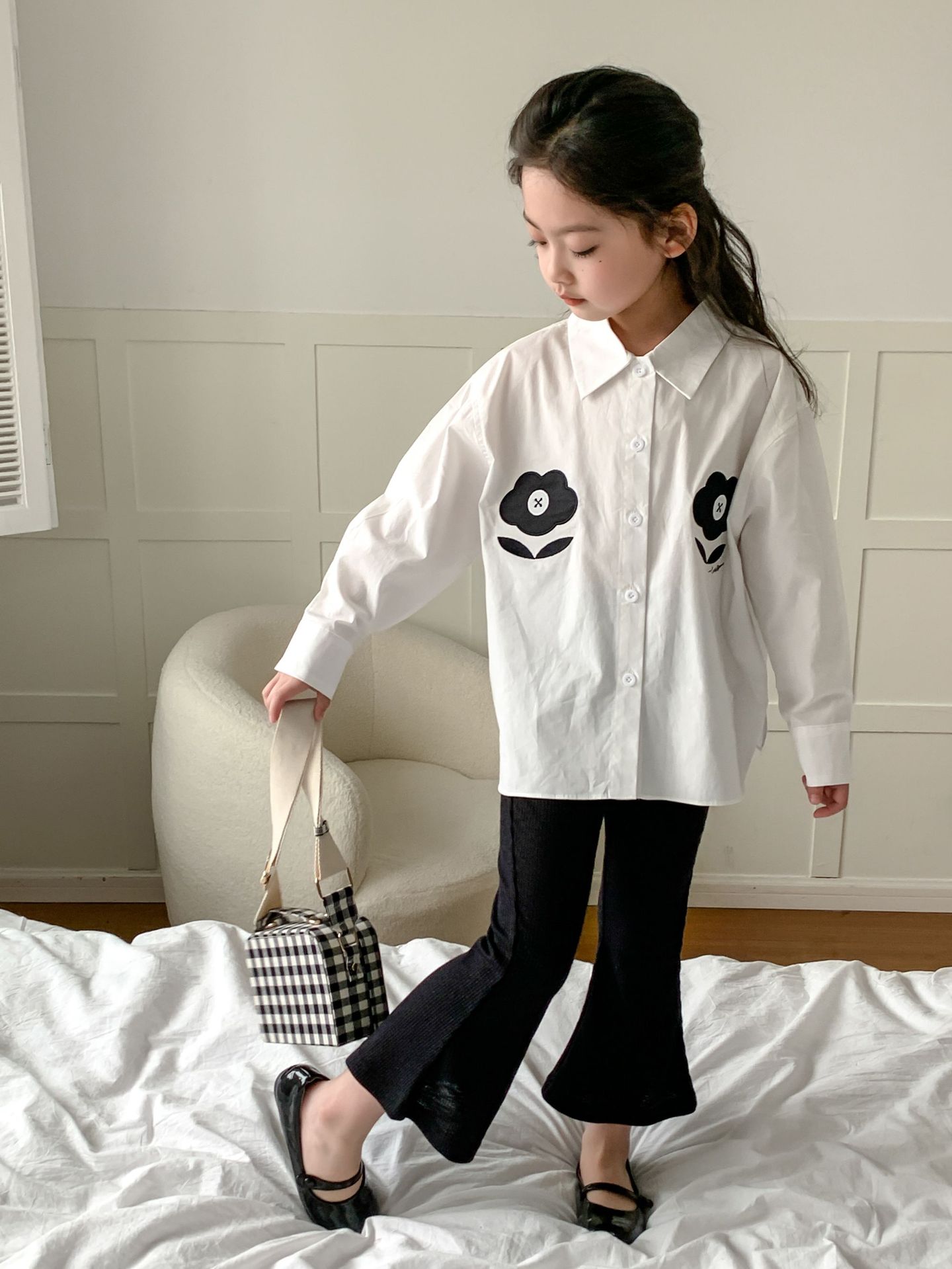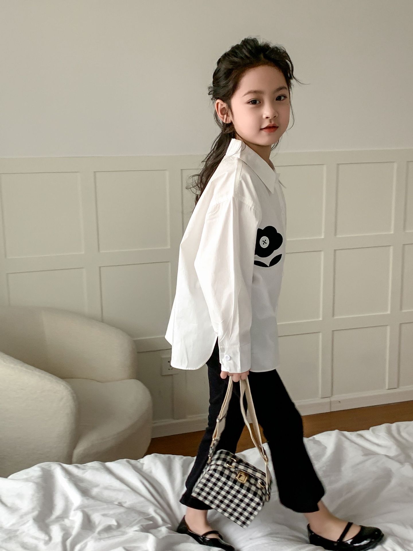 Camisa para niños 2024 primavera estilo coreano ropa para niños camisa de manga larga con bordado de flores para niñas camisa de media longitud para bebés para niños medianos y grandes