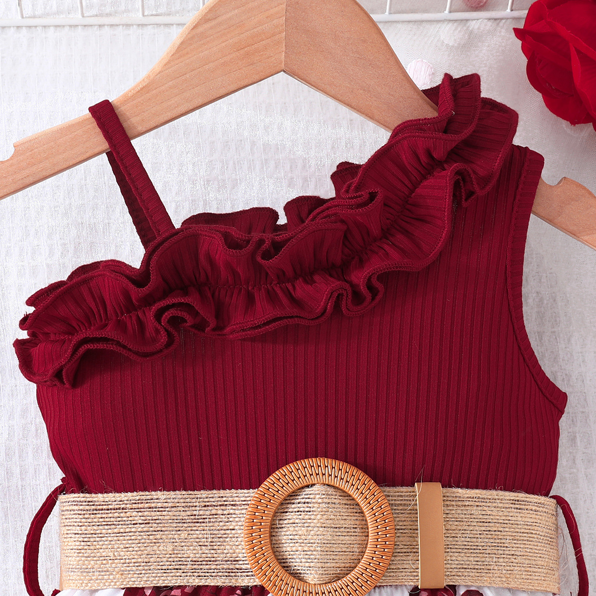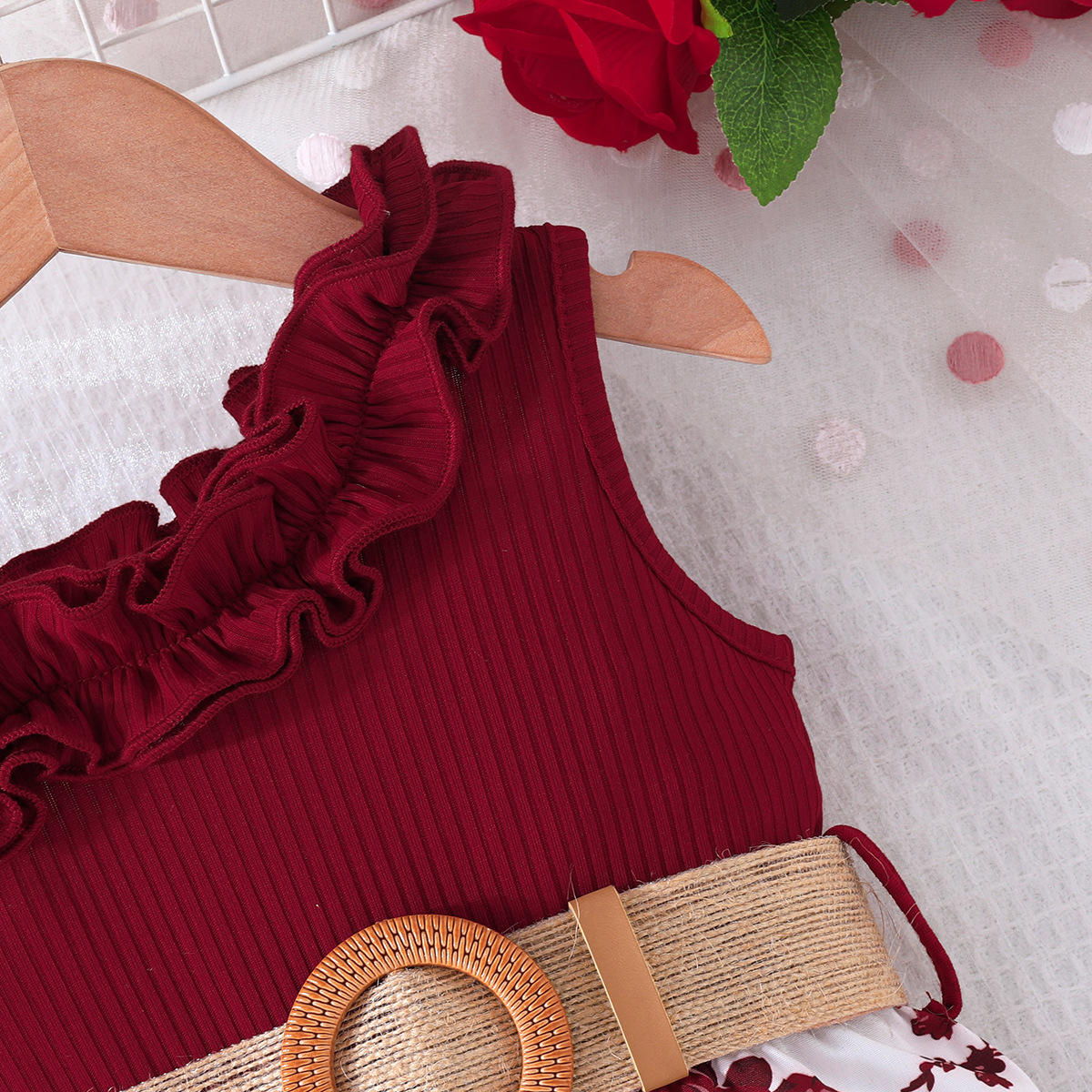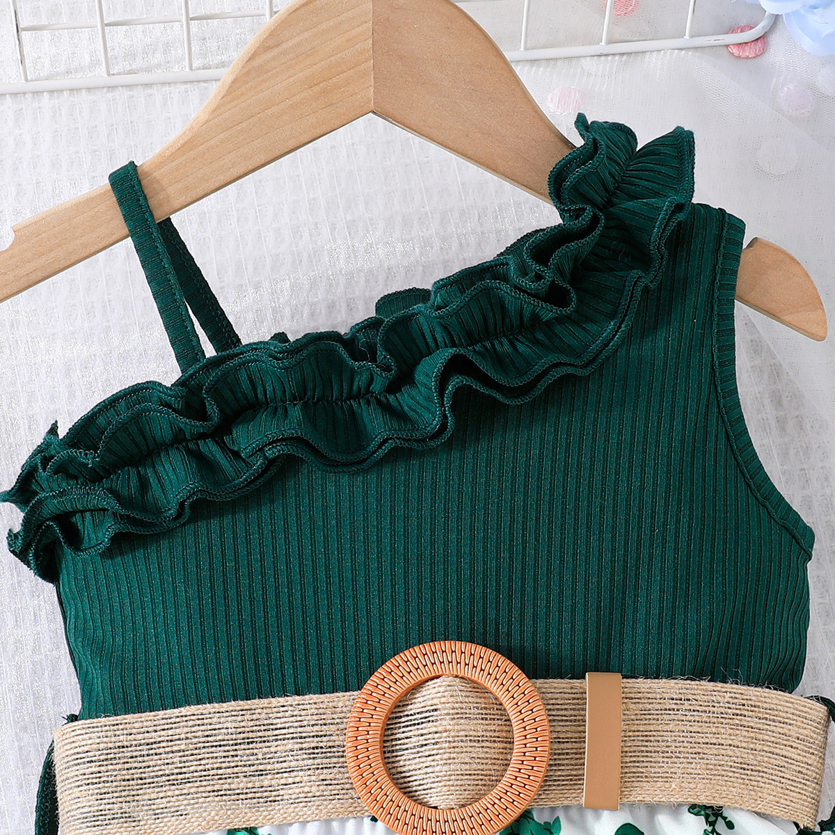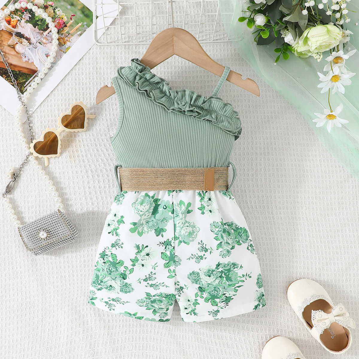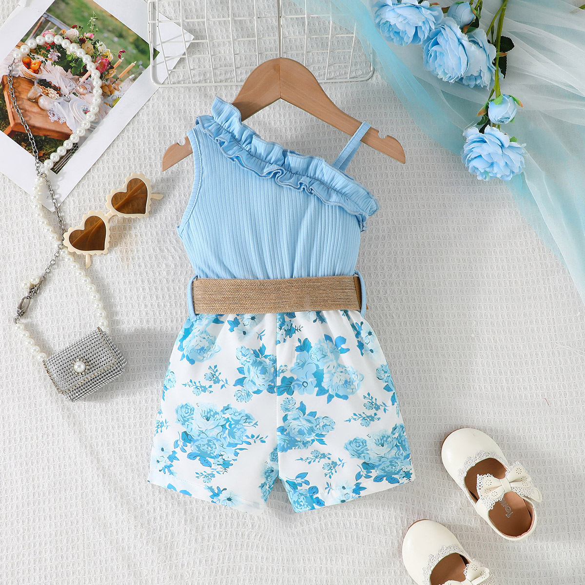 2024 transfronterizo nuevo verano sin mangas correa de encaje escote costura flor imprimir mono en stock al por mayor