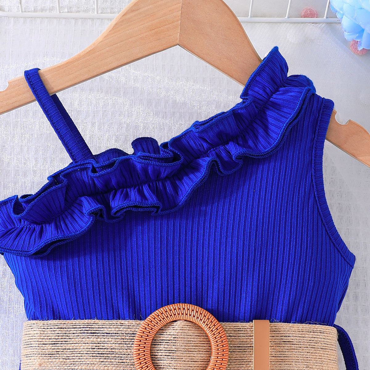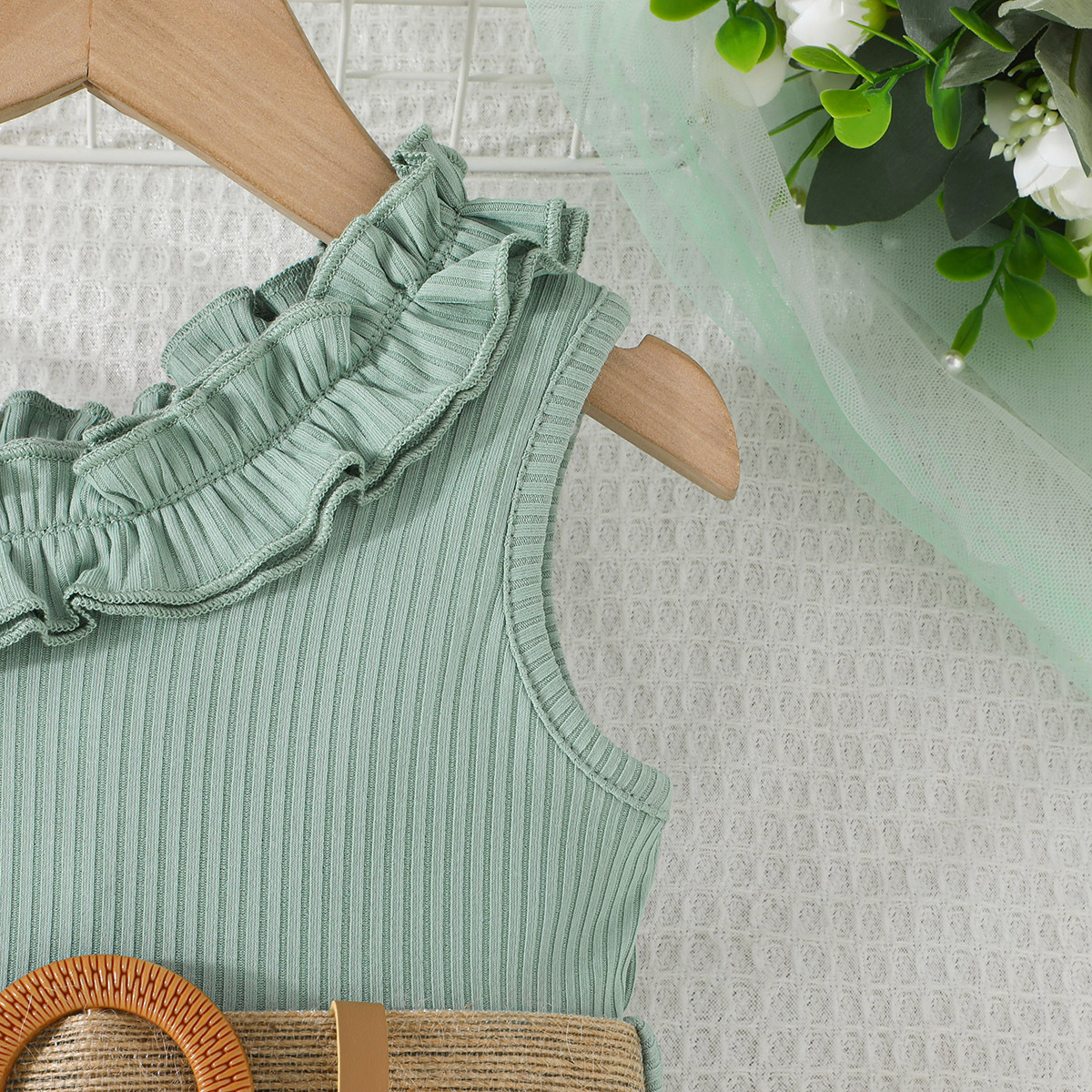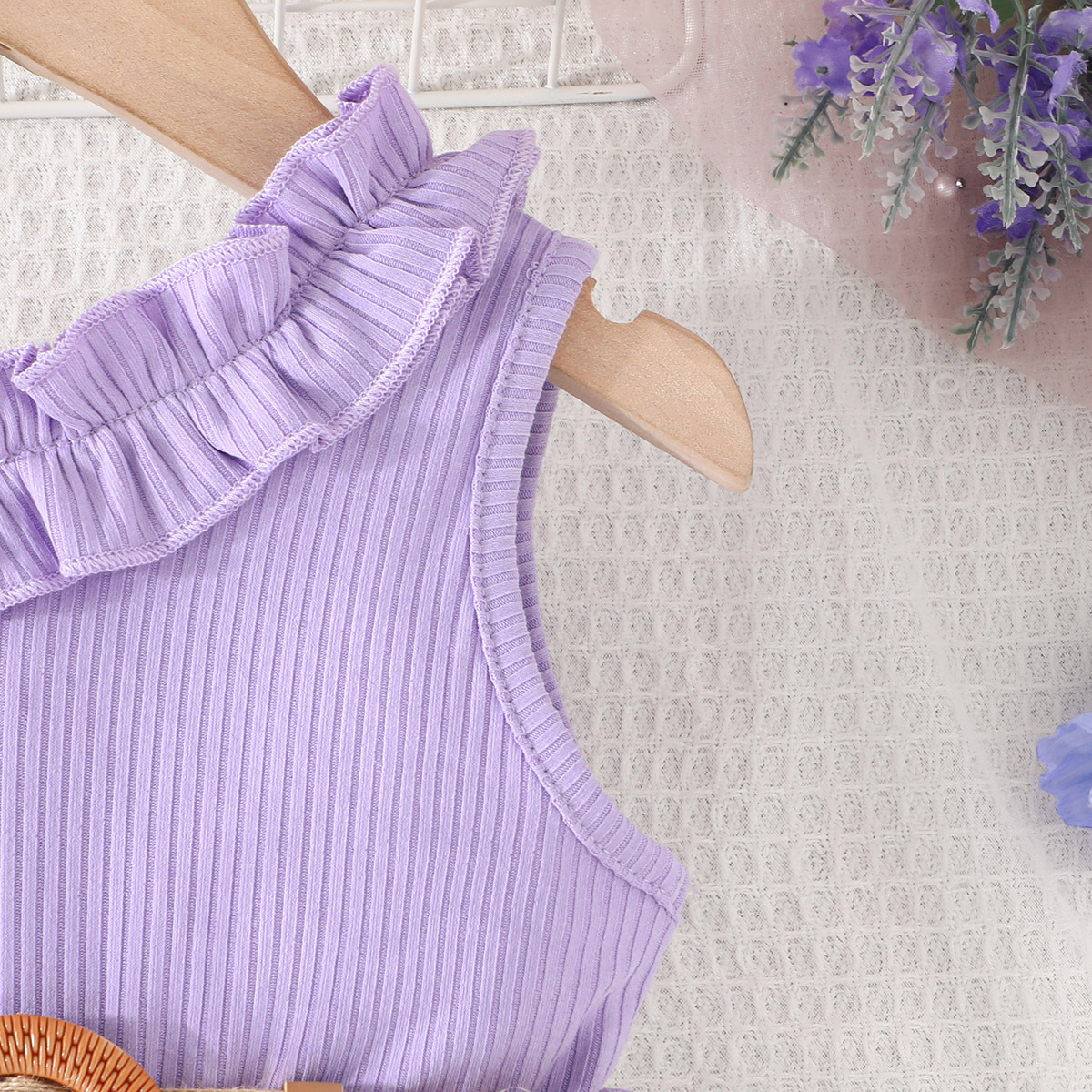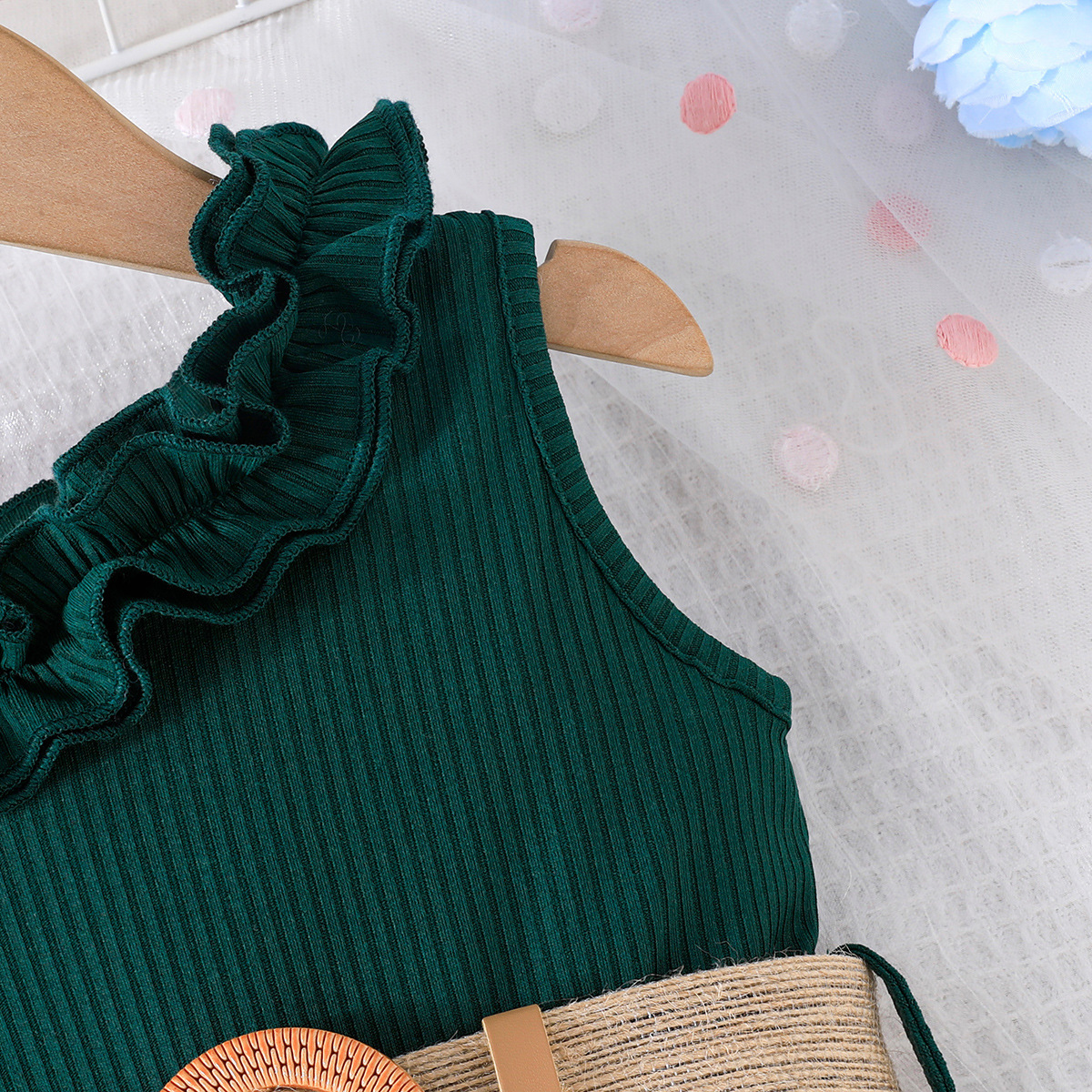 2024 transfronterizo nuevo verano sin mangas correa de encaje escote costura flor imprimir mono en stock al por mayor