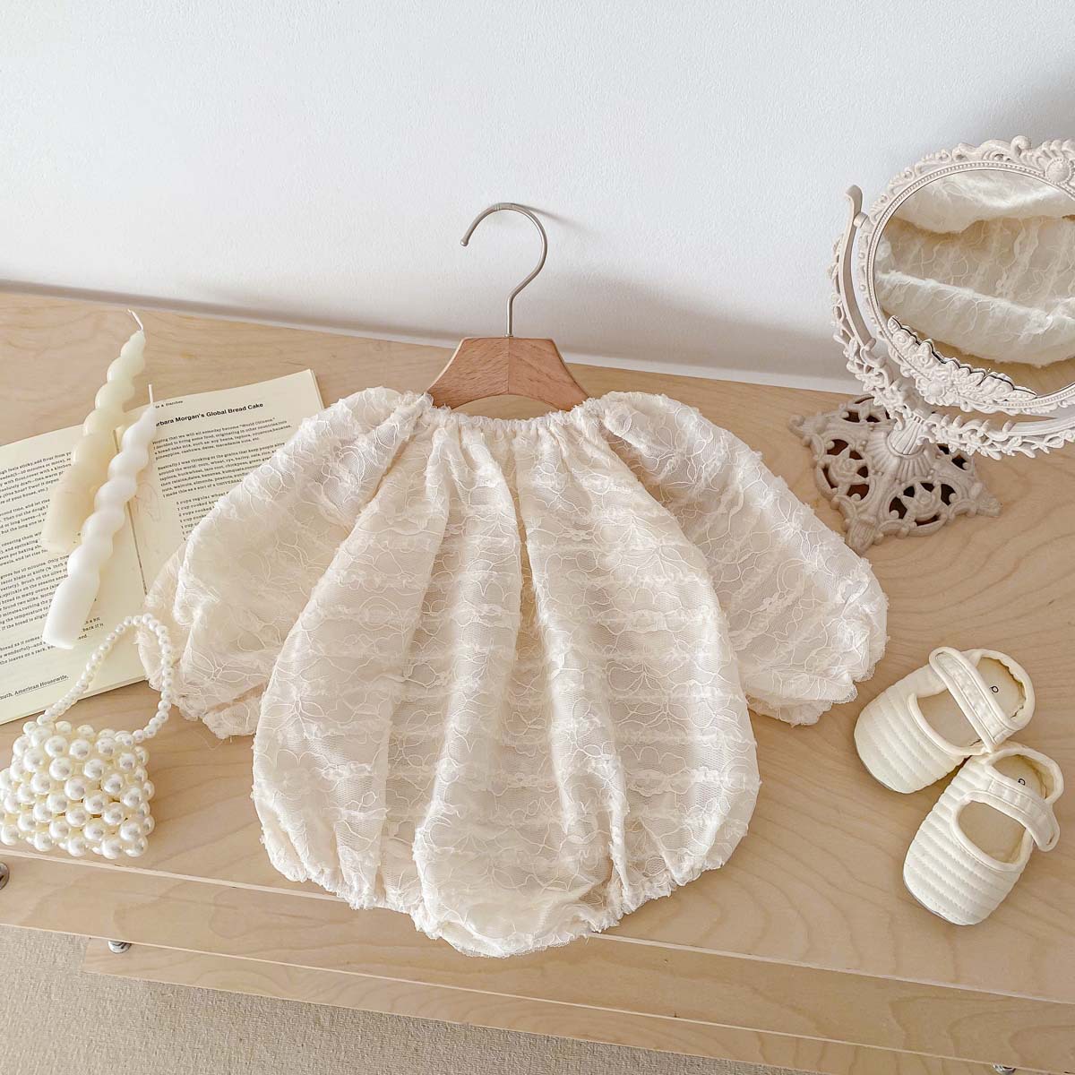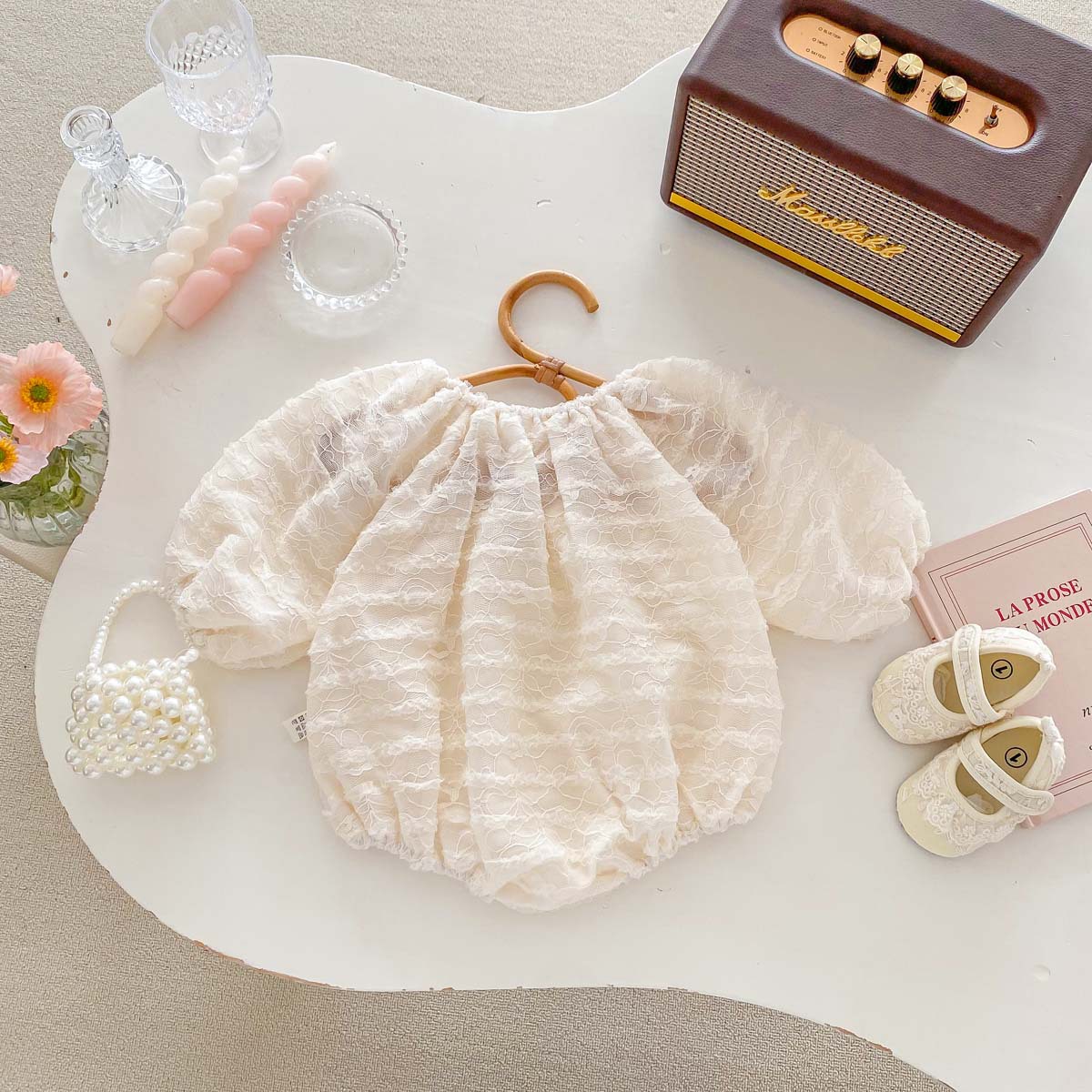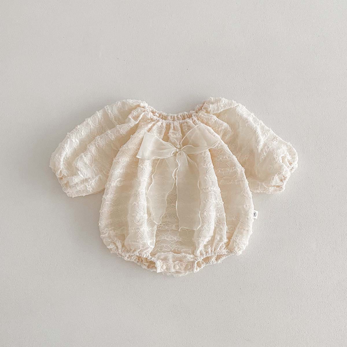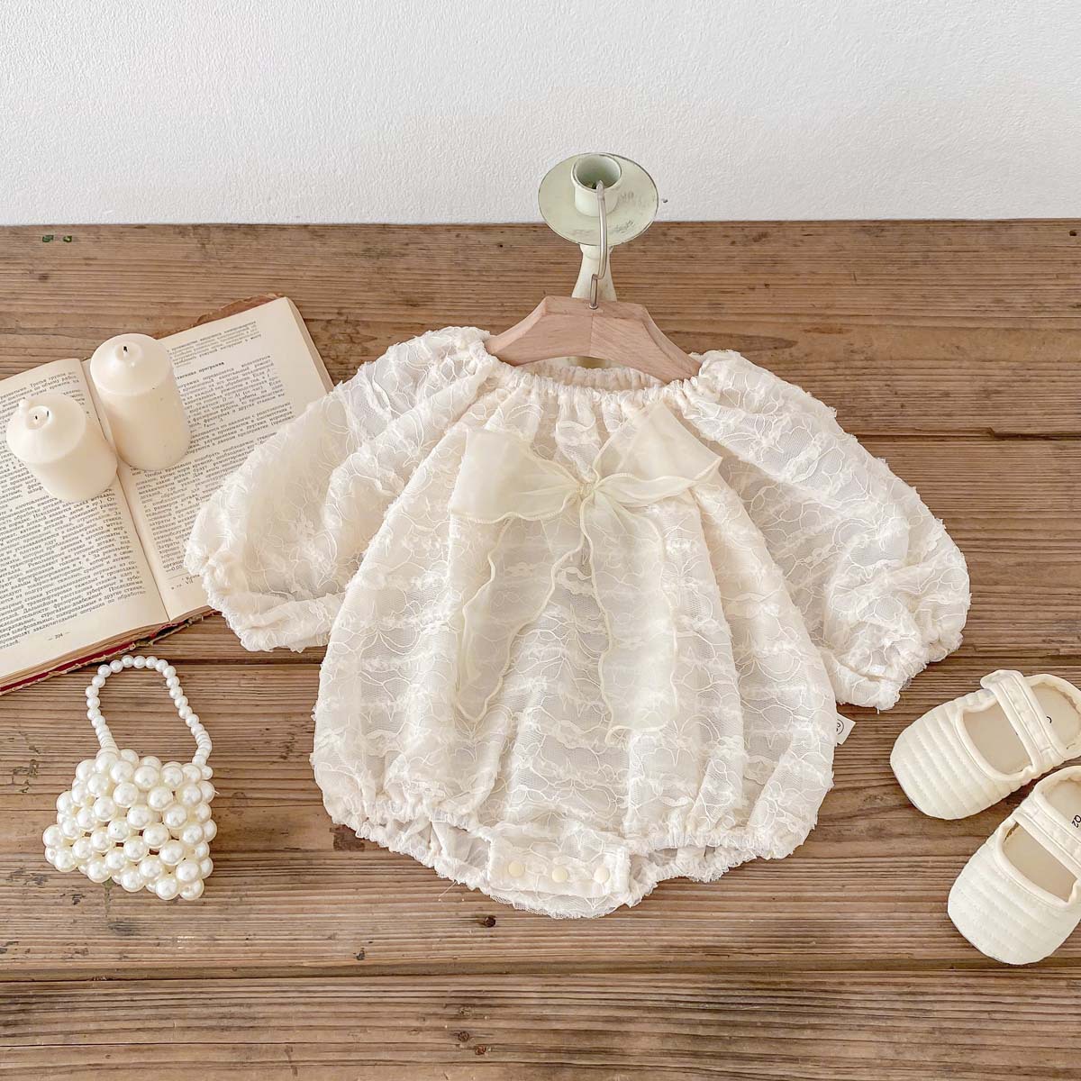 Bebé mono primavera niña dulce arco nudo bolsa pedo mameluco recién nacido un mes de edad princesa mameluco