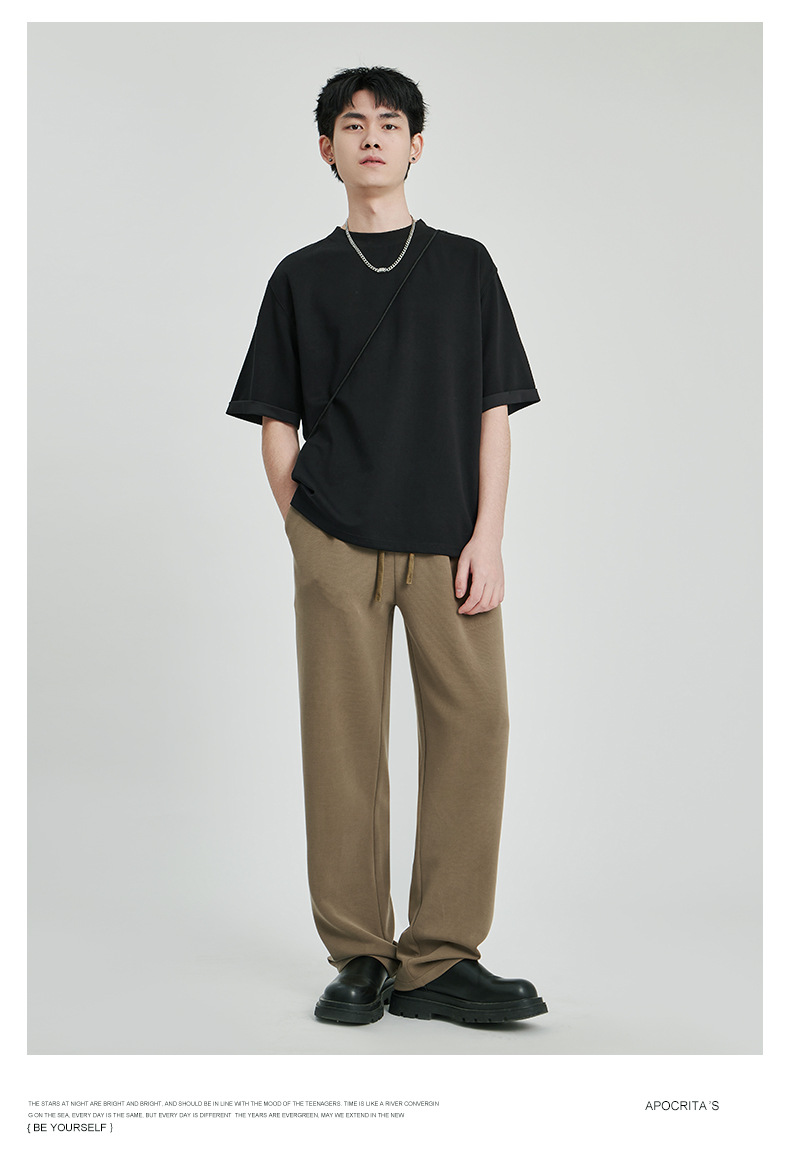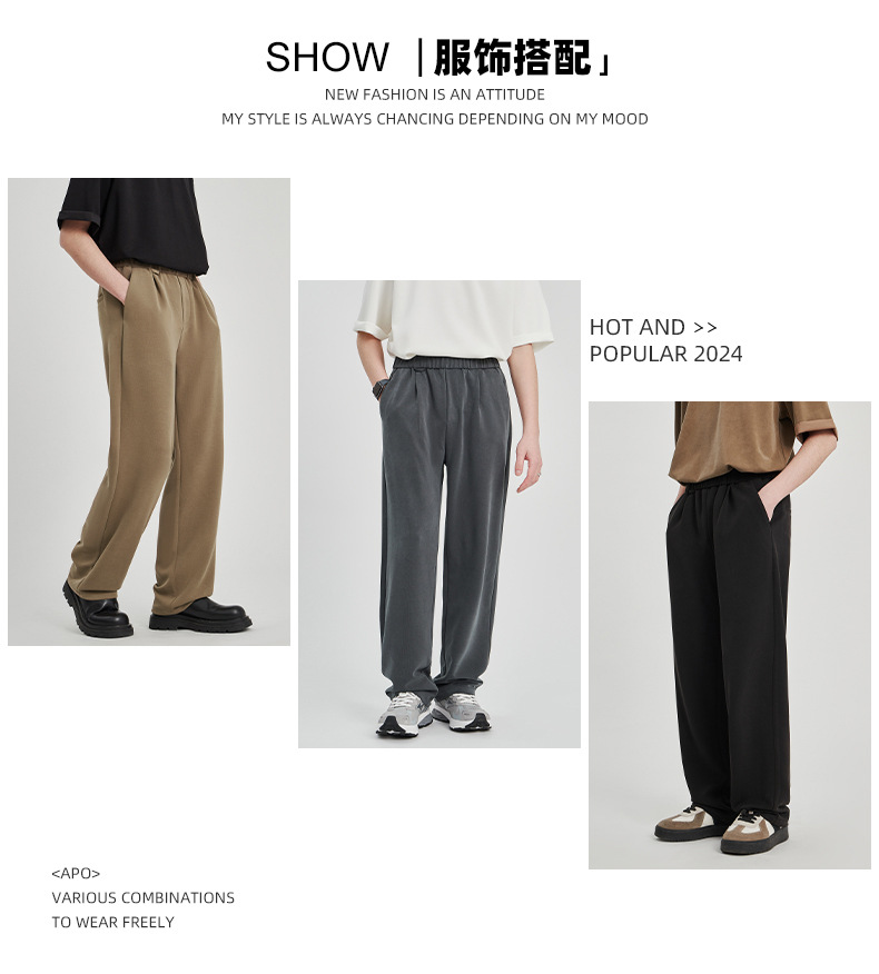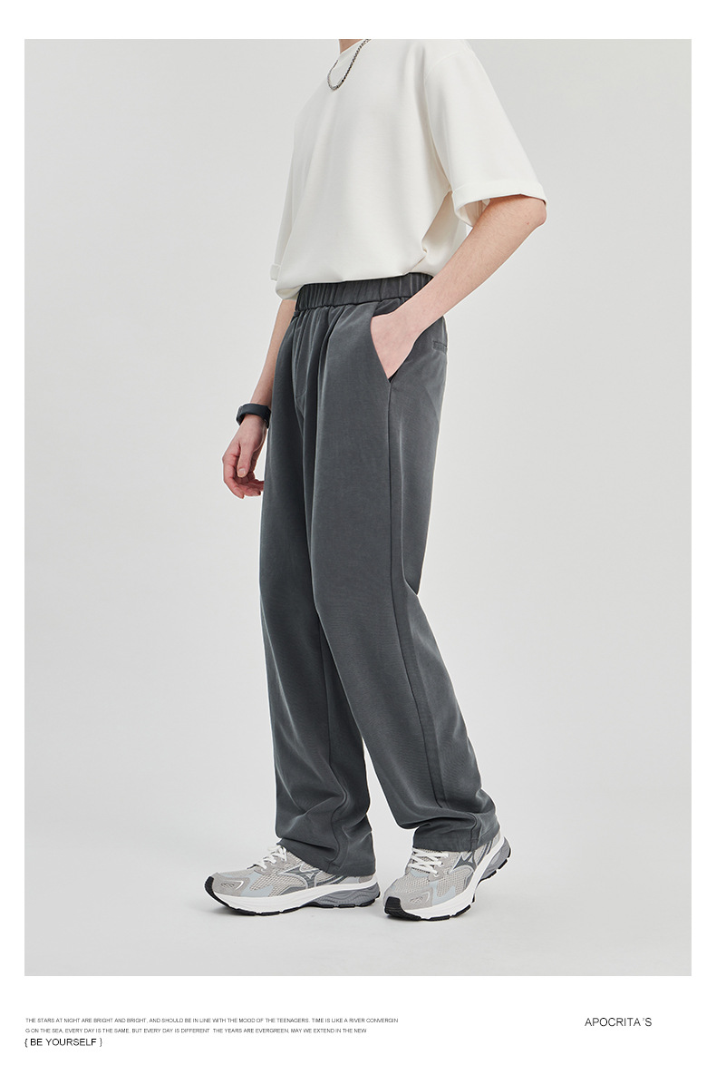 Ropa de hombre APO | Pantalones casuales de pierna ancha sueltos de estilo coreano 2024 verano nuevo estilo pantalones rectos sueltos de alta gama hombres