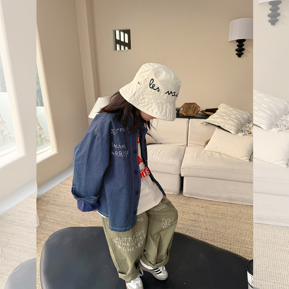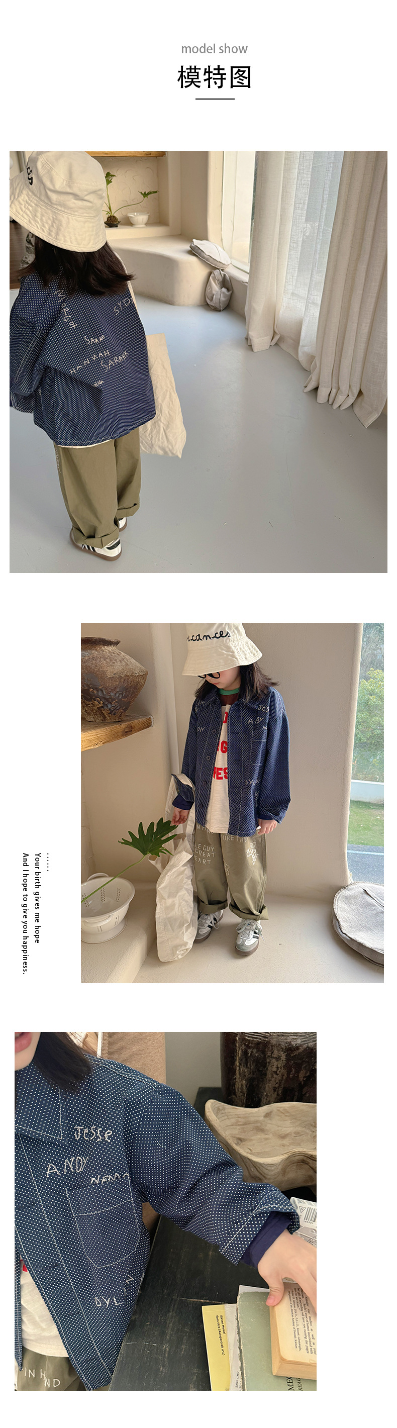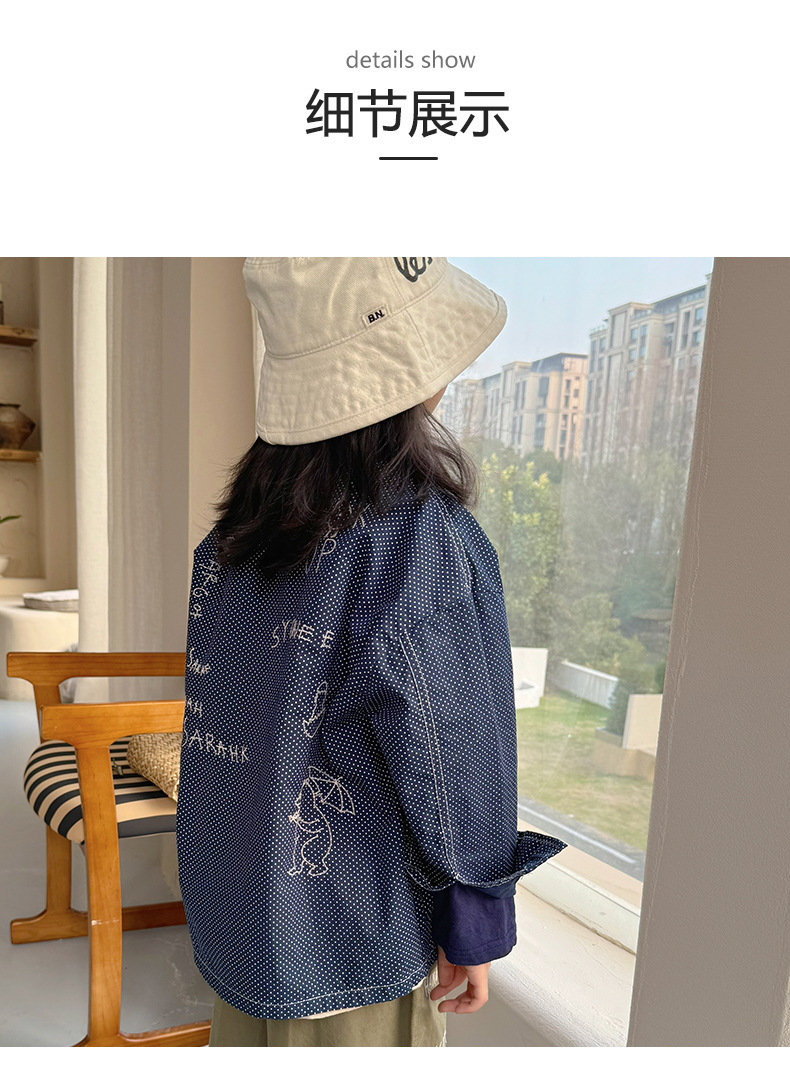 Zuo Xiaoran ropa para niños 2024 Carta de los niños camisa bordada niños y niñas de dibujos animados bordado ropa de abrigo de la camisa