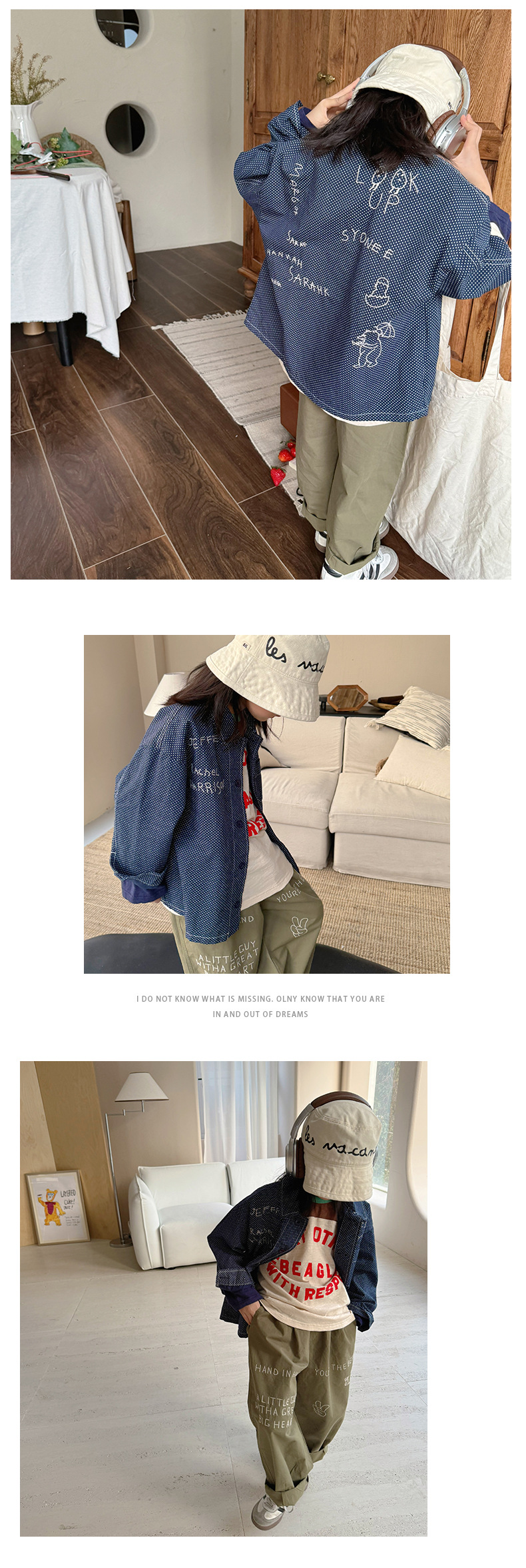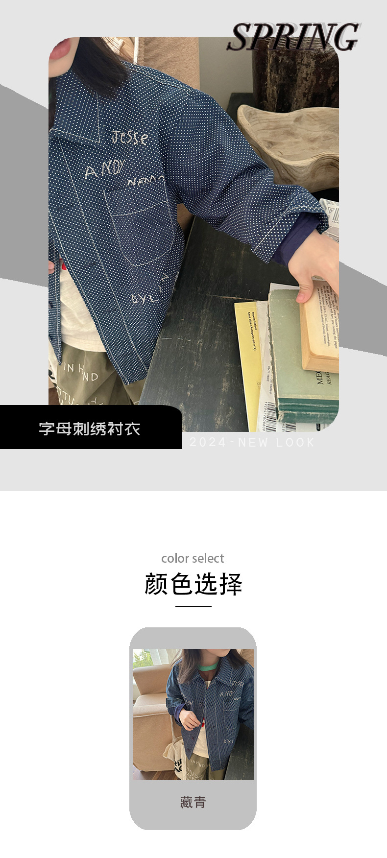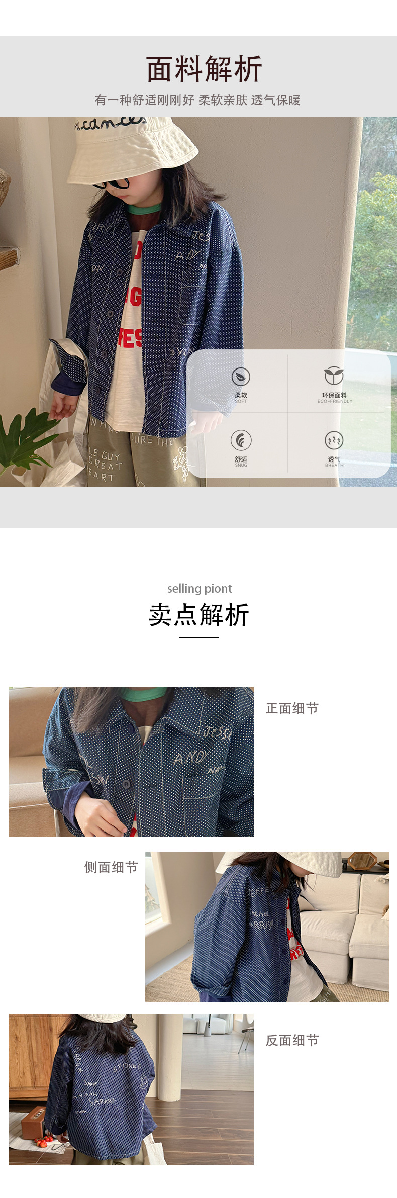Zuo Xiaoran ropa para niños 2024 Carta de los niños camisa bordada niños y niñas de dibujos animados bordado ropa de abrigo de la camisa