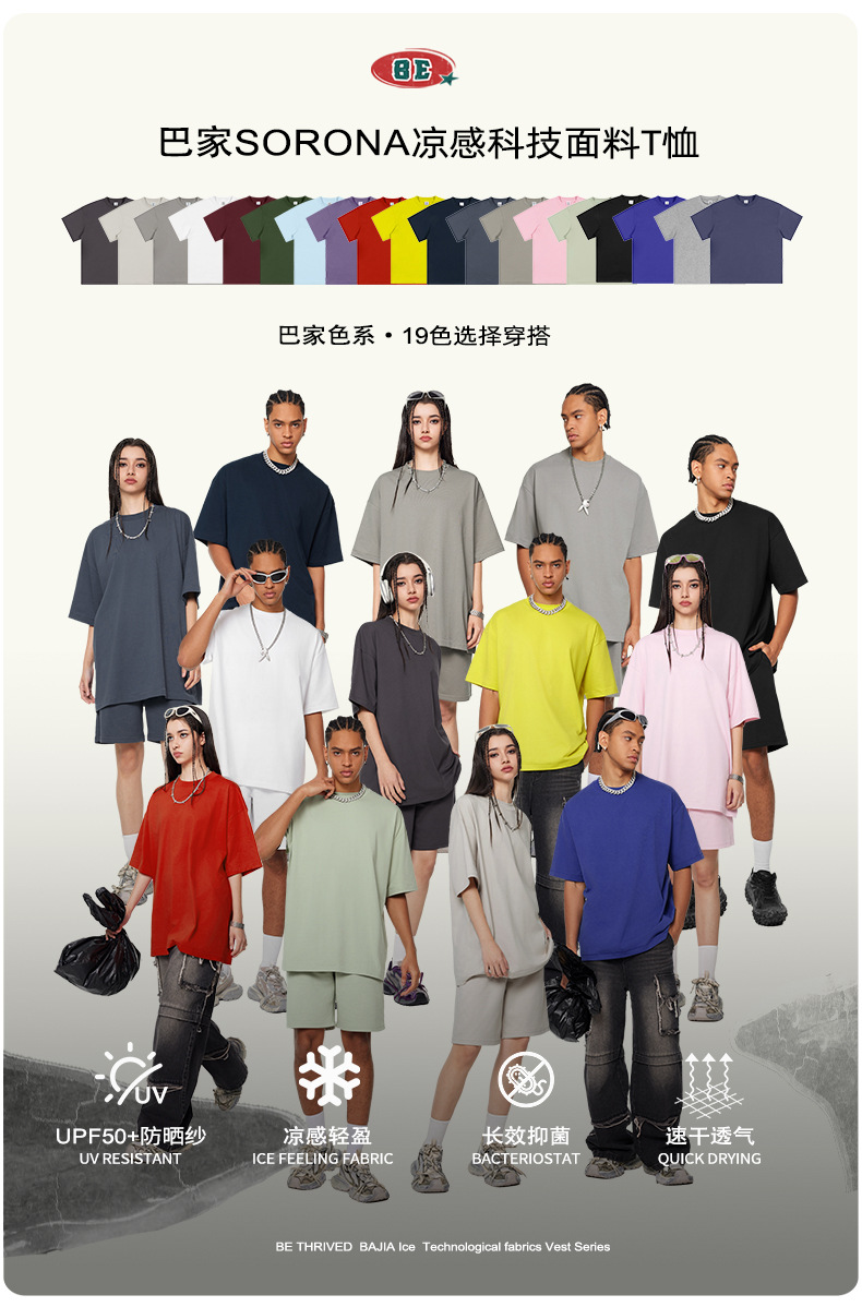 BE Taihe | 2025 verano al por mayor marca de moda suelta de gran tamaño Sorona tela fresca color sólido camiseta de manga corta para hombres